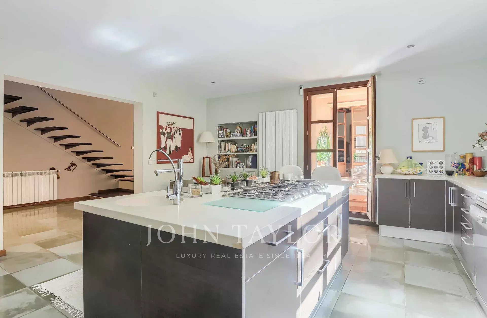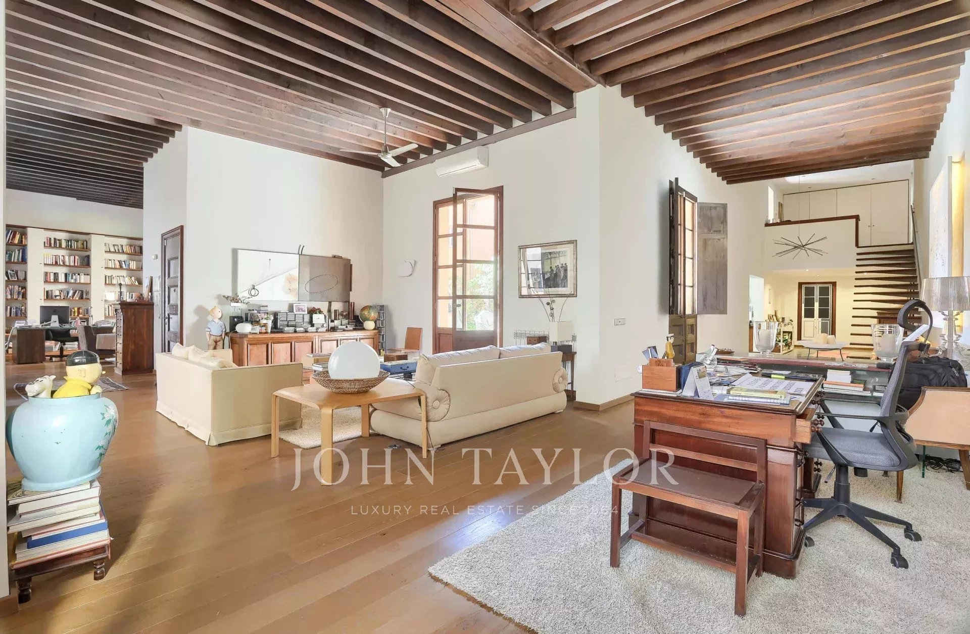 Descubra este exclusivo apartamento de dois pisos para venda no coração do centro histórico de Palma, situado num palácio histórico a poucos passos da icónica Plaza de Cort. Esta propriedade de luxo combina na perfeição história, design contemporâneo e uma localização privilegiada, rodeada de cultura, gastronomia, lojas, cafés e todas as comodidades, tudo a uma curta distância a pé. Este apartamento foi completamente renovado, respeitando os detalhes arquitectónicos originais, oferecendo uma casa sofisticada, luminosa e cheia de carácter. A propriedade apresenta tectos altos, vigas de madeira expostas, pisos de madeira natural de alta qualidade e uma disposição moderna em plano aberto que maximiza o espaço e a luz. Existem dois quartos e três casas de banho, incluindo uma elegante suite principal com um quarto de vestir e uma casa de banho privativa, concebida como um retiro tranquilo com acabamentos luxuosos e grandes janelas com persianas de madeira que inundam a sala com luz natural. A partir de um encantador pátio comum tradicional, o apartamento é acedido através de escadas. A grande sala de estar/jantar em forma de L tem um teto de altura impressionante. Tem ligação direta a um espaçoso terraço privado de 110 m², um verdadeiro oásis urbano com áreas cobertas e abertas, ideal para desfrutar do clima mediterrânico durante todo o ano. O terraço, rodeado de vegetação e decorado com vasos suspensos, apresenta tectos com vigas de madeira e paredes em tons quentes, criando um ambiente acolhedor para refeições ao ar livre ou momentos de relaxamento. A espaçosa e funcional cozinha de design está equipada com uma ilha central e espaço para uma mesa de pequeno-almoço, e também tem acesso direto ao terraço. Além disso, a propriedade inclui uma grande adega privada abobadada, perfeita para coleccionadores de vinho ou amantes de vinho. As comodidades modernas deste apartamento de luxo incluem aquecimento central, janelas com vidros duplos, gás da cidade, uma área de lavandaria separada, um amplo espaço de armazenamento, um elevador e um espaço de garagem no edifício, uma caraterística muito procurada nesta área da cidade. Esta propriedade única para venda em Palma destaca-se pela sua localização privilegiada no centro histórico, pela sua renovação cuidada com materiais nobres e pelo seu magnífico terraço privado. Uma oportunidade excecional para adquirir uma propriedade de luxo numa das zonas mais desejadas de Maiorca. Não perca esta oportunidade única de viver num palácio no centro de Palma!