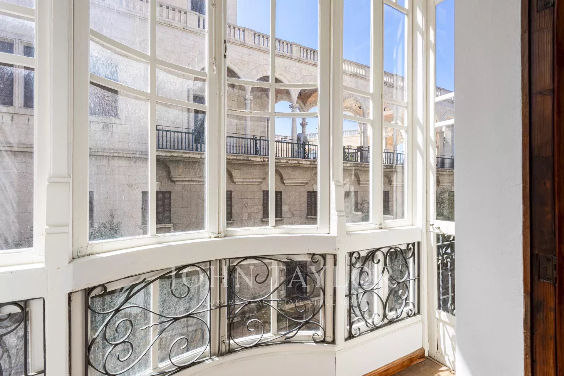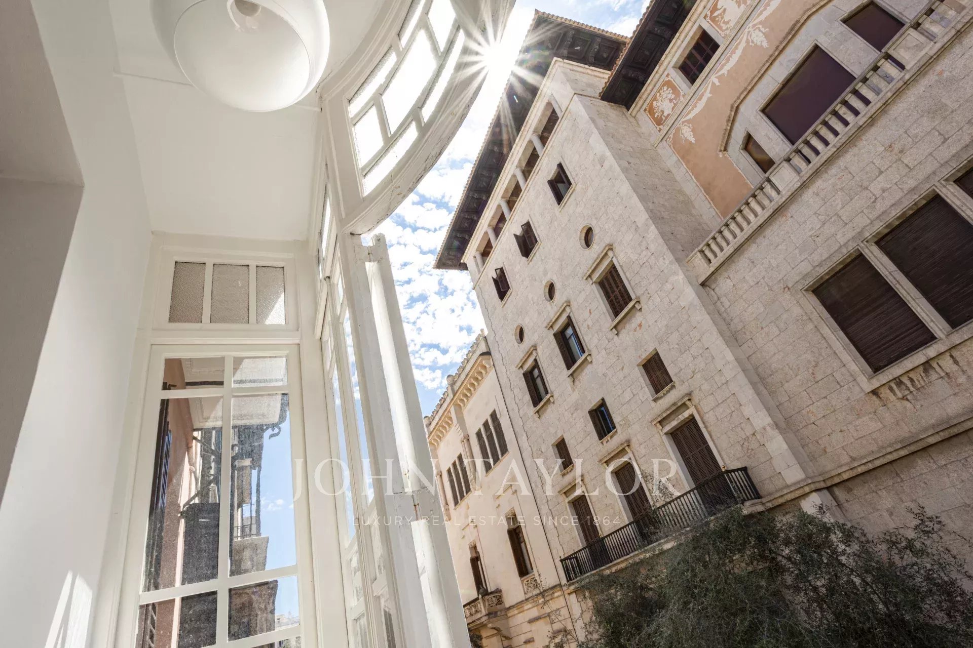 Situado no coração da encantadora Cidade Velha de Palma, a poucos passos do icónico Borne, este elegante apartamento oferece 130 m², incluindo duas varandas francesas, uma galeria e um terraço de 9 m², ideal para desfrutar do clima ensolarado de Palma. Combinando o carácter histórico com o conforto, a residência apresenta pisos de madeira por toda a parte, persianas de madeira e uma cozinha profissional em aço inoxidável.