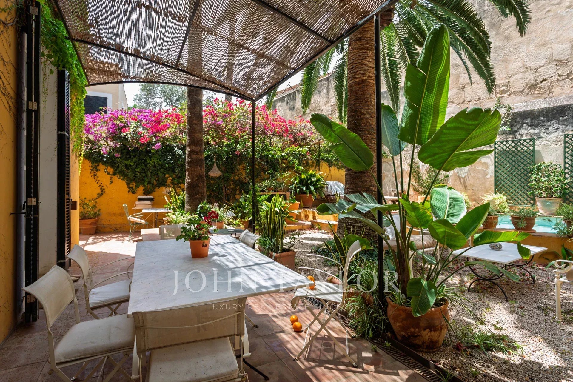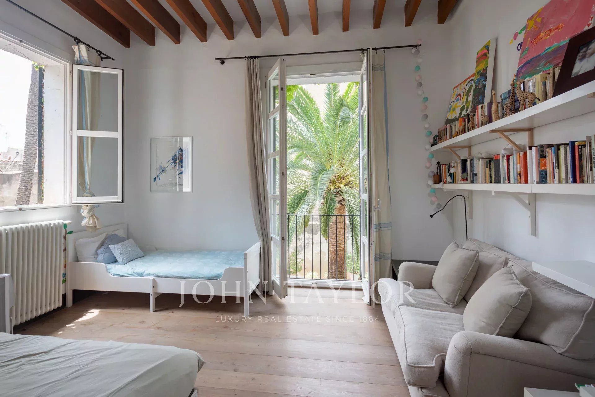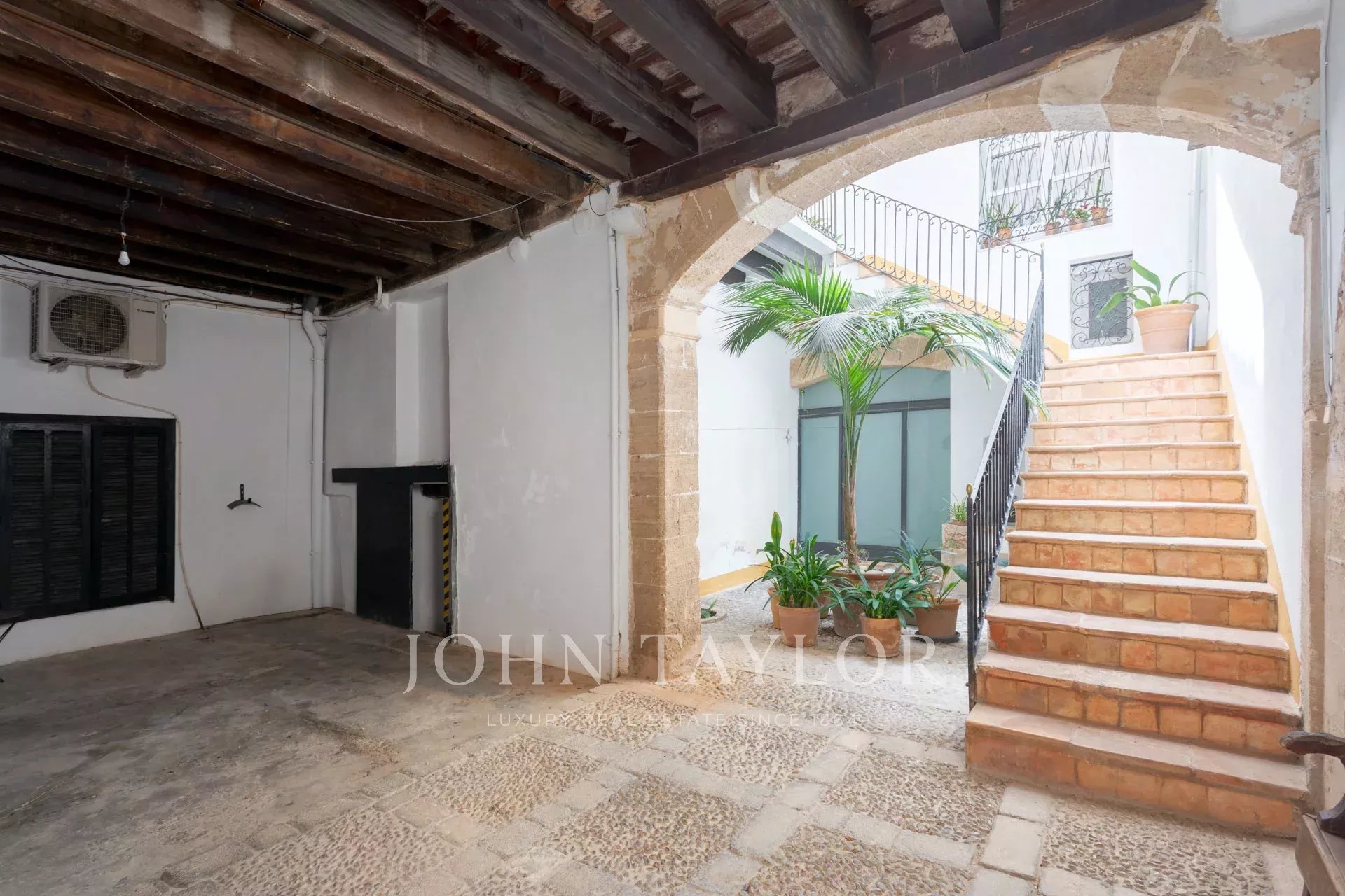 Esta joia rara é um dos poucos exemplos remanescentes da arquitetura gótica civil em Palma, acrescentando um valor histórico e cultural significativo. A entrada dá-lhe as boas-vindas com tectos altos, um grande corredor e uma elegante escadaria em ferro forjado. Uma biblioteca, facilmente convertível num quarto, completa este nível. No andar de cima, encontrará dois espaçosos quartos em suite com vista para um pátio sereno. A suite principal possui uma luxuosa casa de banho com banheira, um grande chuveiro e um quarto de vestir.