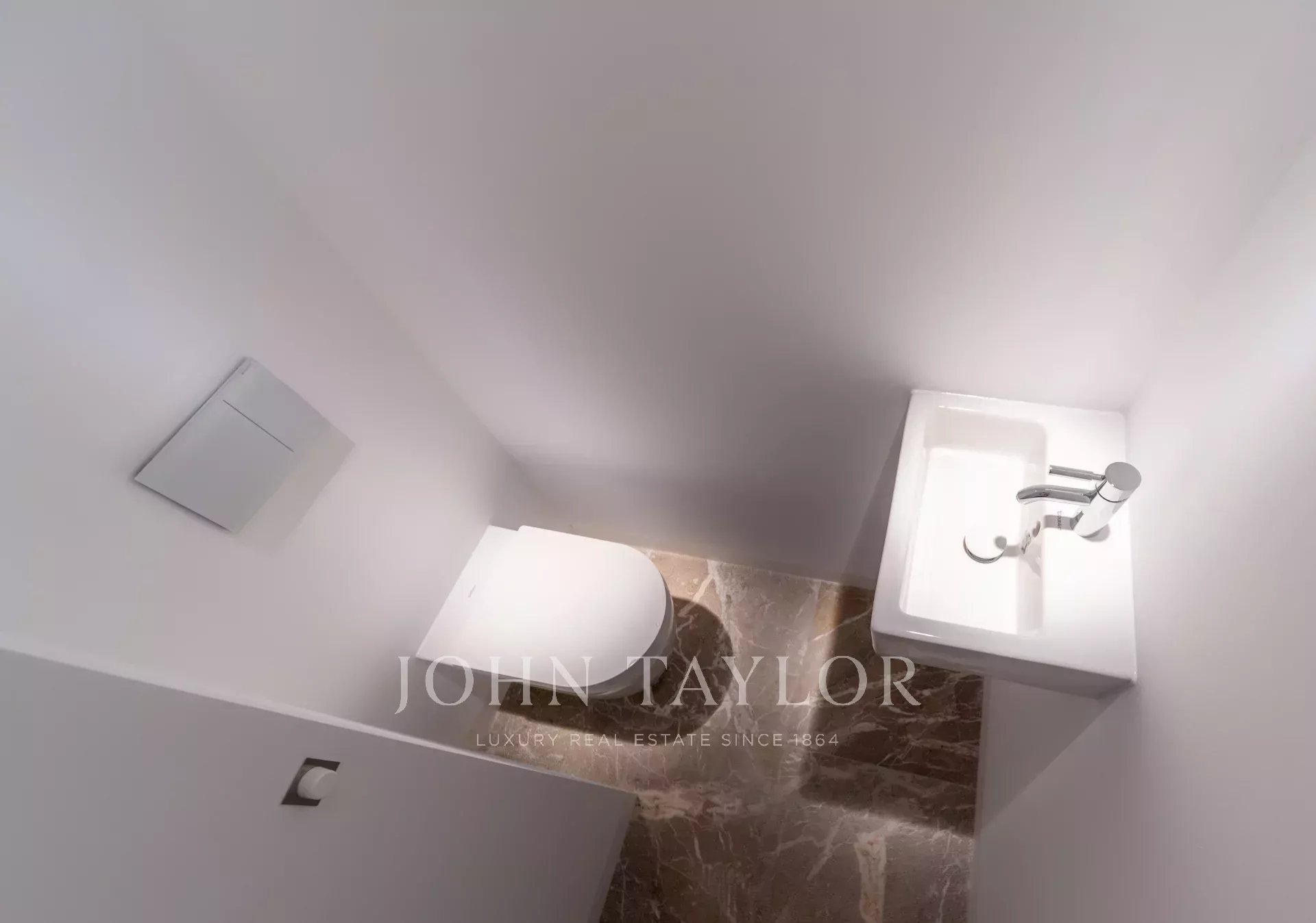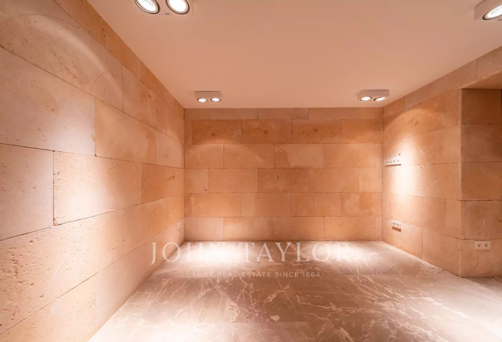 No piso inferior, um espaço versátil oferece a tela perfeita para um bar de vinhos privado ou uma bodega, com amplas possibilidades de armazenamento.