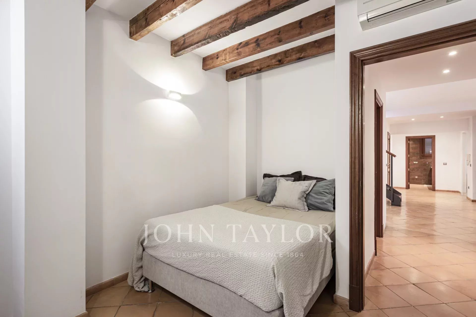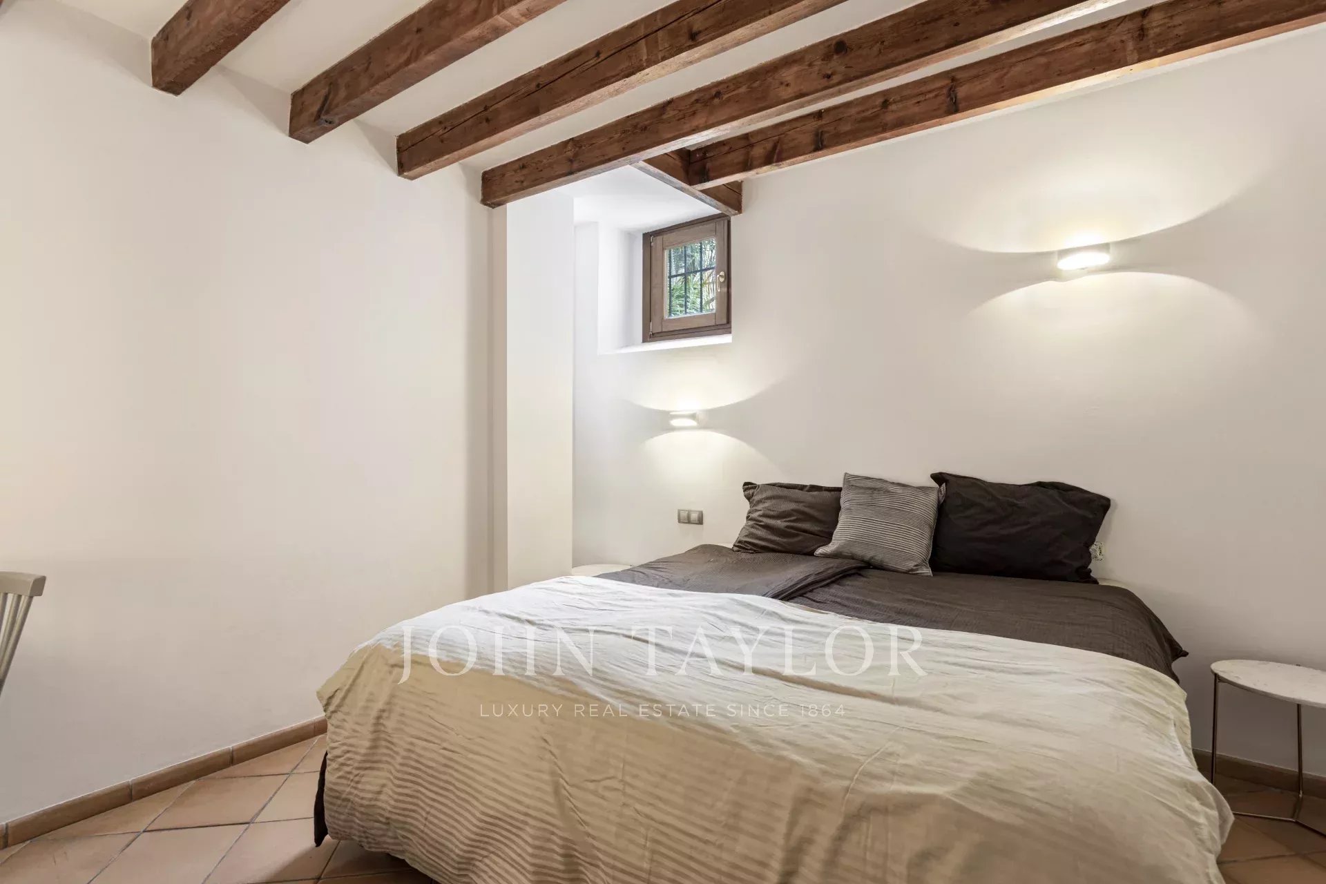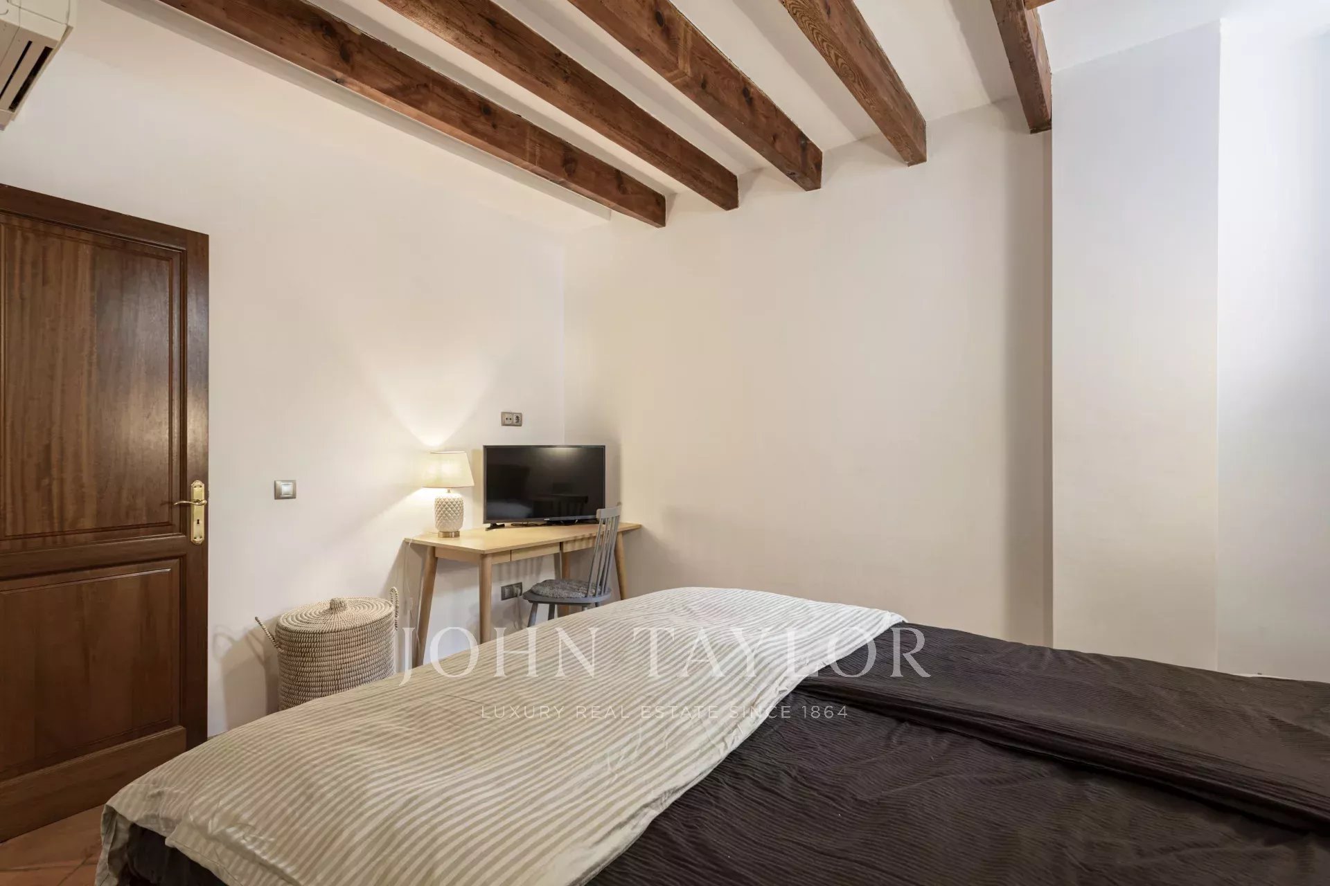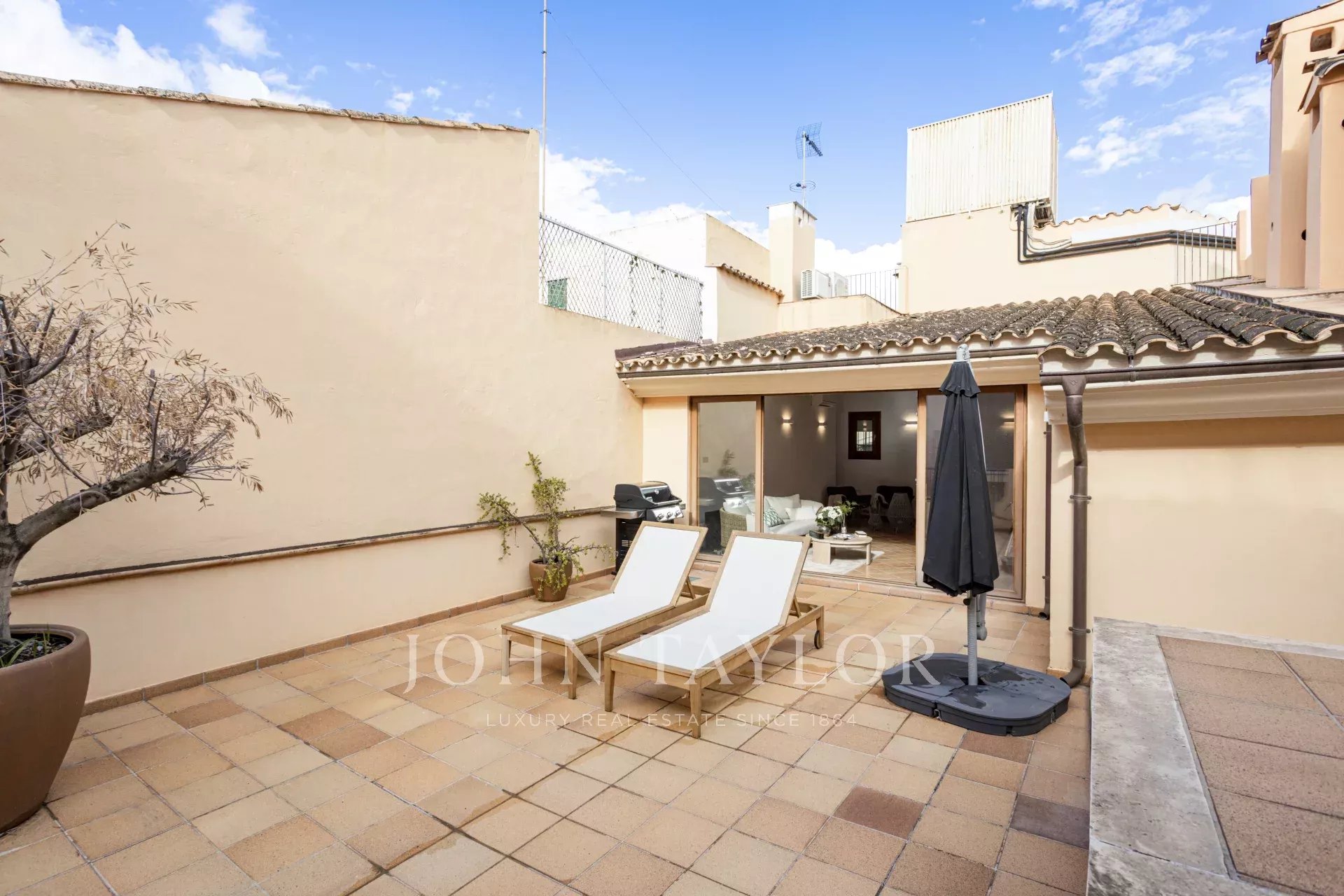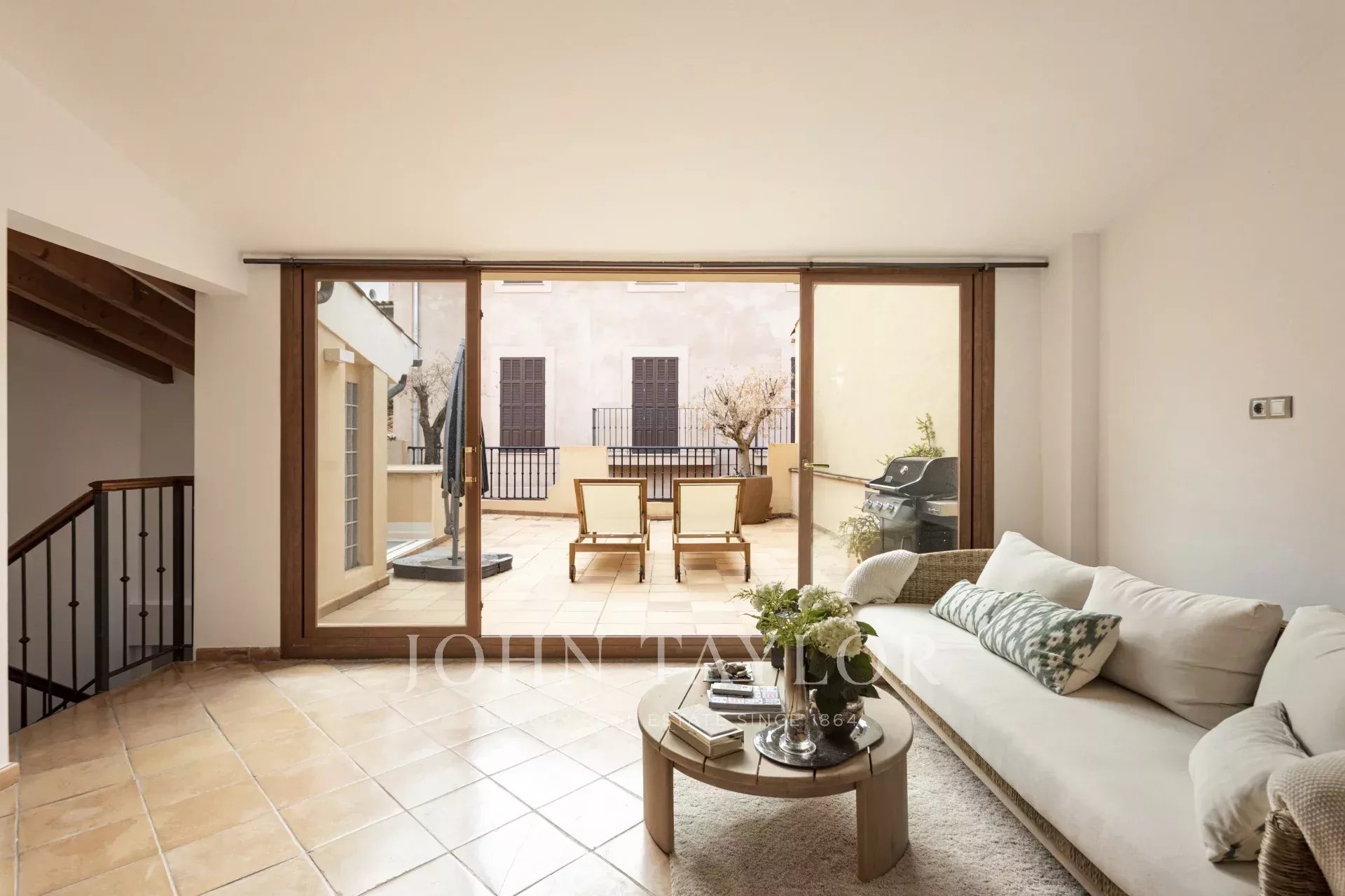 A propriedade faz parte de uma pequena comunidade de apenas duas unidades residenciais e um estabelecimento comercial, garantindo privacidade e exclusividade. Oferece também duas entradas independentes: uma através da escadaria comum e outra através de um acesso privado por elevador - uma caraterística rara e altamente desejável no centro histórico de Palma.