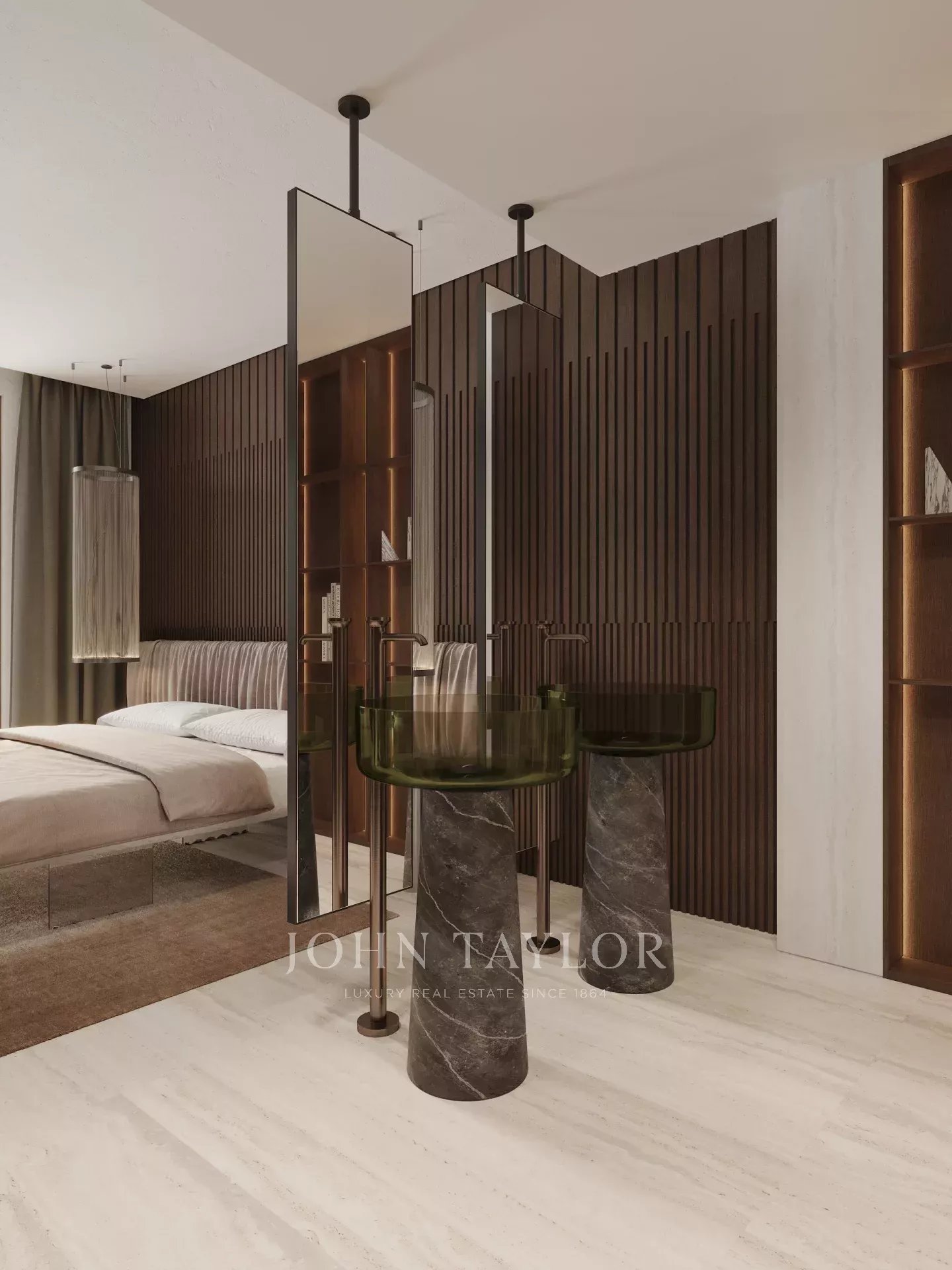 Este deslumbrante apartamento no rés do chão é ideal para famílias, amantes de animais ou para quem procura conforto. Com uma cozinha totalmente equipada em plano aberto, sala de estar e sala de jantar que dá acesso ao grande pátio exterior privado com amplo espaço para pequenas ou grandes reuniões. Os seus dois quartos duplos, ambos com casa de banho privativa, também desfrutam de acesso direto ao exterior, alcançando o máximo de vida interior-exterior no seu melhor. O interior é completado por uma casa de banho de serviço. O pátio exterior oferece acesso direto à piscina e ao ginásio, com o spa interior, a piscina interior, o cinema, a adega, o bar de pipocas, o clube social e o simulador de golfe apenas um piso abaixo, oferecendo assim tudo à sua porta. O interior total é de 89 m2 com uma área exterior de 105 m2.