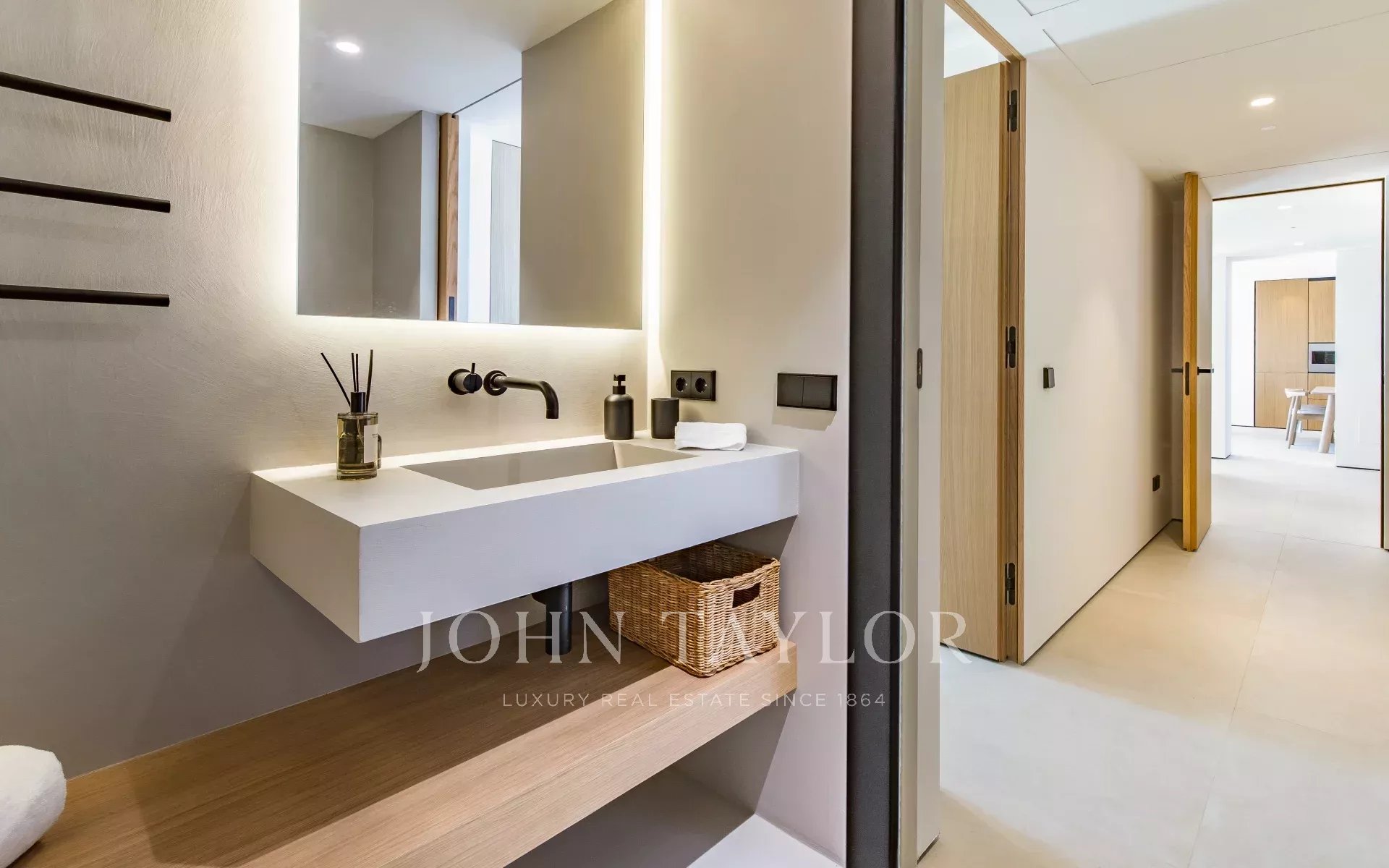 Experimente a vida costeira no seu melhor neste belo apartamento localizado na primeira linha do mar. No interior, encontrará uma planta moderna e aberta, com as áreas de estar, de jantar e de cozinha a fluírem perfeitamente umas para as outras. A partir daqui, poderá aceder e desfrutar do grande terraço de 40m2 com vistas deslumbrantes sobre as águas do Mediterrâneo. A cozinha em si é o sonho de um chefe, com armários Abitarum elegantes e modernos e electrodomésticos Gaggenau e Bora topo de gama. E com três quartos e duas casas de banho, há muito espaço para si e para os seus entes queridos se espalharem e relaxarem. Uma vez que o apartamento está atualmente a ser renovado de acordo com os mais elevados padrões, o seu futuro proprietário pode esperar uma propriedade pronta a habitar, com ar condicionado, piso radiante, bem como um segundo terraço nas traseiras do apartamento. Um parque de estacionamento pode ser adquirido adicionalmente. Desfrute de longas caminhadas no passeio marítimo de Portixol, da praia e de inúmeros restaurantes e bares mesmo à sua porta, estando também a uma curta distância da cidade velha de Palma e do seu aeroporto. Não perca esta fantástica oportunidade - marque uma visita hoje mesmo!