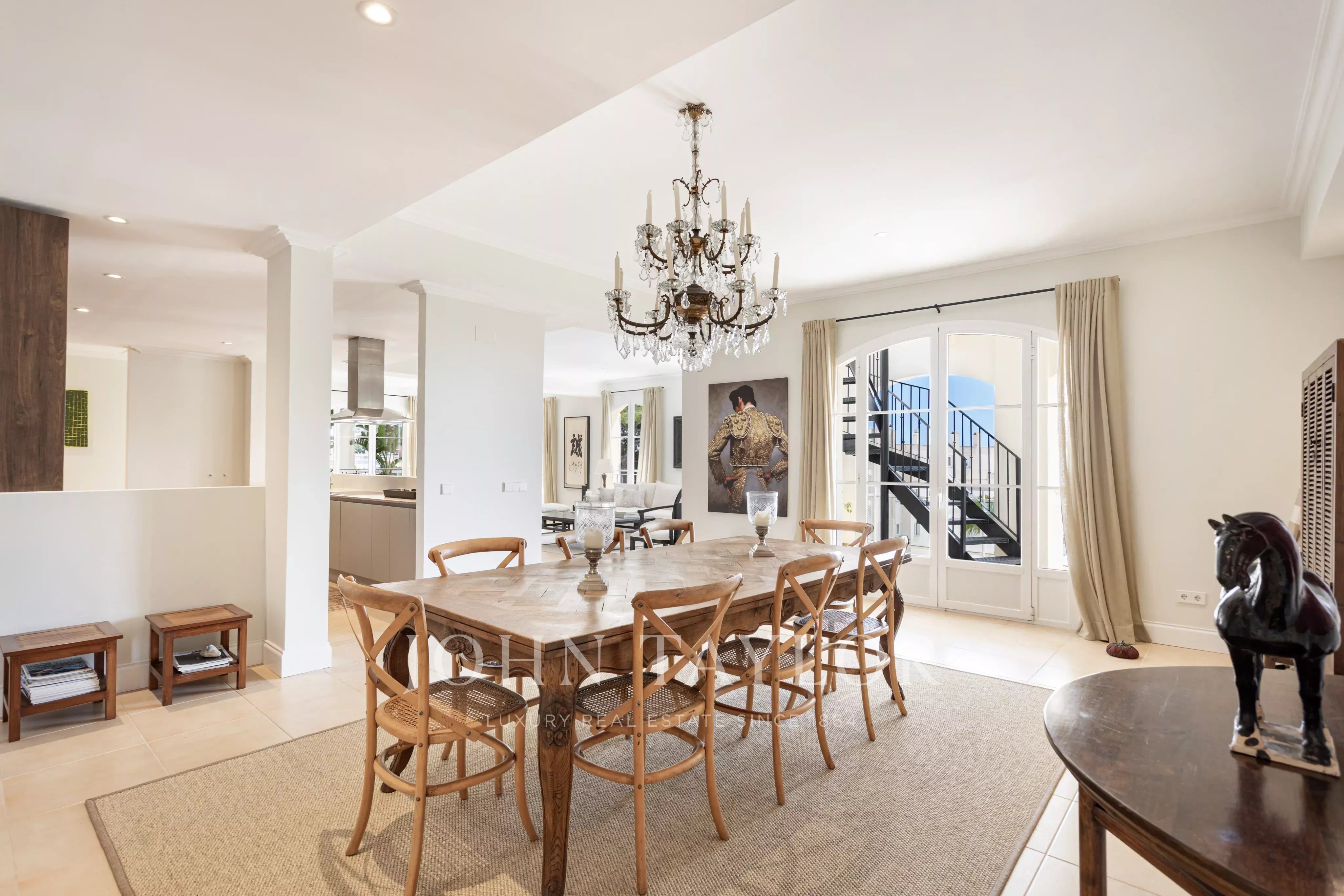 Destaca-se o amplo espaço exterior com cerca de 300 m² de terraços, bem como um alpendre no piso principal que permite desfrutar do exterior durante todo o ano. No piso superior, o terraço privado oferece zonas chill-out e áreas abertas com vista para o mar e para o ambiente mediterrânico.