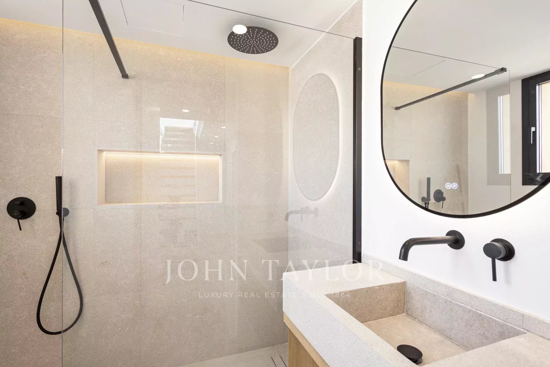 Uma escadaria bem trabalhada conduz ao piso superior, onde encontrará três quartos e duas casas de banho com chuveiros walk-in, bem como um segundo terraço privado, perfeito para momentos tranquilos ao ar livre.