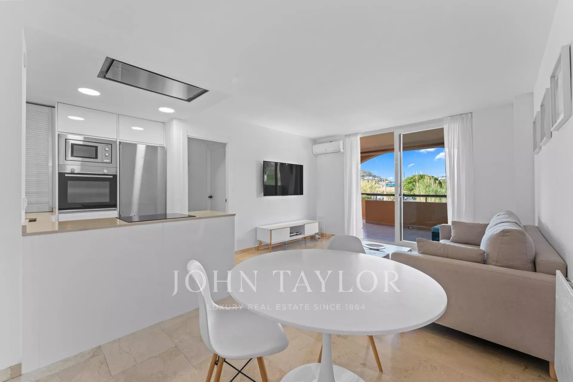 Apresentamos-lhe este encantador apartamento com 2 quartos, situado numa comunidade residencial cuidadosamente mantida, que se destaca pela sua serenidade, os seus arredores verdes e a sua proximidade do porto exclusivo de Andratx. A propriedade dispõe de uma sala de estar luminosa que se abre para um espaçoso terraço coberto de 30 m², ideal para agradáveis serões ao ar livre com vista para o belo jardim comum. O apartamento tem uma casa de banho, cozinha equipada, jardim privado e acesso a uma piscina comum rodeada por áreas ajardinadas, perfeita para relaxar durante os dias quentes de verão. É vendido totalmente mobilado, pelo que está pronto a habitar sem necessidade de obras ou adaptações. Localizado numa zona calma e muito procurada, poderá aceder em poucos minutos a pé ao porto de Andratx, com a sua variada oferta de restaurantes, lojas e todos os serviços necessários para o dia a dia.