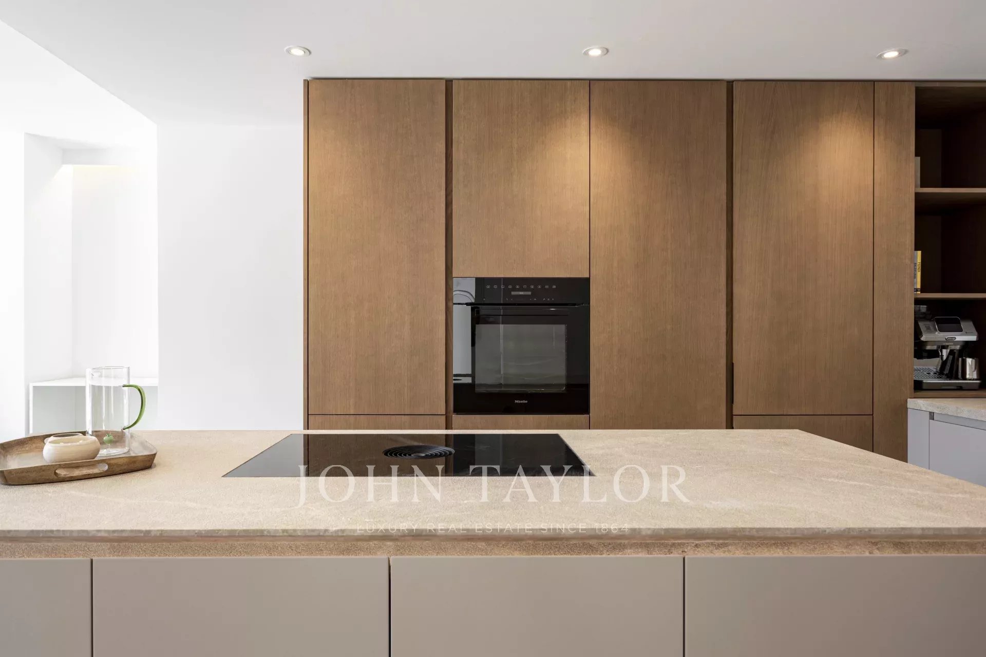 A ampla sala de estar/jantar e a cozinha são banhadas por luz natural e ligam-se sem esforço ao terraço, criando o cenário perfeito para entreter ou relaxar enquanto desfruta das vistas panorâmicas da costa.