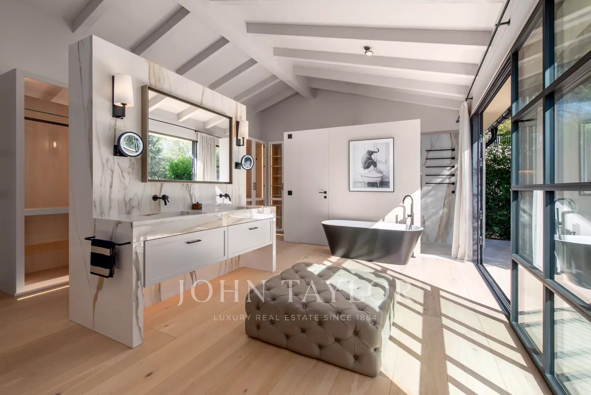 Outras caraterísticas incluem ar condicionado quente/frio, aquecimento por piso radiante, duas lareiras, televisão por satélite e um sistema de som integrado. Para além disso, existe uma garagem com espaço para um mínimo de quatro veículos.
