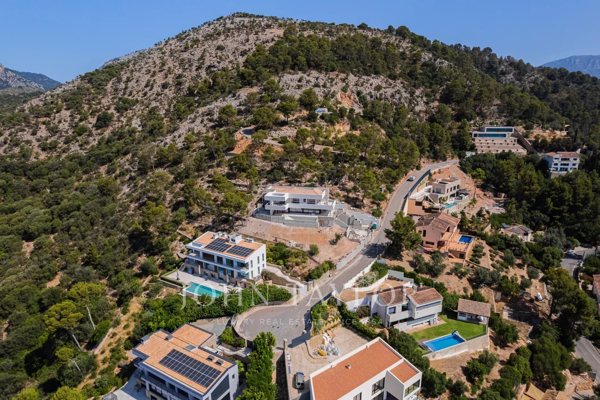 As áreas exteriores incluem uma piscina de beiral infinito com vistas desafogadas, um jardim mediterrânico de baixa manutenção que traz frescura e cor, e uma área de relaxamento ideal para desfrutar do clima de Maiorca durante todo o ano.
