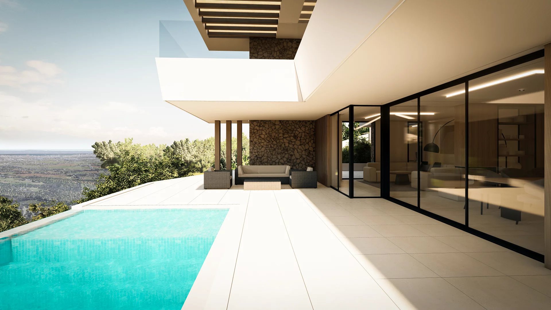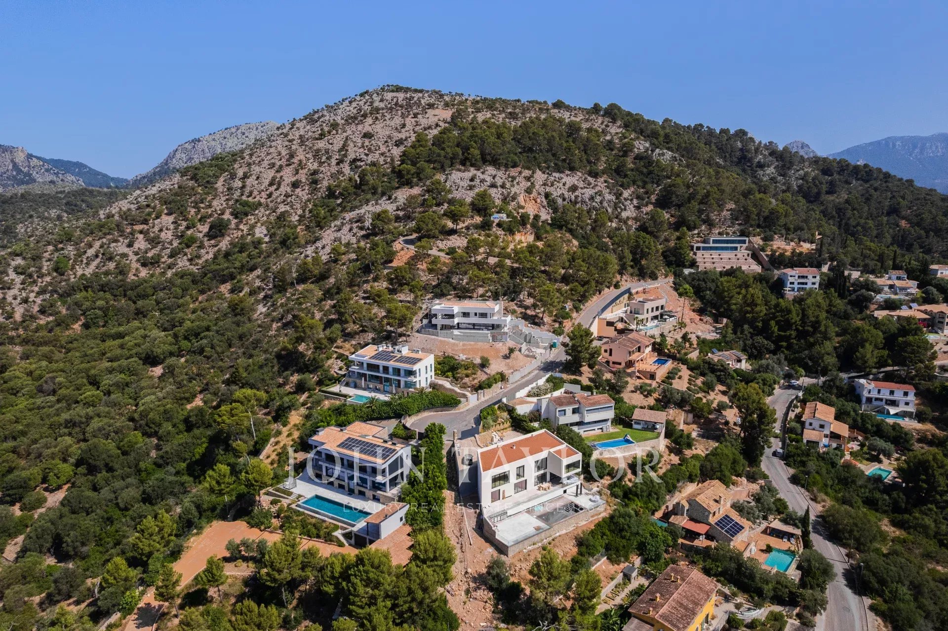 As áreas exteriores incluem uma piscina de beiral infinito com vistas desafogadas, um jardim mediterrânico de baixa manutenção que traz frescura e cor, e uma área de relaxamento ideal para desfrutar do clima de Maiorca durante todo o ano.