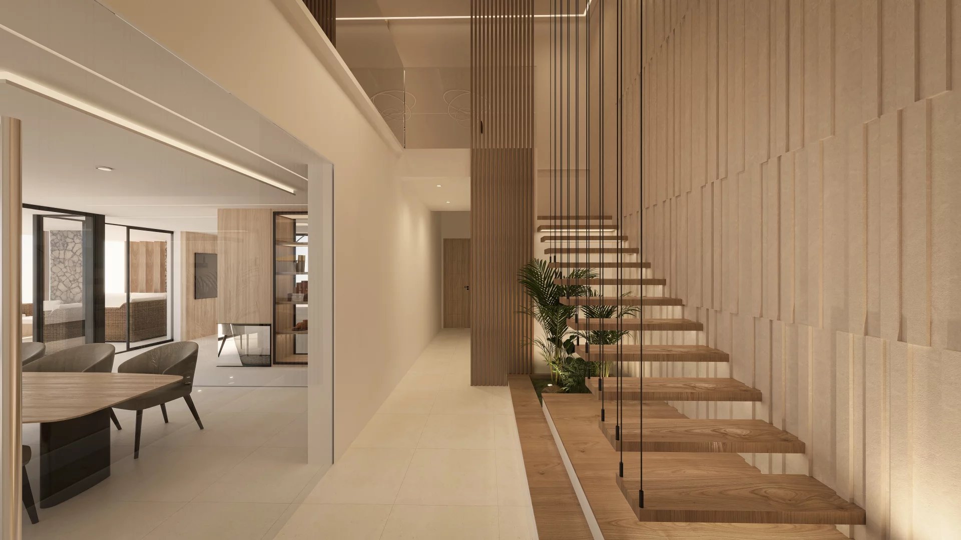 Com uma área de construção de 506 m² num generoso terreno de 1.311 m², esta propriedade foi cuidadosamente concebida para tirar o máximo partido da sua localização elevada, oferecendo espectaculares vistas panorâmicas sobre o mar e a paisagem natural envolvente.