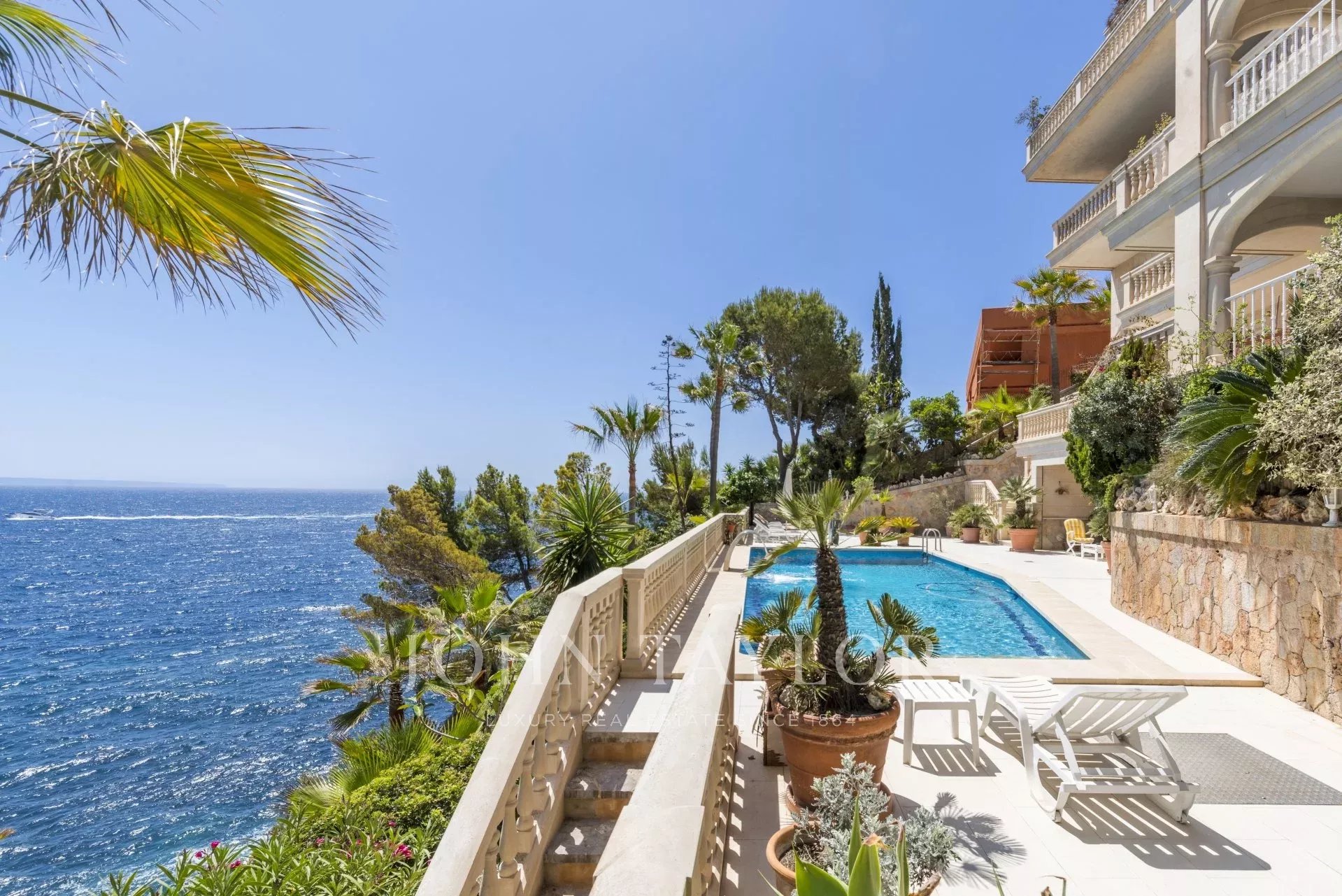 Mansão com vistas espectaculares e acesso direto ao mar em Cala Vinyas. Esta grande moradia está localizada em frente ao mar na urbanização tranquila de Cala Vinyas e goza de vistas magníficas sobre a Baía de Palma e para a ilha de Cabrera. Esta casa é muito privilegiada porque tem um acesso privado a uma pequena enseada, onde pode desfrutar de um mergulho nas águas cristalinas do mar. Ideal também para os adeptos dos desportos náuticos.