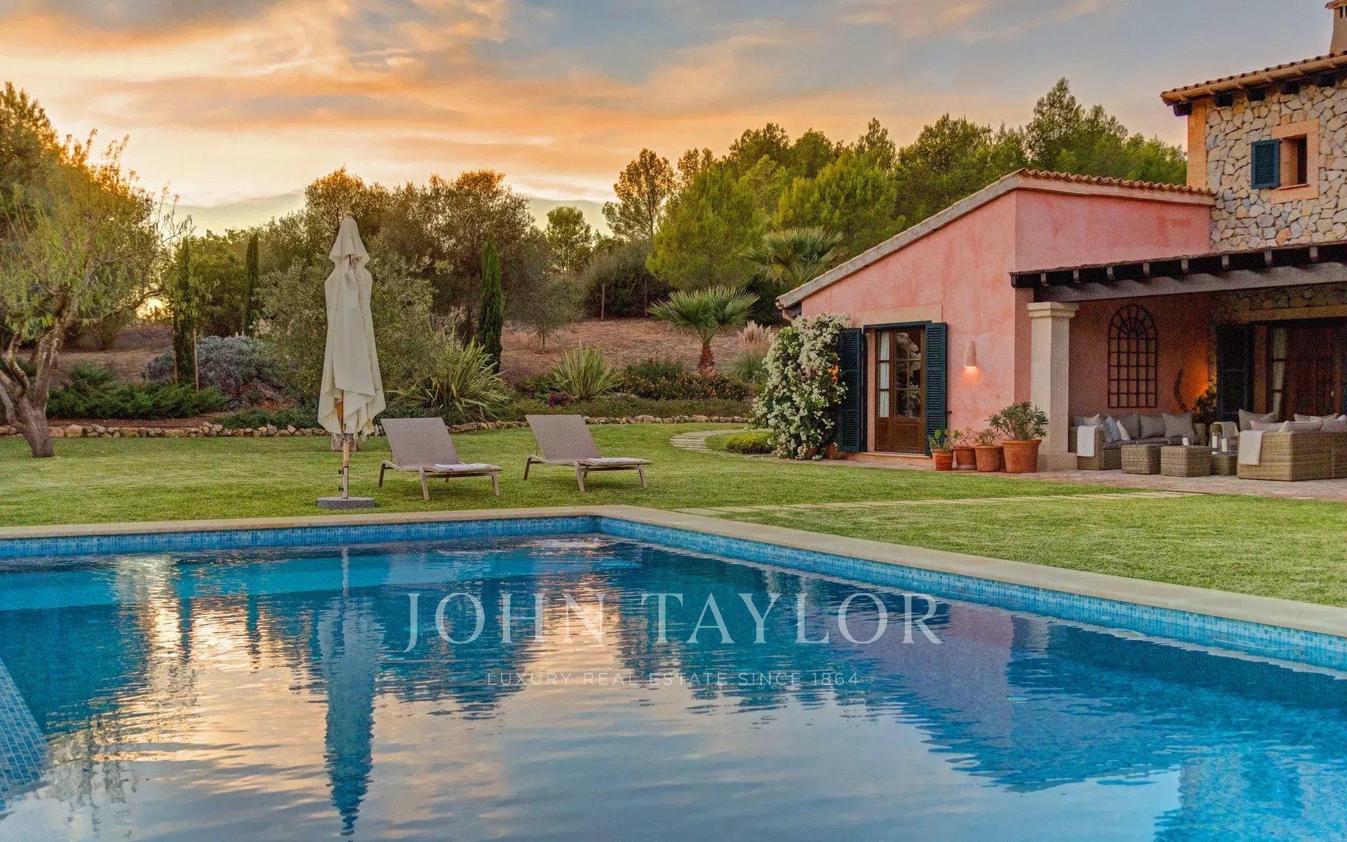 Com uma localização simplesmente fantástica, esta quinta para venda oferece uma experiência de vida sem paralelo. Situada num ambiente de serena tranquilidade, oferece total privacidade e uma ligação inigualável à natureza circundante. Apesar do seu retiro idílico, esta propriedade goza de proximidade a todas as comodidades que o sudoeste de Maiorca tem para oferecer. Esta quinta fica a poucos passos da encantadora aldeia de Calvia e, apenas a 15 minutos de carro, encontram-se praias douradas, campos de golfe de renome, restaurantes seleccionados, bares encantadores e lojas exclusivas. Com um terreno de 30.000 m2, esta joia de propriedade foi completamente remodelada em 2012 e oferece aquecimento por piso radiante a óleo, uma porta de entrada em ferro forjado, tectos muito altos com vigas expostas e janelas de estilo campestre com vidros duplos muntin. Com o seu próprio poço de água e painéis solares, a propriedade é totalmente autossuficiente. A casa principal é um testemunho de elegância e funcionalidade, com uma sala de estar espaçosa que convida ao relaxamento, uma cozinha de alta qualidade, uma casa de banho para hóspedes e quatro quartos, cada um com a sua própria casa de banho. Além disso, a propriedade dispõe de um apartamento de hóspedes que oferece o seu próprio espaço de vida com uma sala de estar e cozinha, dois quartos e uma casa de banho. Os terraços cobertos e o jardim exuberante e paradisíaco com a sua piscina infinita são um oásis de luxo e conforto que satisfará todos os seus desejos de vida ao ar livre. A partir daí, poderá desfrutar de uma vista majestosa sobre as montanhas. Para os amantes de cavalos e burros, esta propriedade tem vários estábulos e suficientes paddocks, tornando-a um refúgio perfeito para os entusiastas da equitação. Por favor, marque uma visita connosco.