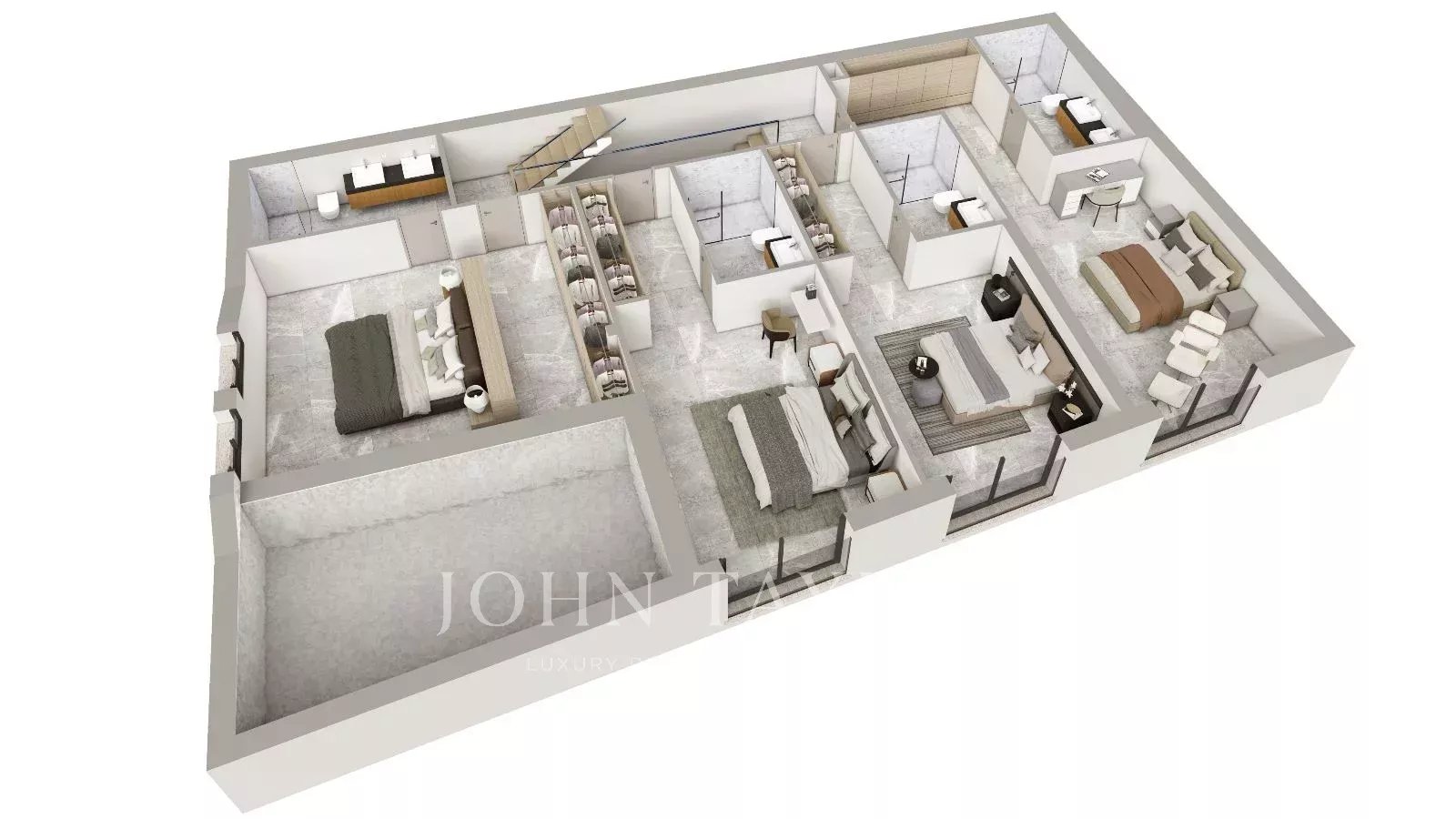 Oferece 5 quartos com casas de banho privativas, uma espaçosa sala de estar/jantar em plano aberto e uma cozinha moderna. A partir deste piso, no espaçoso e fabuloso terraço, pode desfrutar de uma fantástica piscina com vista para as montanhas e arredores.