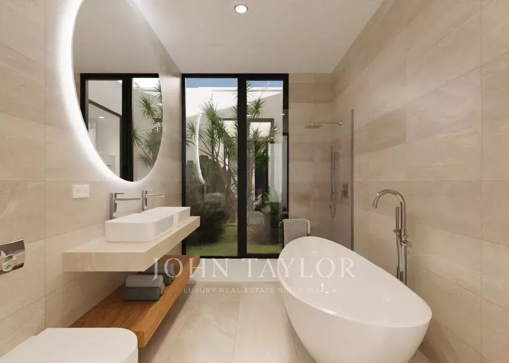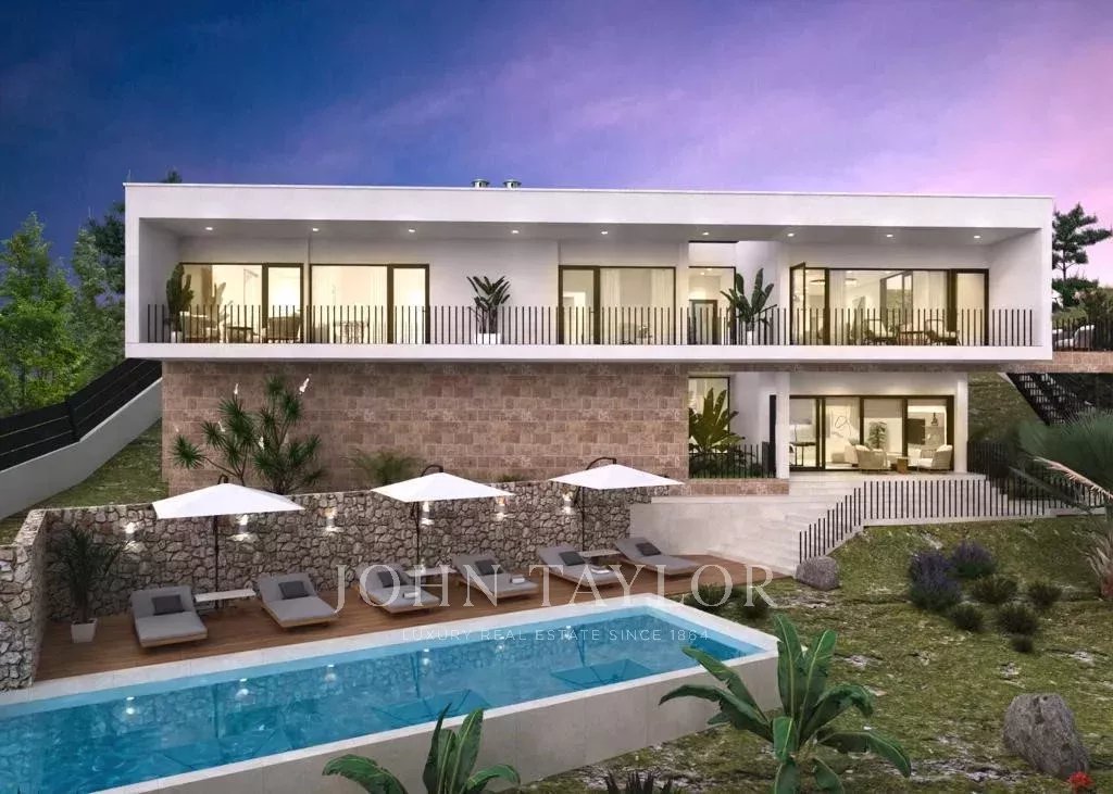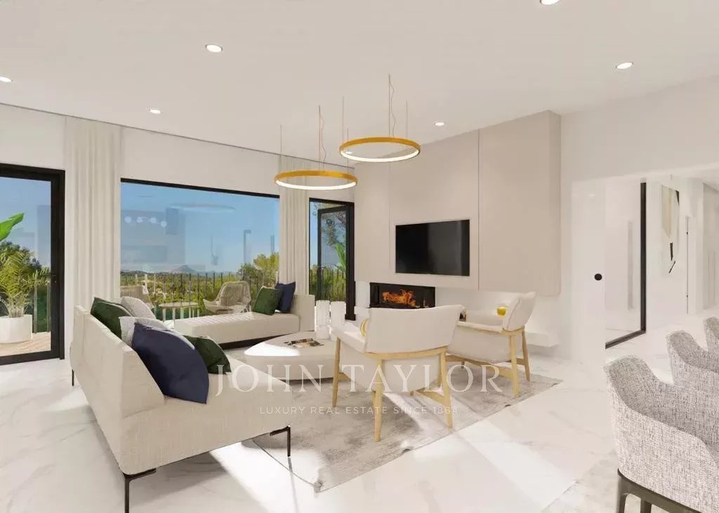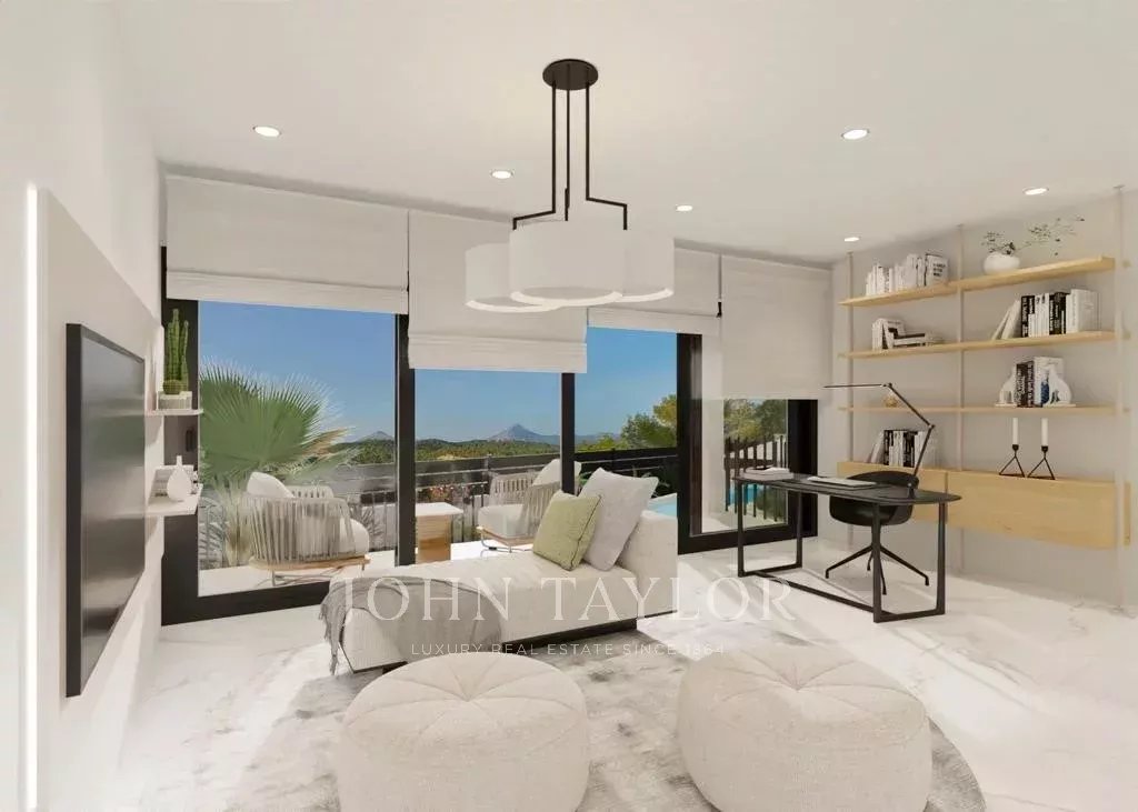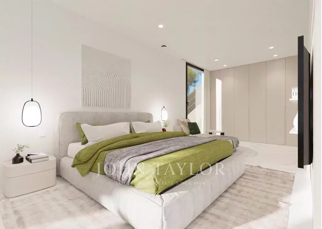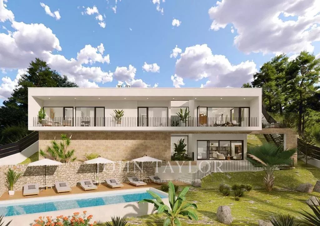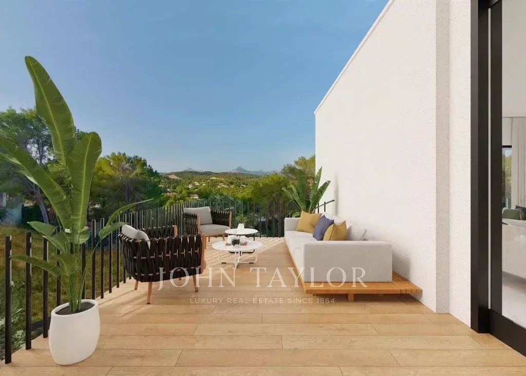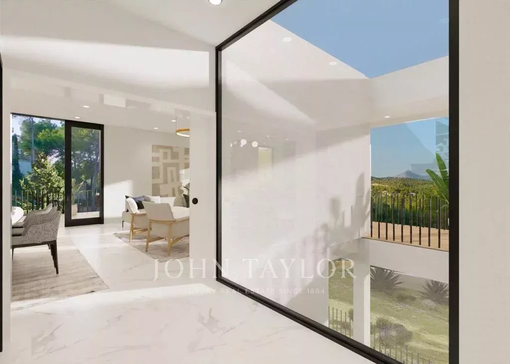 Moradia moderna em construção na Costa de la Calma. Esta casa pode ser entregue nel 2025. Está a ser construída num terreno inclinado que faz fronteira com uma zona verde. Poderá desfrutar de belas vistas para os pinheiros e para as montanhas. Os carros são estacionados ao nível da rua e depois descem para aceder à casa que está situada no declive natural do terreno. A casa é composta no total por uma sala de estar/jantar, uma cozinha totalmente equipada, uma lavandaria, um escritório, 4 quartos e 4 casas de banho. Haverá vários pátios que, juntamente com as grandes janelas, darão à casa muita luz. Nos terraços e no solário junto à piscina poderá desfrutar da vida ao ar livre.