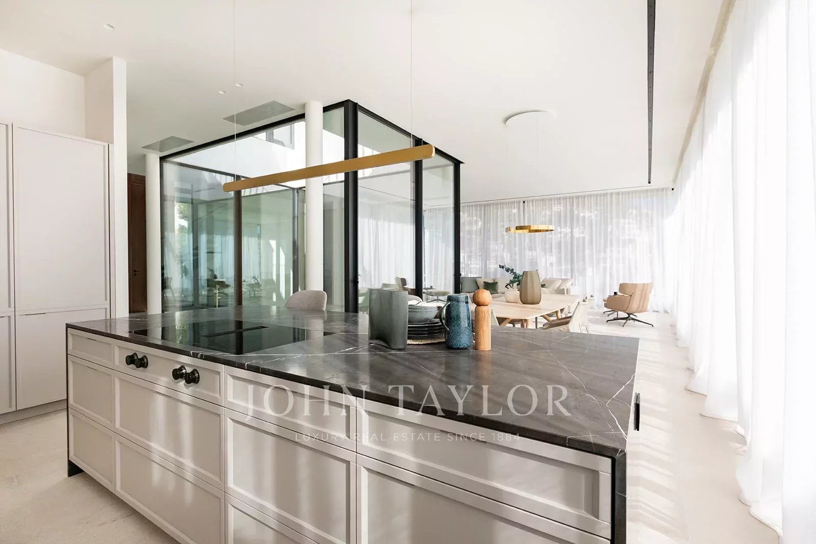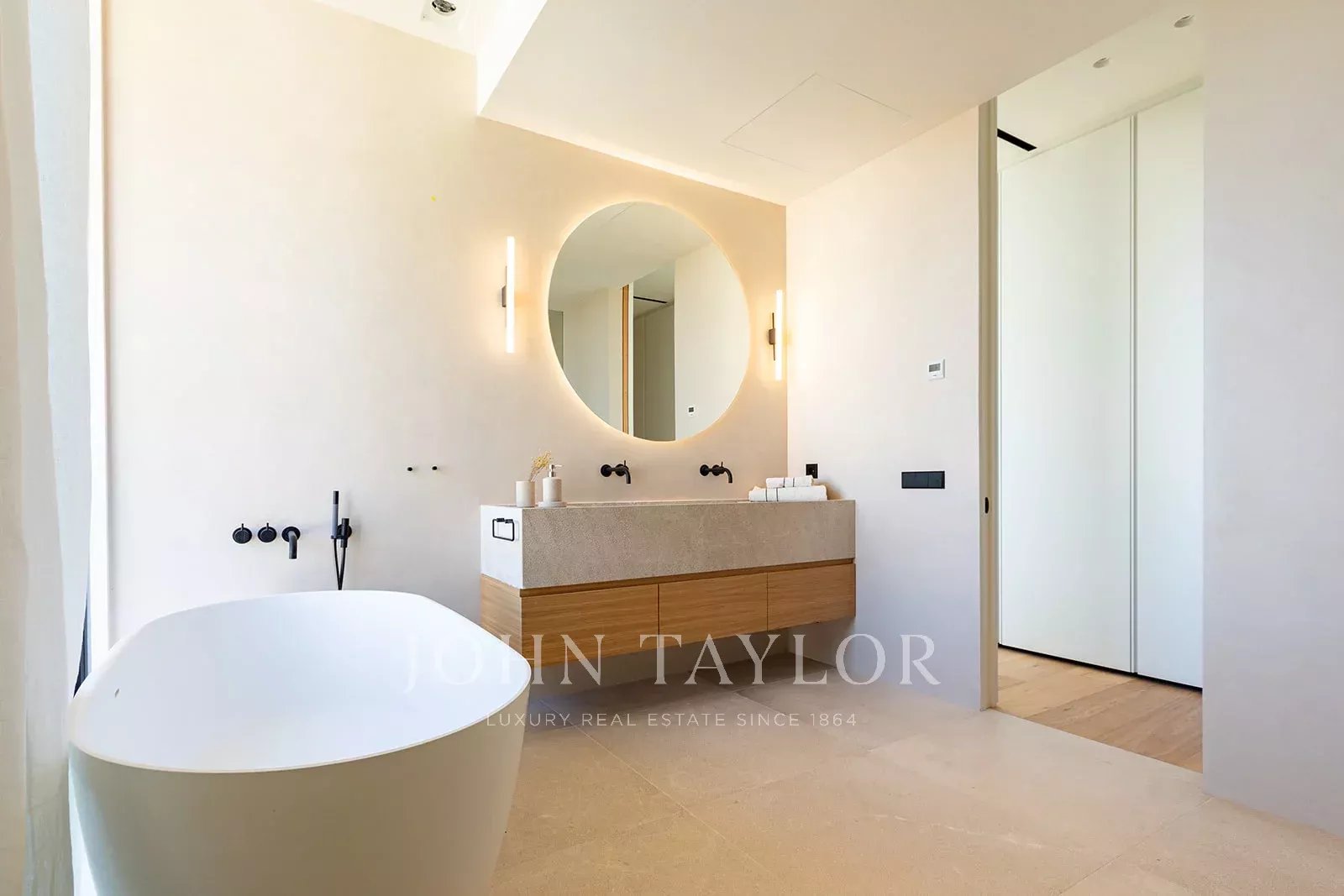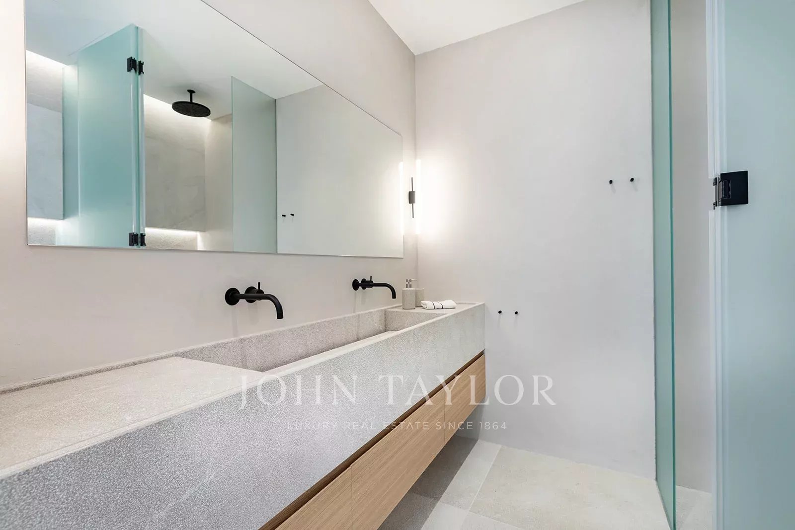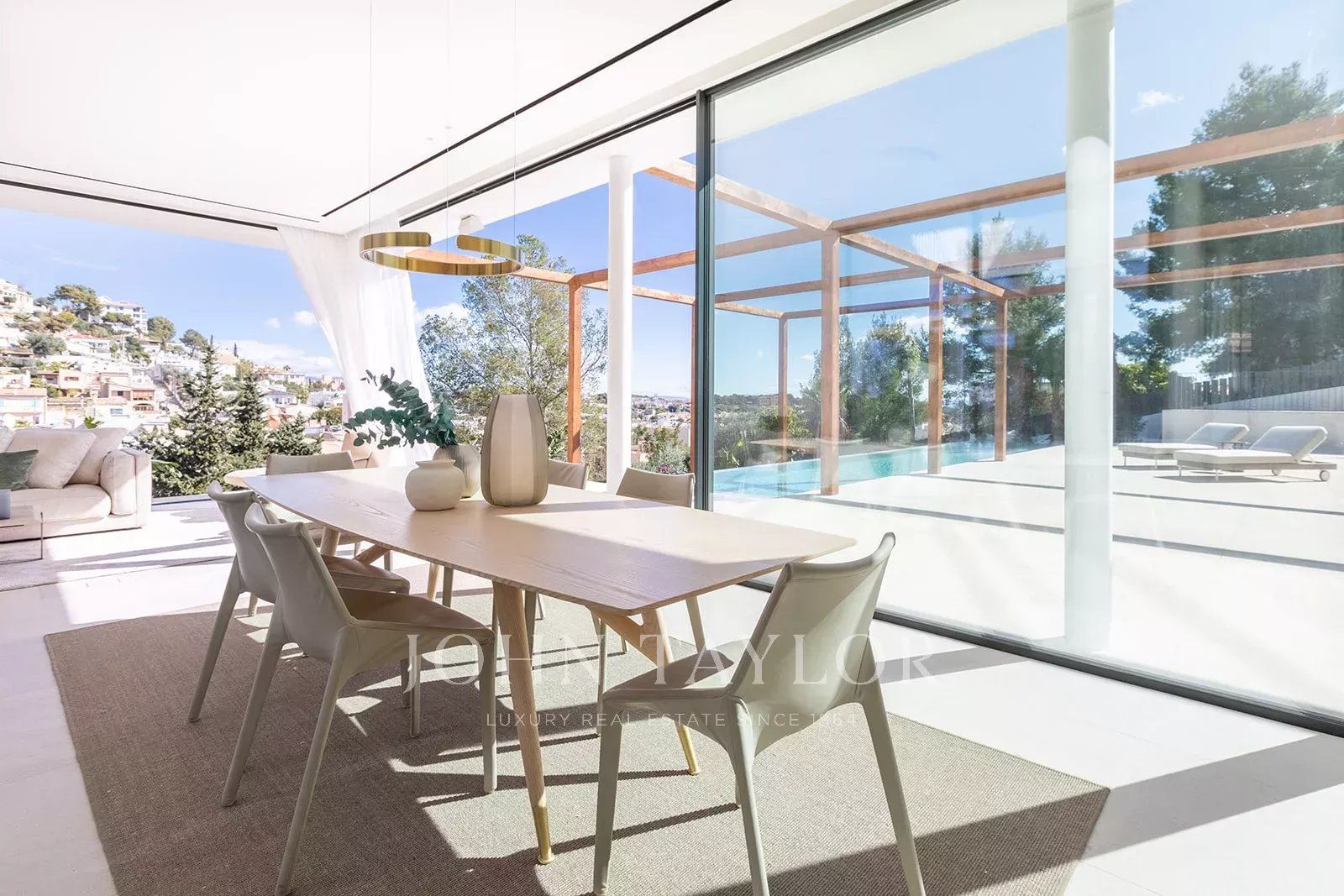 Esta moradia contemporânea possui mais de 400 metros quadrados de espaço de vida sofisticado que esbate as linhas entre o interior e o exterior. Os destaques desta propriedade excecional incluem uma piscina privada, amplos terraços, um átrio central que traz luz natural para o interior e estacionamento subterrâneo para três carros. Construída num terreno ligeiramente inclinado, a propriedade está rodeada por jardins paisagísticos com uma piscina infinita no ponto mais baixo, terraços e áreas de estar orientadas para as montanhas e um interior de conceito aberto. O átrio repleto de plantas é o coração do rés do chão, enchendo o espaço de luz natural. A partir dele, encontram-se o hall de entrada e a escadaria, uma despensa/despensa, um quarto duplo com casa de banho privativa e uma espaçosa cozinha, sala de jantar e sala de estar em conceito aberto, dispostas em níveis divididos que combinam com os níveis de terraços no exterior. Os vidros do chão ao teto ao longo de um dos lados da sala de estar têm vista para as áreas de refeições e de estar do terraço, aproveitando ao máximo o potencial de vida ao ar livre. O primeiro andar, que também é acessível através de uma escada exterior, inclui mais três quartos duplos e casas de banho. Dois deles estão virados para o átrio, garantindo muita luz, e também têm acesso a um terraço partilhado com vista para o campo. A construção de primeira qualidade, os materiais mais nobres e os electrodomésticos de primeira qualidade serão utilizados nesta moderna casa maiorquina. O uso contínuo de madeiras claras, revestimentos de pedra natural e uma abundância de vidro, tanto no interior como no exterior, unem esteticamente esta propriedade, garantindo que é quente, leve e contemporânea, enquanto desfruta da proximidade da natureza e do fácil acesso a Palma e à costa.
