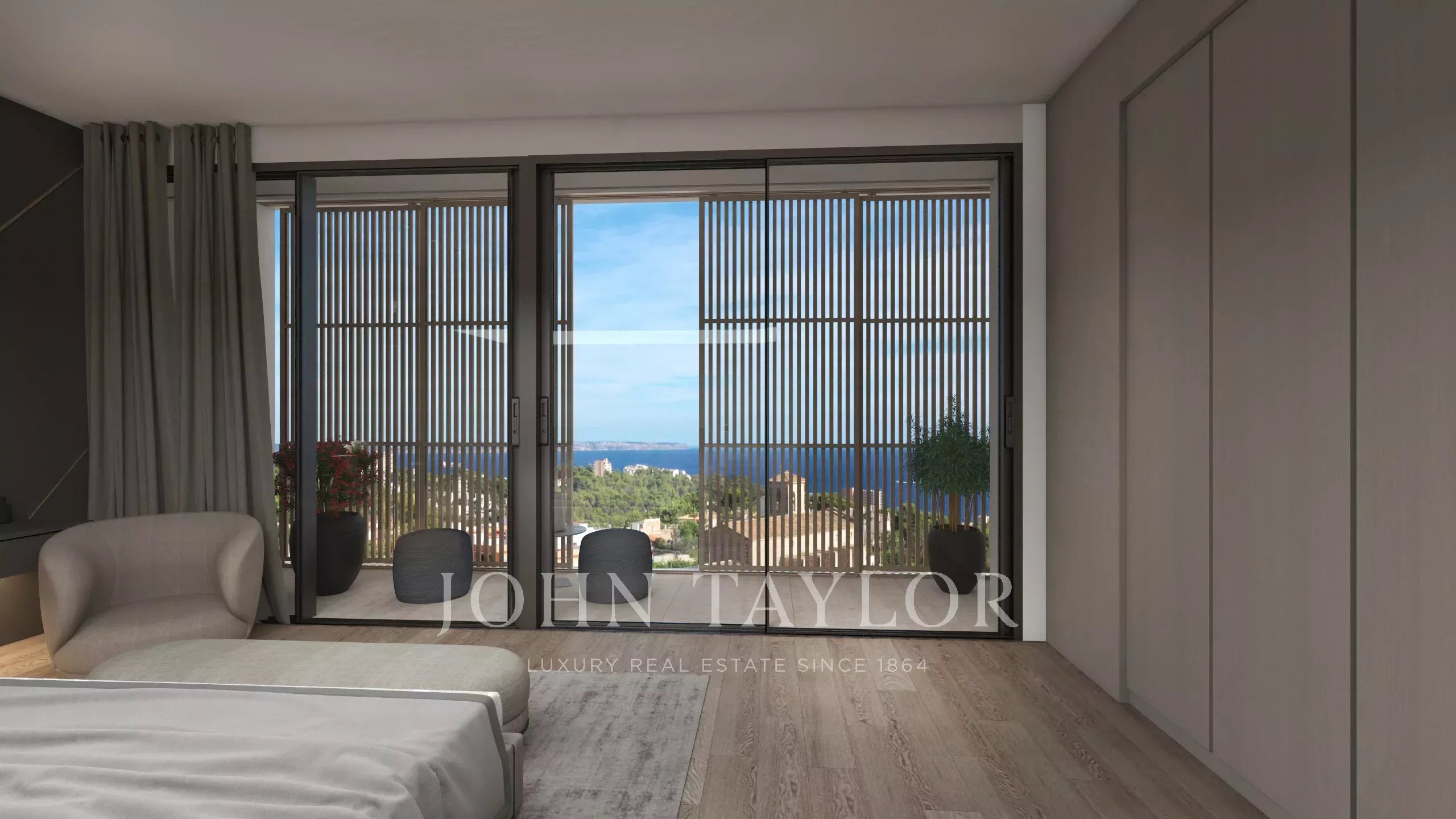 Situada numa posição elevada e tranquila no final de uma tranquila rua sem saída em Génova, esta excecional moradia contemporânea oferece vistas panorâmicas deslumbrantes sobre a Baía de Palma. Concebida com linhas arquitectónicas simples e generosas janelas do chão ao teto, a propriedade funde-se perfeitamente com a sua envolvente natural, criando um santuário requintado e privado a poucos minutos do vibrante centro de Palma.