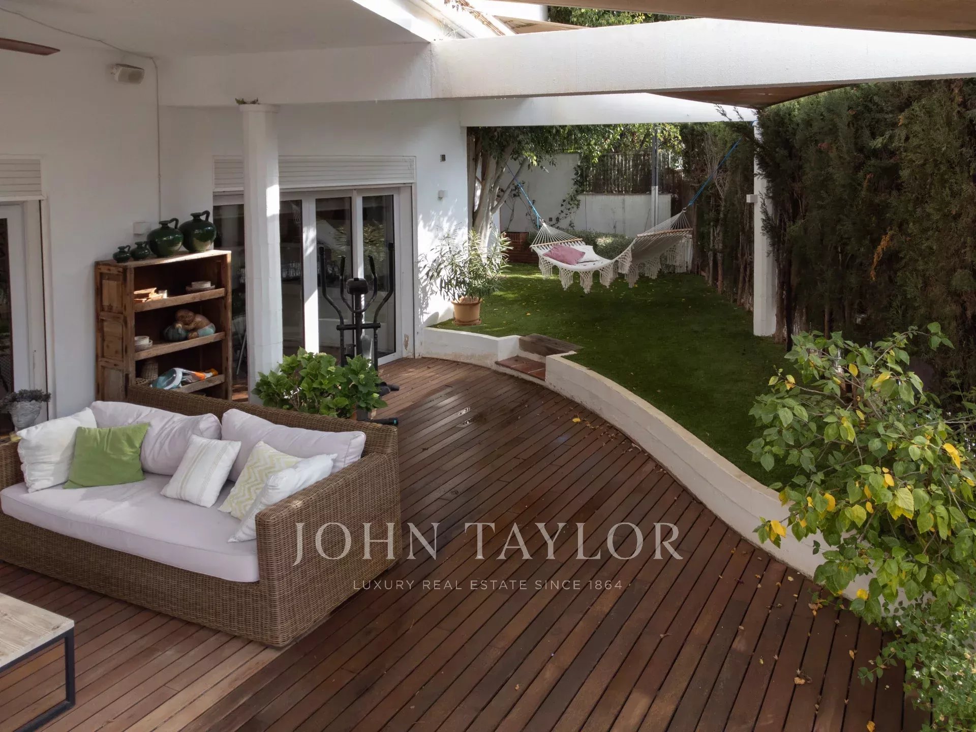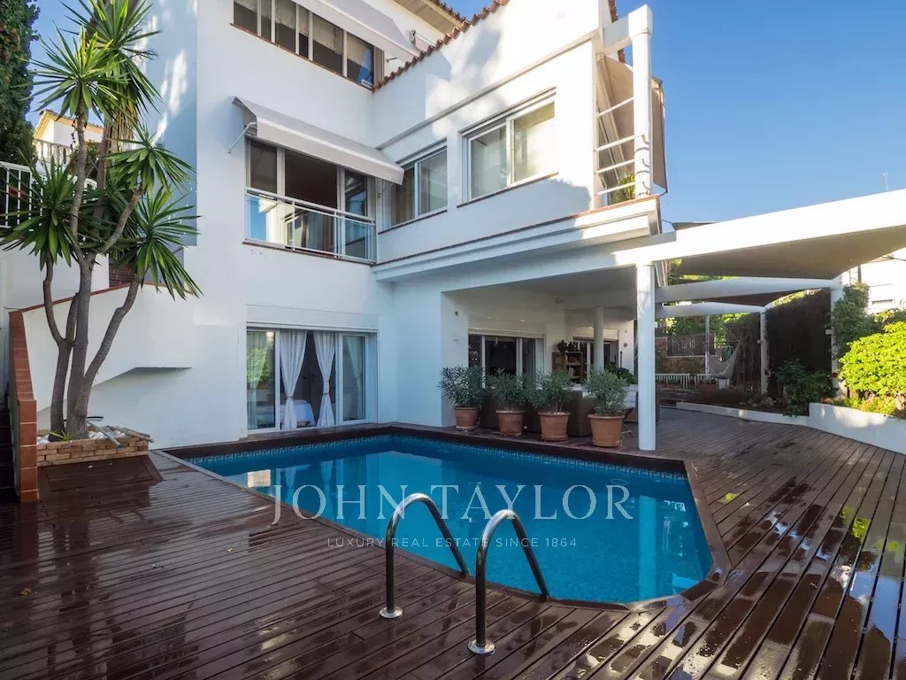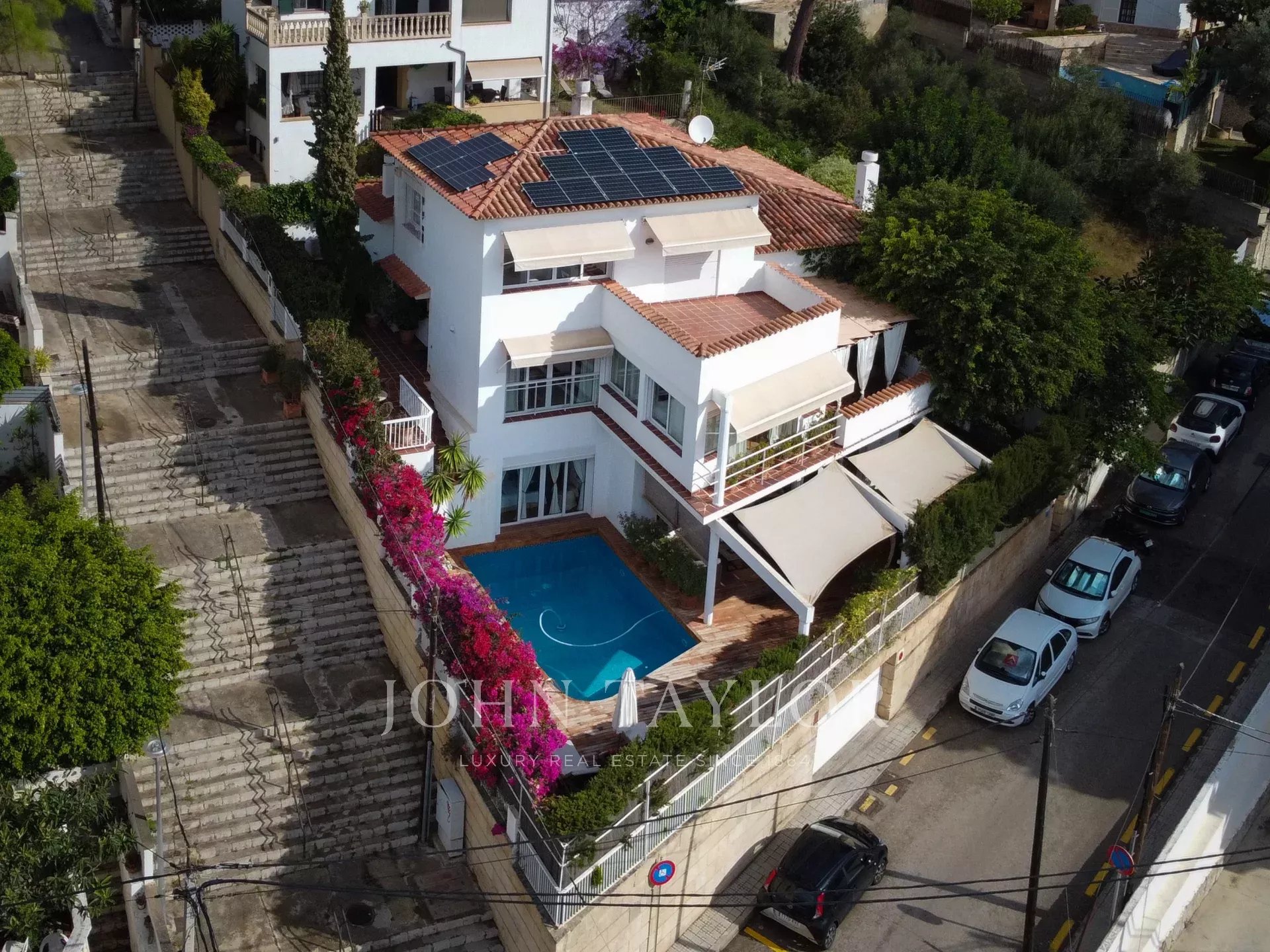 Esta bela casa com vista parcial para o mar, jardim e piscina é ideal para desfrutar do ar livre. A distribuição em três pisos mais garagem oferece muito espaço e versatilidade. No primeiro andar existe um hall de entrada, uma ampla sala de estar e jantar com terraço, cozinha com zona de refeições, despensa, zona de lavandaria. Tem 2 quartos, um deles com casa de banho privativa e quarto de vestir e um grande WC. O piso superior tem uma sala de estar, 2 quartos, 1 casa de banho e 1 terraço. O piso inferior tem uma sala de TV com lareira a gás, 2 quartos, 1 casa de banho e outra sala, todos com acesso ao terraço e ao jardim com piscina. A cave oferece um espaço amplo para vários carros.