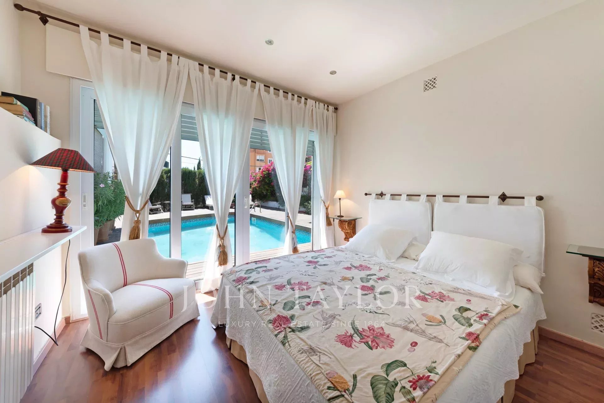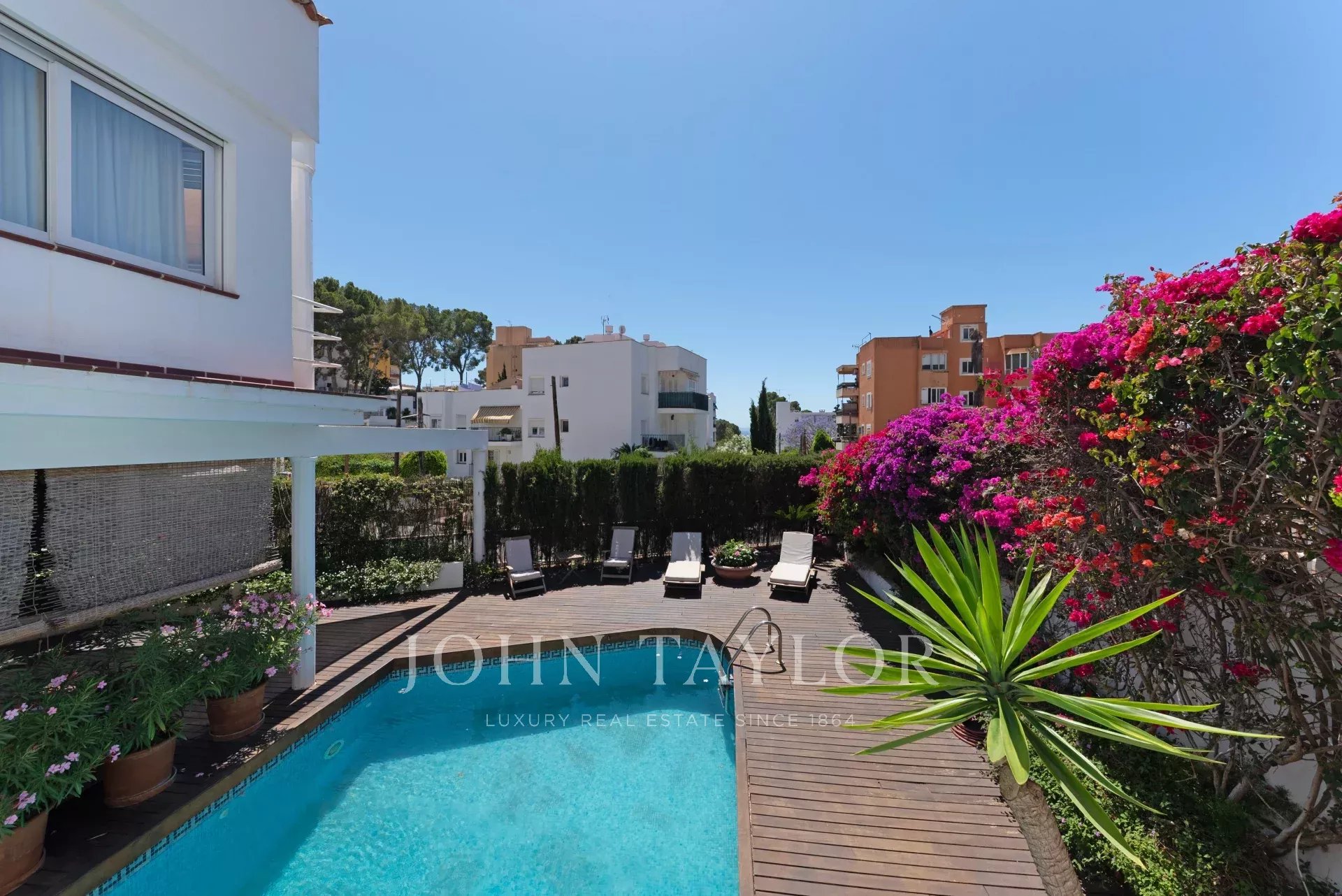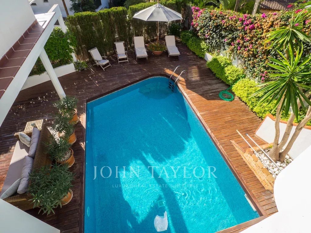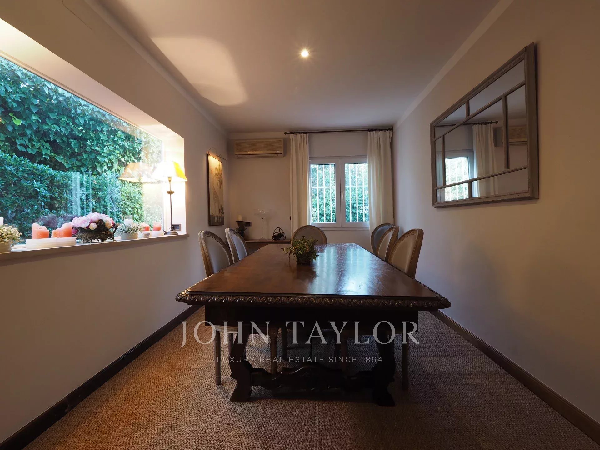 Esta bela casa com vista parcial para o mar, jardim e piscina é ideal para desfrutar do ar livre. A distribuição em três pisos mais garagem oferece muito espaço e versatilidade. No primeiro andar existe um hall de entrada, uma ampla sala de estar e jantar com terraço, cozinha com zona de refeições, despensa, zona de lavandaria. Tem 2 quartos, um deles com casa de banho privativa e quarto de vestir e um grande WC. O piso superior tem uma sala de estar, 2 quartos, 1 casa de banho e 1 terraço. O piso inferior tem uma sala de TV com lareira a gás, 2 quartos, 1 casa de banho e outra sala, todos com acesso ao terraço e ao jardim com piscina. A cave oferece um espaço amplo para vários carros.