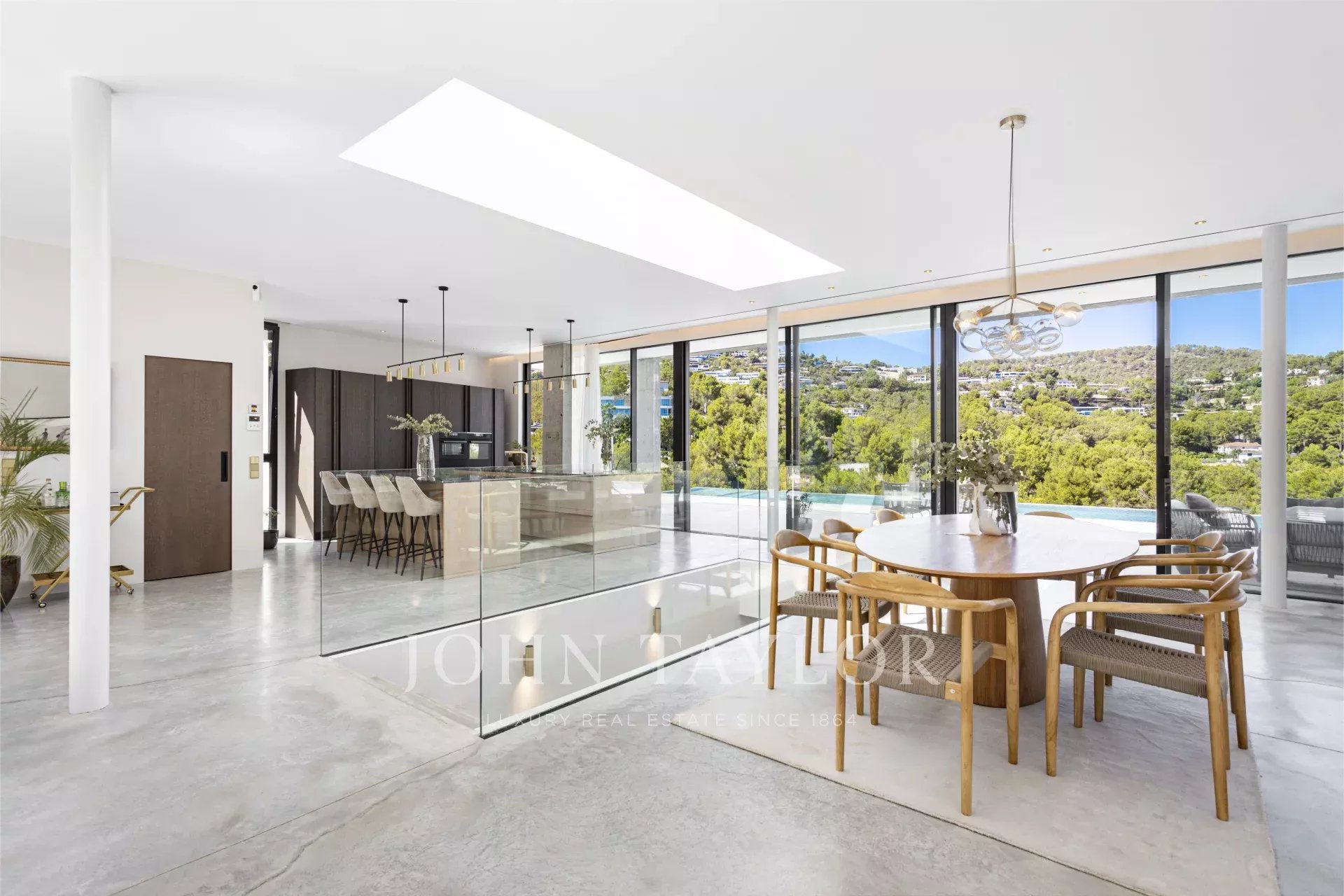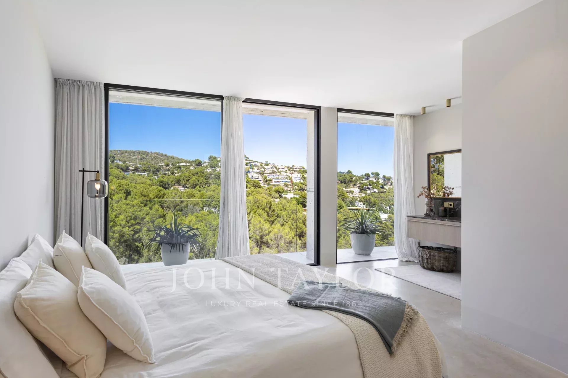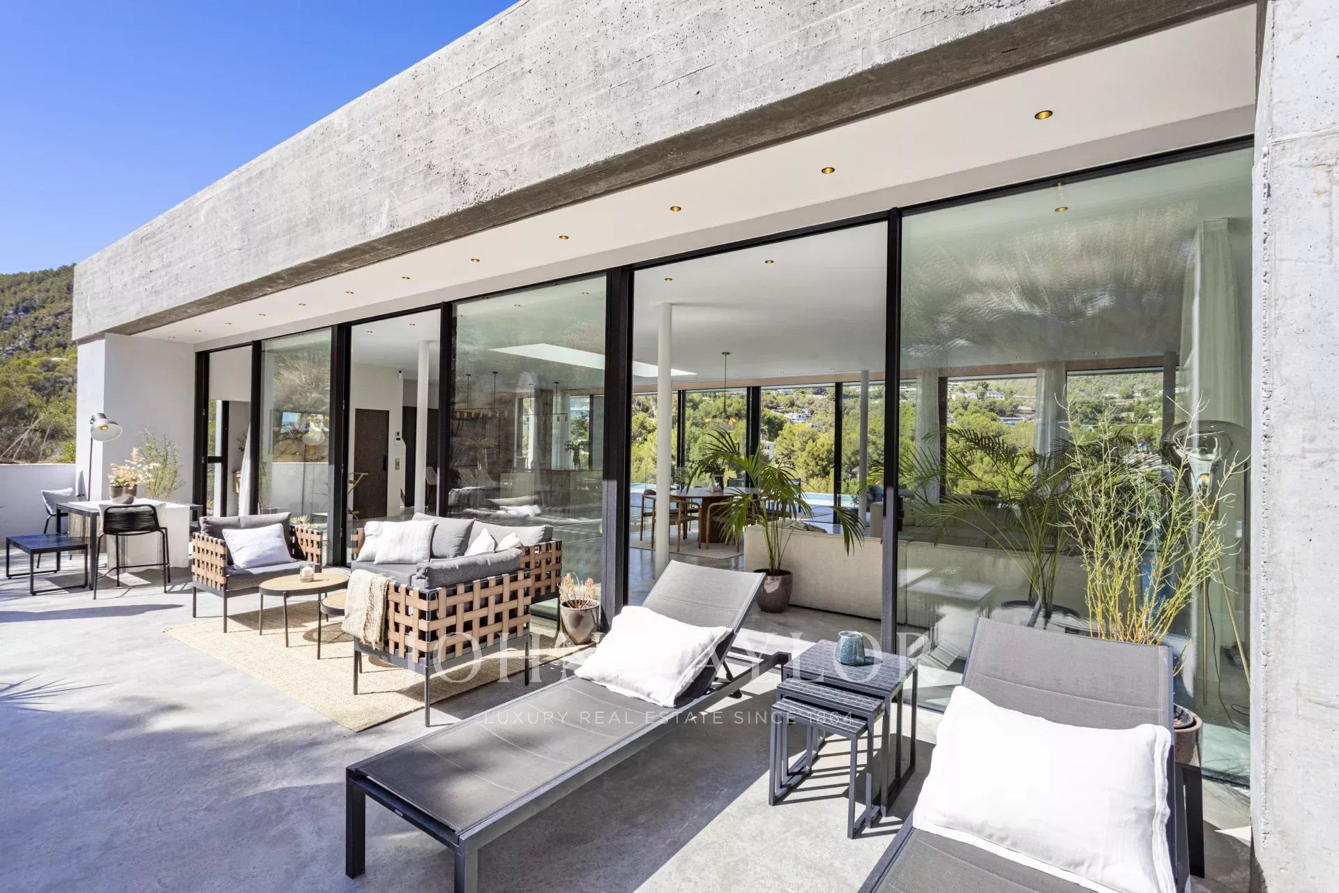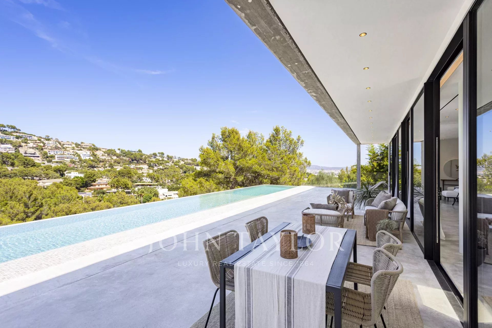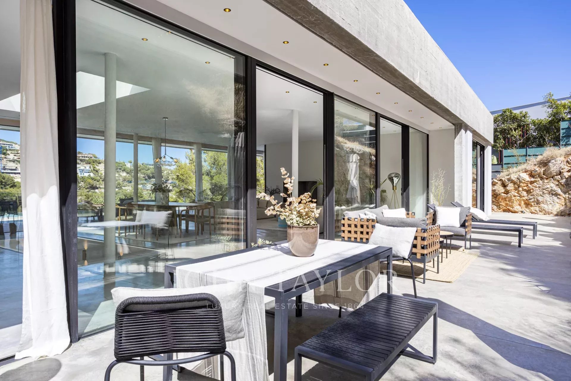 Espetacular moradia recentemente construída na zona exclusiva de Son Vida. Com um design arquitetónico marcante em betão exposto, esta propriedade de dois andares oferece uma espaçosa área de estar interior de 455 m2, com a excitante possibilidade de adicionar mais 383 m2. Um oásis de tranquilidade e luxo situado em 2.635 m2 de terreno, com belas vistas sobre o campo de golfe, a cidade de Palma e o Mar Mediterrâneo. O design desta moradia é o resultado de uma fusão perfeita entre elegância moderna, conforto e funcionalidade. O betão aparente confere uma estética única e arrojada, realçando a personalidade vanguardista da propriedade. As janelas do chão ao teto e os espaços abertos garantem uma abundância de luz natural, criando uma atmosfera luminosa e acolhedora em todos os cantos da propriedade. A área exterior é simplesmente de cortar a respiração. Desfrute de momentos de descontração e lazer no alpendre de 68 m2, ideal para reuniões sociais ou para desfrutar das noites quentes de Maiorca. O extenso terraço de 120 m2 oferece um espaço perfeito para apanhar banhos de sol e desfrutar das vistas panorâmicas que a propriedade tem para oferecer. Uma joia por si só, a piscina de 28 metros convida-o a desfrutar de mergulhos refrescantes enquanto contempla a beleza dos arredores. Com grande privacidade, esta área da propriedade torna-se num oásis para relaxar e desfrutar de momentos inesquecíveis. Para além disso, esta moradia dispõe de uma zona de spa, onde se pode mimar com várias opções de relaxamento e bem-estar. A disposição interior foi meticulosamente pensada para oferecer um espaço funcional e confortável. Com quatro quartos espaçosos, cada um com a sua própria casa de banho privativa, a villa proporciona um ambiente íntimo e agradável aos seus residentes. A suite principal cria um ambiente de sonho para relaxar e desfrutar da privacidade. As áreas comuns não ficam muito atrás. A sala de estar e a sala de jantar entrelaçam-se na perfeição, criando um espaço acolhedor e amplo para partilhar momentos em família ou com amigos. Para além disso, a cozinha, de design moderno e equipada com as mais recentes comodidades, é o local perfeito para dar largas à sua criatividade culinária. Em suma, esta moradia recém-construída em Son Vida é uma verdadeira obra-prima da arquitetura moderna, combinando um design deslumbrante com o conforto de um lar.