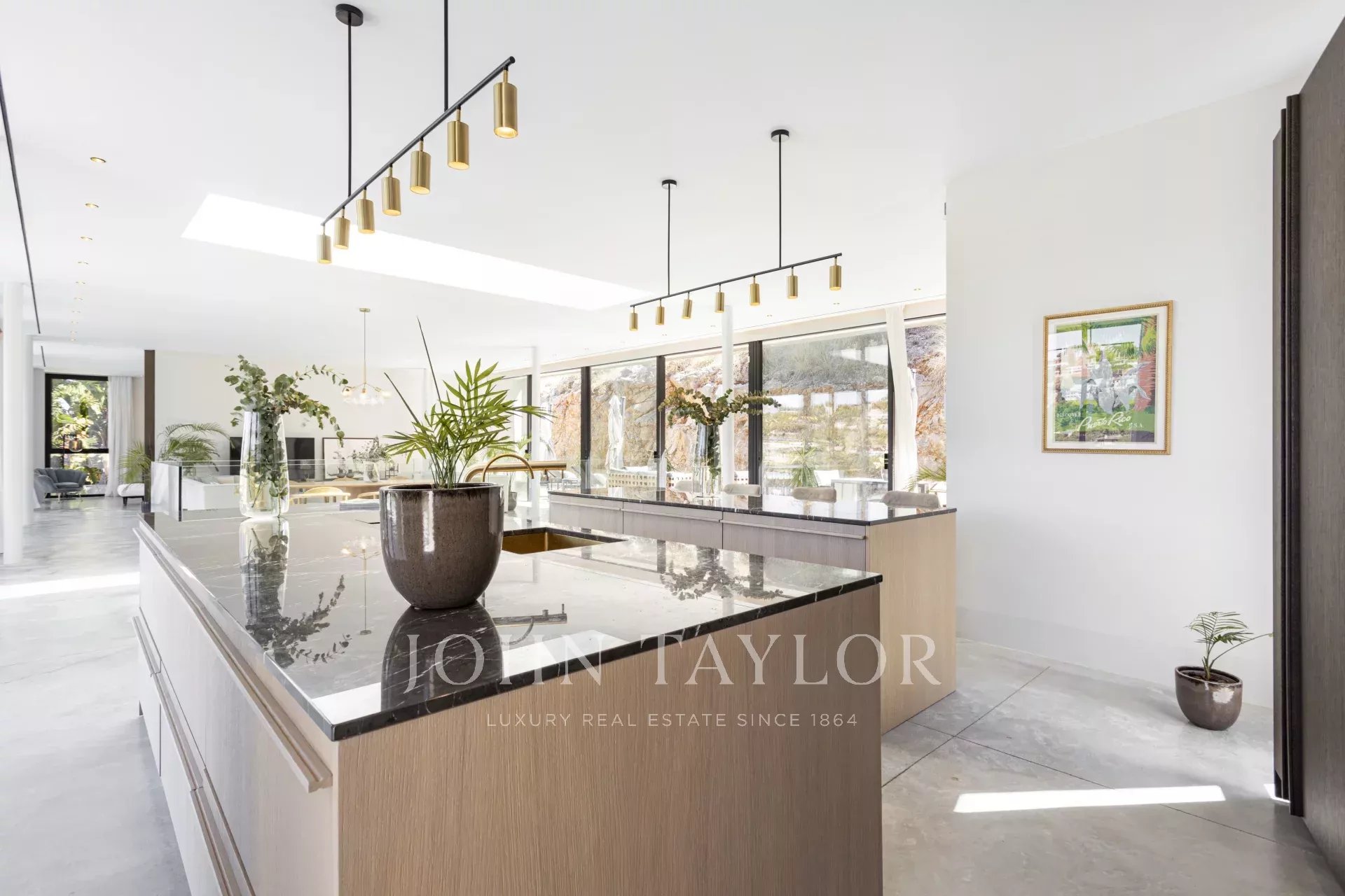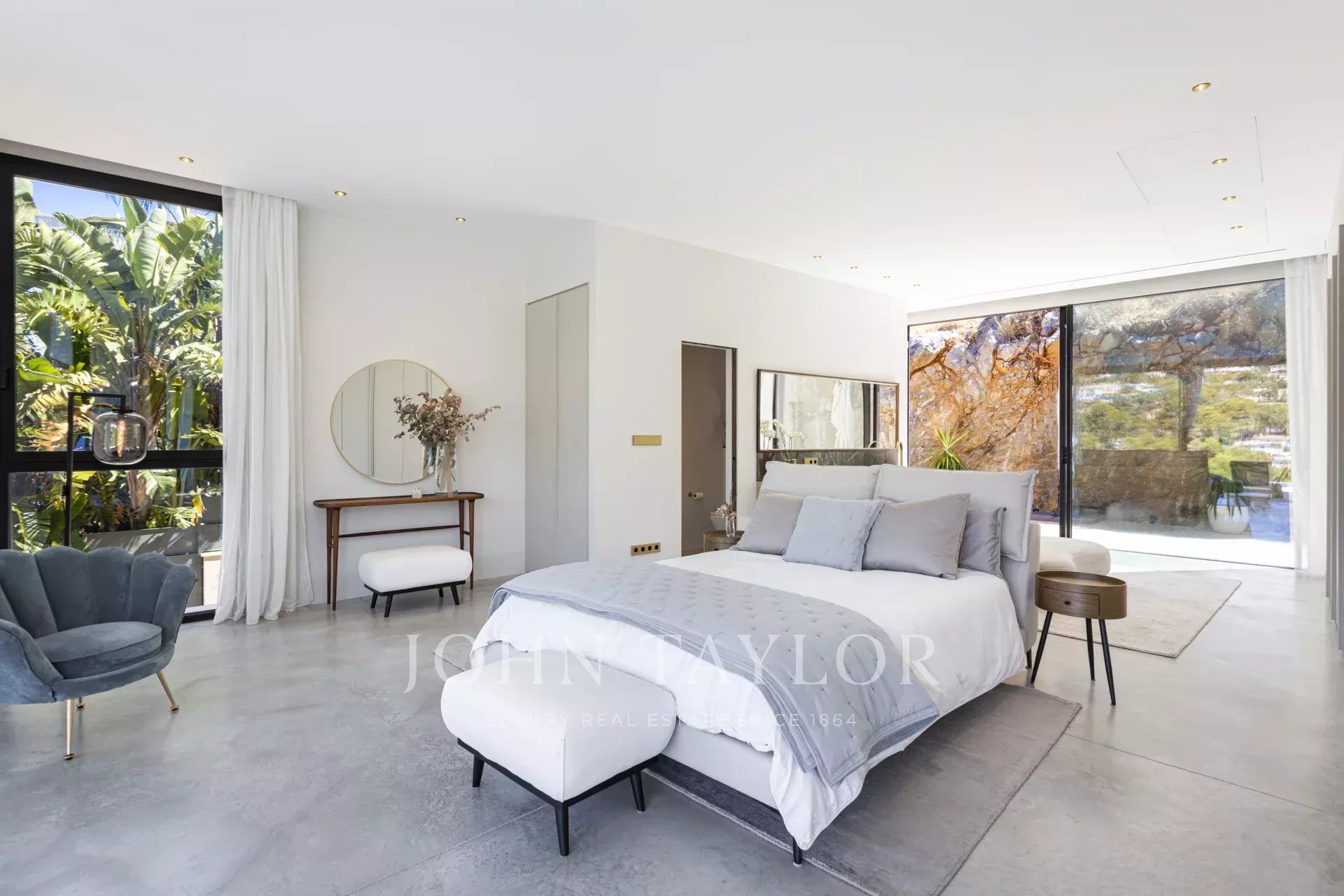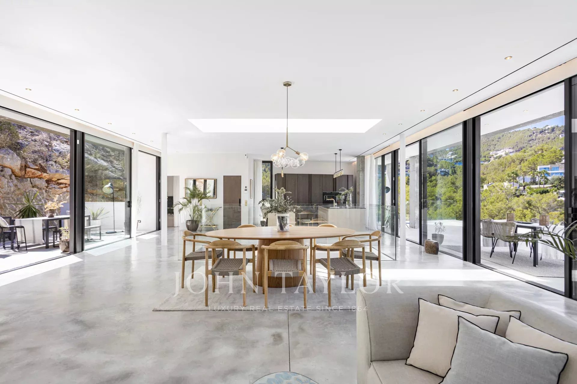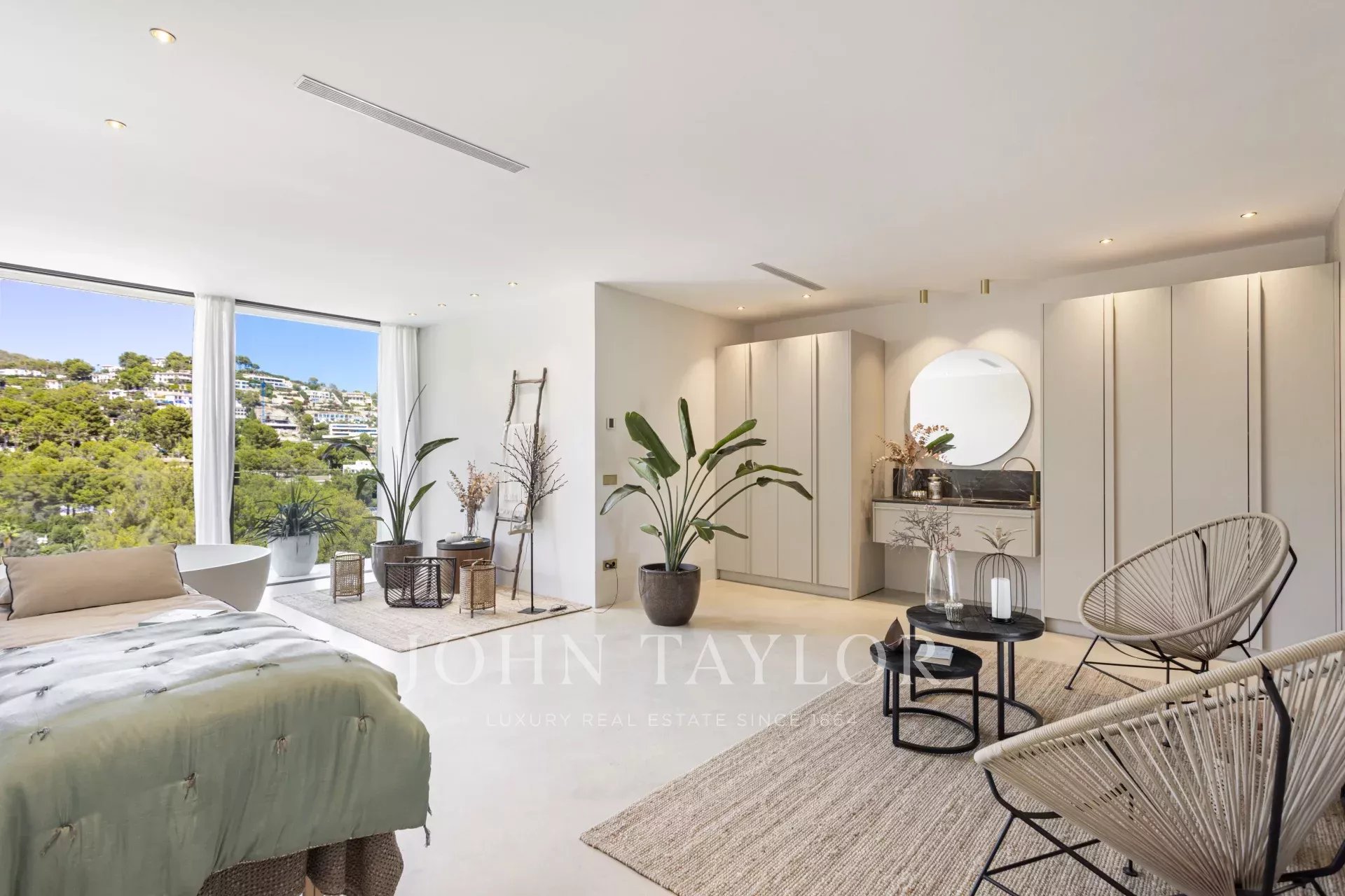 Espetacular moradia recentemente construída na zona exclusiva de Son Vida. Com um design arquitetónico marcante em betão exposto, esta propriedade de dois andares oferece uma espaçosa área de estar interior de 455 m2, com a excitante possibilidade de adicionar mais 383 m2. Um oásis de tranquilidade e luxo situado em 2.635 m2 de terreno, com belas vistas sobre o campo de golfe, a cidade de Palma e o Mar Mediterrâneo. O design desta moradia é o resultado de uma fusão perfeita entre elegância moderna, conforto e funcionalidade. O betão aparente confere uma estética única e arrojada, realçando a personalidade vanguardista da propriedade. As janelas do chão ao teto e os espaços abertos garantem uma abundância de luz natural, criando uma atmosfera luminosa e acolhedora em todos os cantos da propriedade. A área exterior é simplesmente de cortar a respiração. Desfrute de momentos de descontração e lazer no alpendre de 68 m2, ideal para reuniões sociais ou para desfrutar das noites quentes de Maiorca. O extenso terraço de 120 m2 oferece um espaço perfeito para apanhar banhos de sol e desfrutar das vistas panorâmicas que a propriedade tem para oferecer. Uma joia por si só, a piscina de 28 metros convida-o a desfrutar de mergulhos refrescantes enquanto contempla a beleza dos arredores. Com grande privacidade, esta área da propriedade torna-se num oásis para relaxar e desfrutar de momentos inesquecíveis. Para além disso, esta moradia dispõe de uma zona de spa, onde se pode mimar com várias opções de relaxamento e bem-estar. A disposição interior foi meticulosamente pensada para oferecer um espaço funcional e confortável. Com quatro quartos espaçosos, cada um com a sua própria casa de banho privativa, a villa proporciona um ambiente íntimo e agradável aos seus residentes. A suite principal cria um ambiente de sonho para relaxar e desfrutar da privacidade. As áreas comuns não ficam muito atrás. A sala de estar e a sala de jantar entrelaçam-se na perfeição, criando um espaço acolhedor e amplo para partilhar momentos em família ou com amigos. Para além disso, a cozinha, de design moderno e equipada com as mais recentes comodidades, é o local perfeito para dar largas à sua criatividade culinária. Em suma, esta moradia recém-construída em Son Vida é uma verdadeira obra-prima da arquitetura moderna, combinando um design deslumbrante com o conforto de um lar.