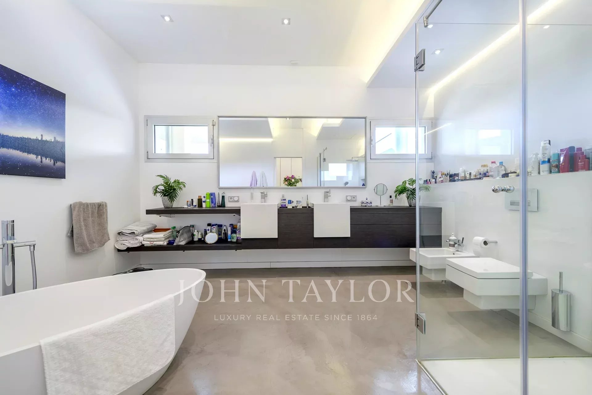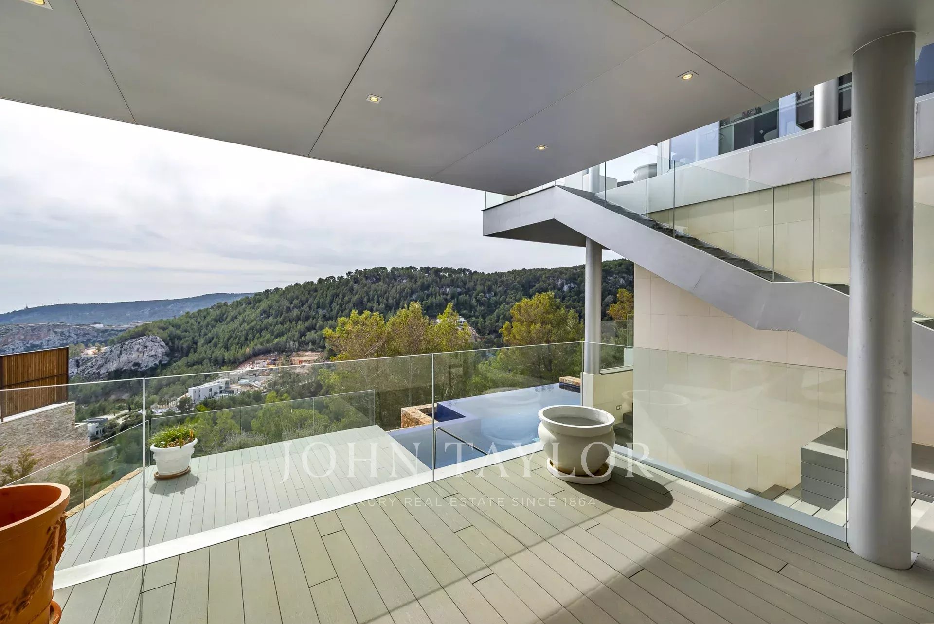 Esta propriedade deslumbrante, localizada numa rua tranquila que termina num beco sem saída, oferece uma experiência de vida única. Com vistas panorâmicas sobre o mar e a montanha, cada canto desta moradia foi concebido para proporcionar tranquilidade e beleza. A moradia tem 5 quartos e 5 casas de banho, proporcionando um espaço amplo e confortável para a vida quotidiana e para receber convidados. Além disso, existe um estúdio para quem procura um espaço privado para trabalhar a partir de casa, uma sala de cinema e um ginásio totalmente equipado para se manter em forma sem sair de casa. Relaxe e revitalize-se na sauna da propriedade, ou desfrute de momentos de serenidade na área de chill out com vistas maravilhosas, perfeitas para desfrutar de espectaculares pores-do-sol e a moradia possui uma piscina infinita. A modernidade e a eficiência energética são fundamentais nesta propriedade, tais como painéis solares, carregador de carros eléctricos, descalcificador de água e sistema de osmose. O sistema de domótica facilita o controlo e a gestão da casa, enquanto o elevador proporciona acessibilidade a todas as áreas. O aquecimento/arrefecimento por piso radiante garante um conforto ótimo em todas as estações do ano, criando uma atmosfera acolhedora e agradável em todos os cantos da moradia.