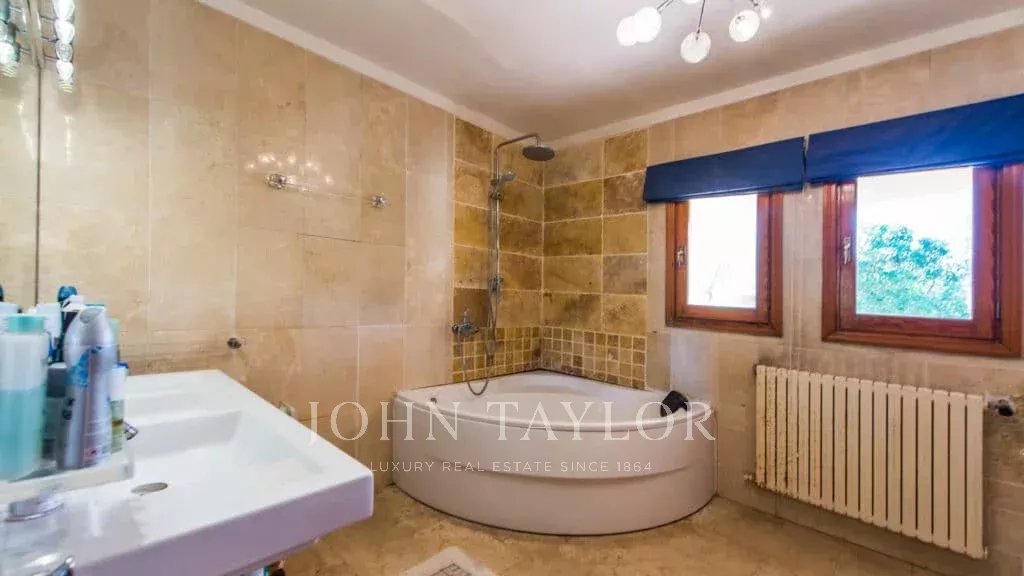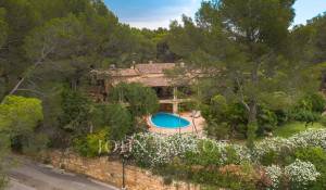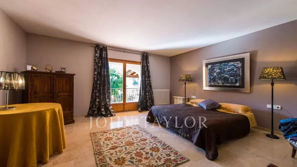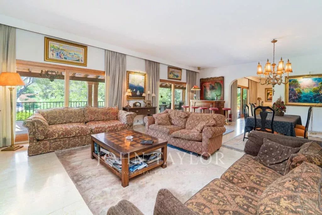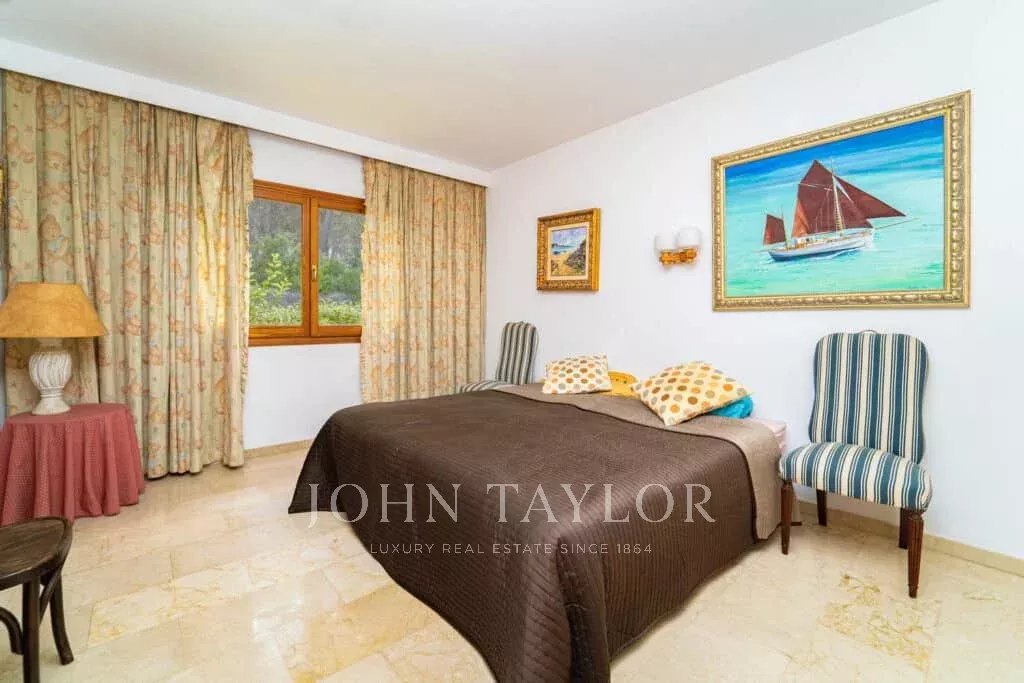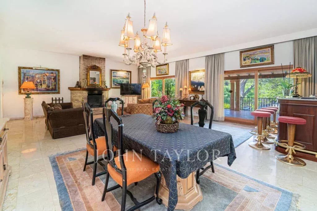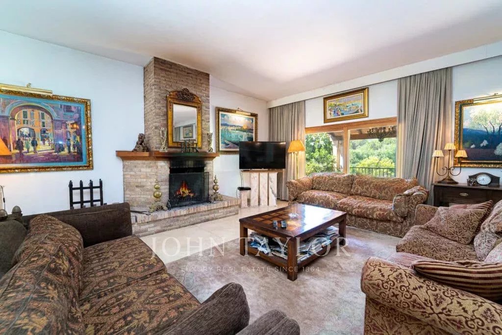 Orientação solar: Sul-Sudoeste A área útil de habitação de aproximadamente 530 m2 está distribuída entre a casa principal e a casa de hóspedes. Casa principal com um nível: área de entrada, sala de estar grande com lareira, sala de jantar, cozinha com canto de pequeno-almoço, casa de banho para hóspedes, 3 quartos grandes cada um com casa de banho e área de vestir em suite e 2 outros quartos com uma casa de banho, várias salas de serviço. Casa de hóspedes: quarto com casa de banho privativa e cozinha. Esta propriedade foi renovada em 1997. Boa qualidade, A/C reversível em todas as divisões, aquecimento central, chão em mármore. Belos terraços parcialmente cobertos. Piscina. Grandes áreas verdes e garagem dupla.