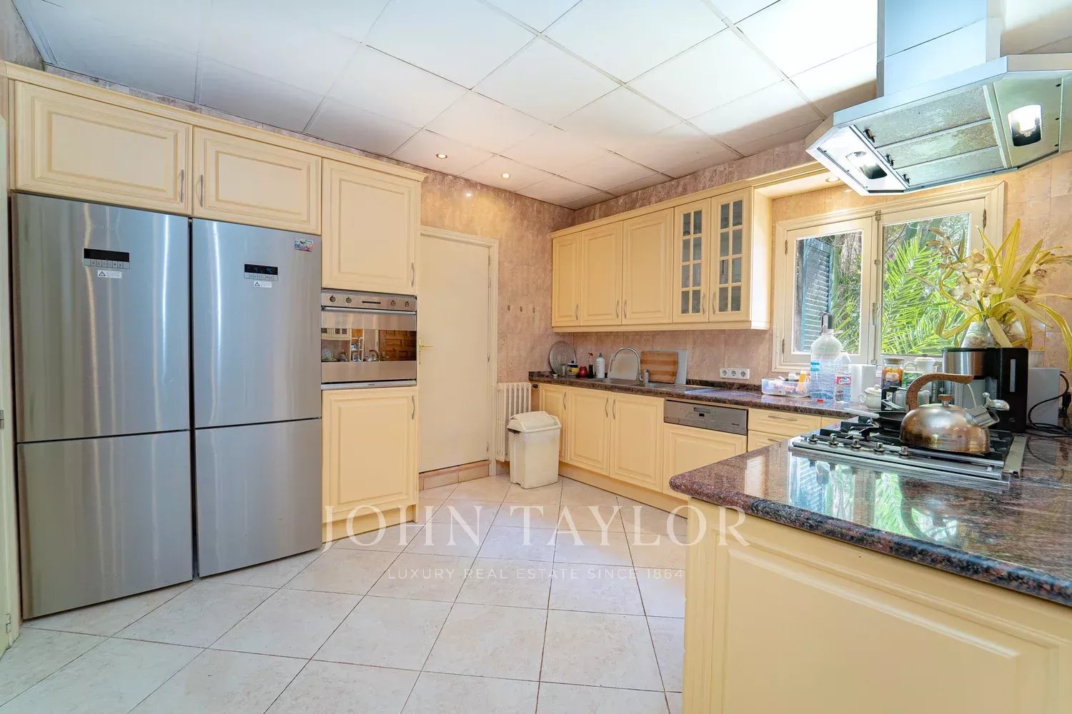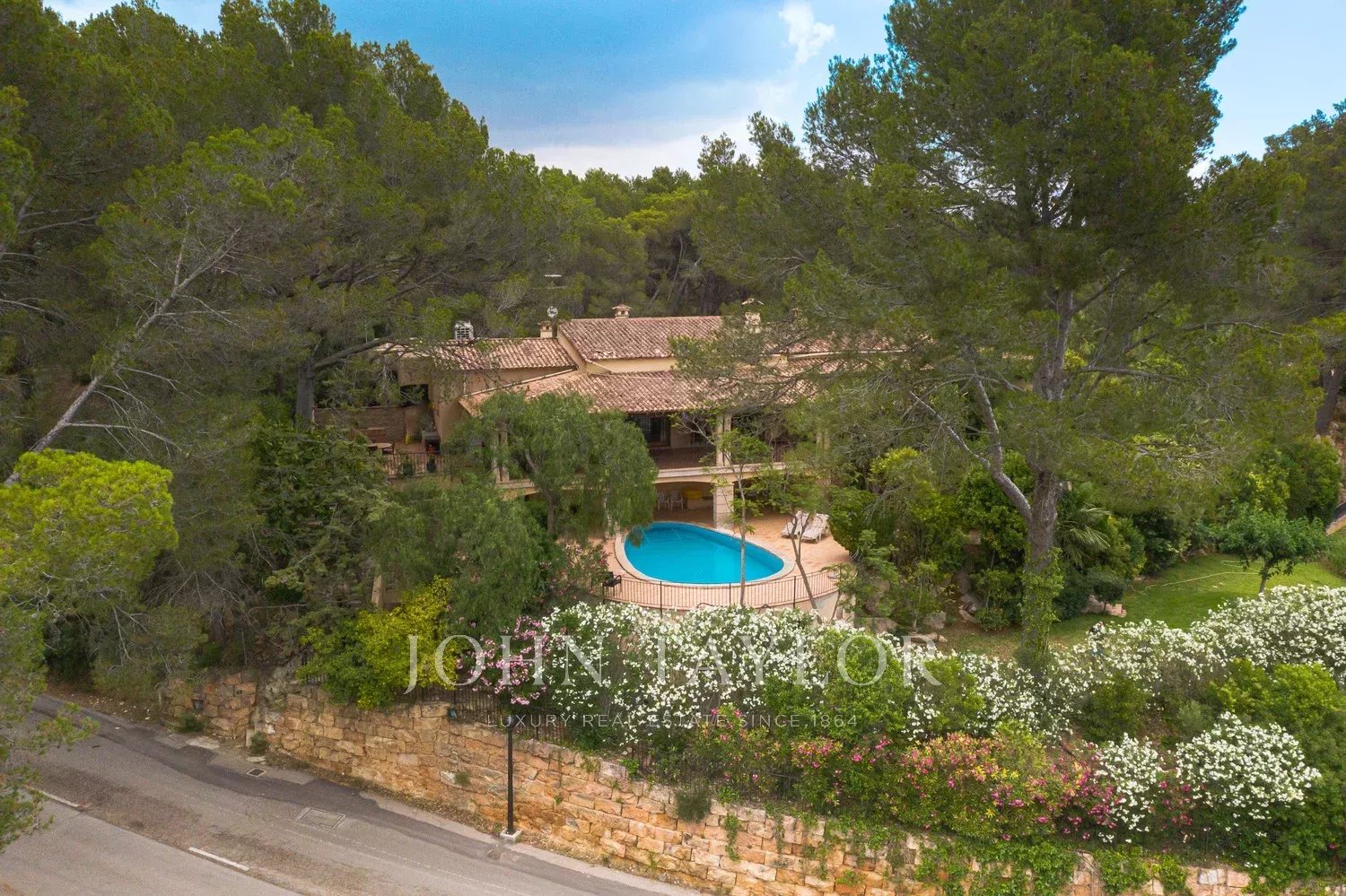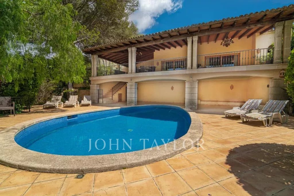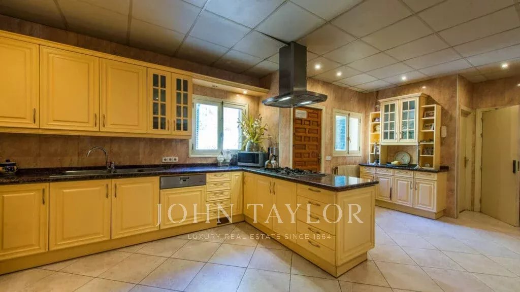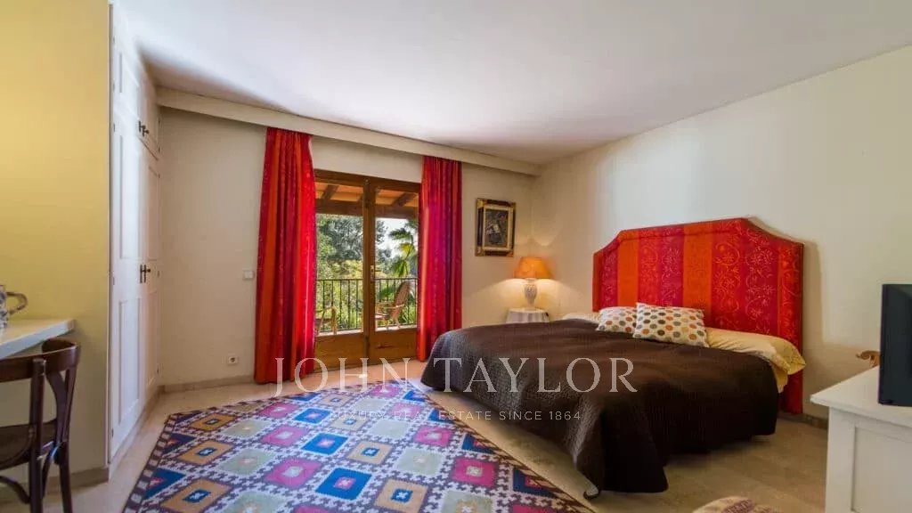 Orientação solar: Sul-Sudoeste A área útil de habitação de aproximadamente 530 m2 está distribuída entre a casa principal e a casa de hóspedes. Casa principal com um nível: área de entrada, sala de estar grande com lareira, sala de jantar, cozinha com canto de pequeno-almoço, casa de banho para hóspedes, 3 quartos grandes cada um com casa de banho e área de vestir em suite e 2 outros quartos com uma casa de banho, várias salas de serviço. Casa de hóspedes: quarto com casa de banho privativa e cozinha. Esta propriedade foi renovada em 1997. Boa qualidade, A/C reversível em todas as divisões, aquecimento central, chão em mármore. Belos terraços parcialmente cobertos. Piscina. Grandes áreas verdes e garagem dupla.