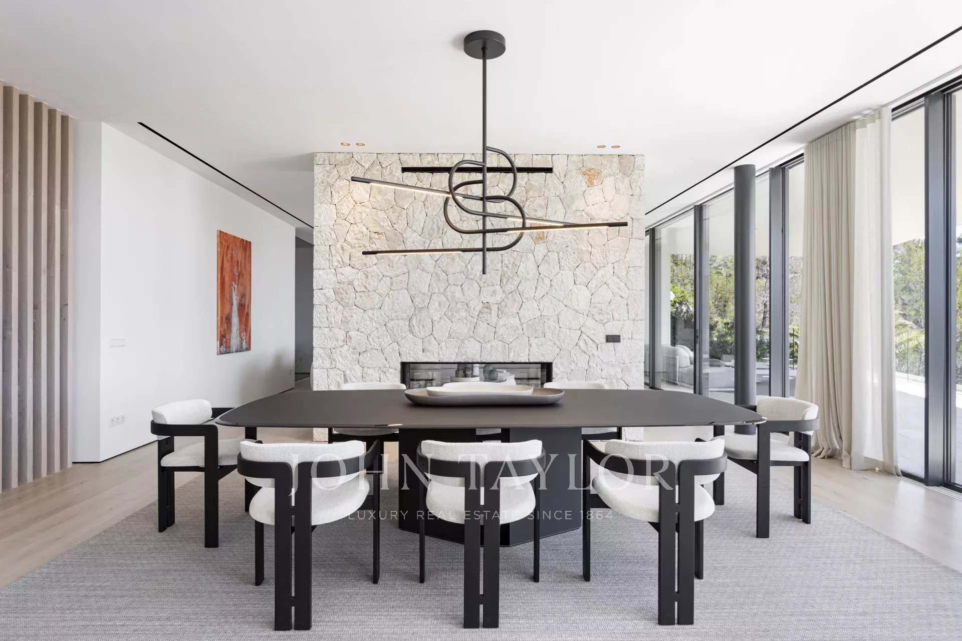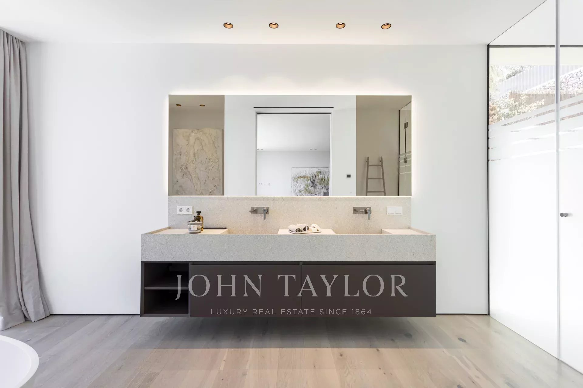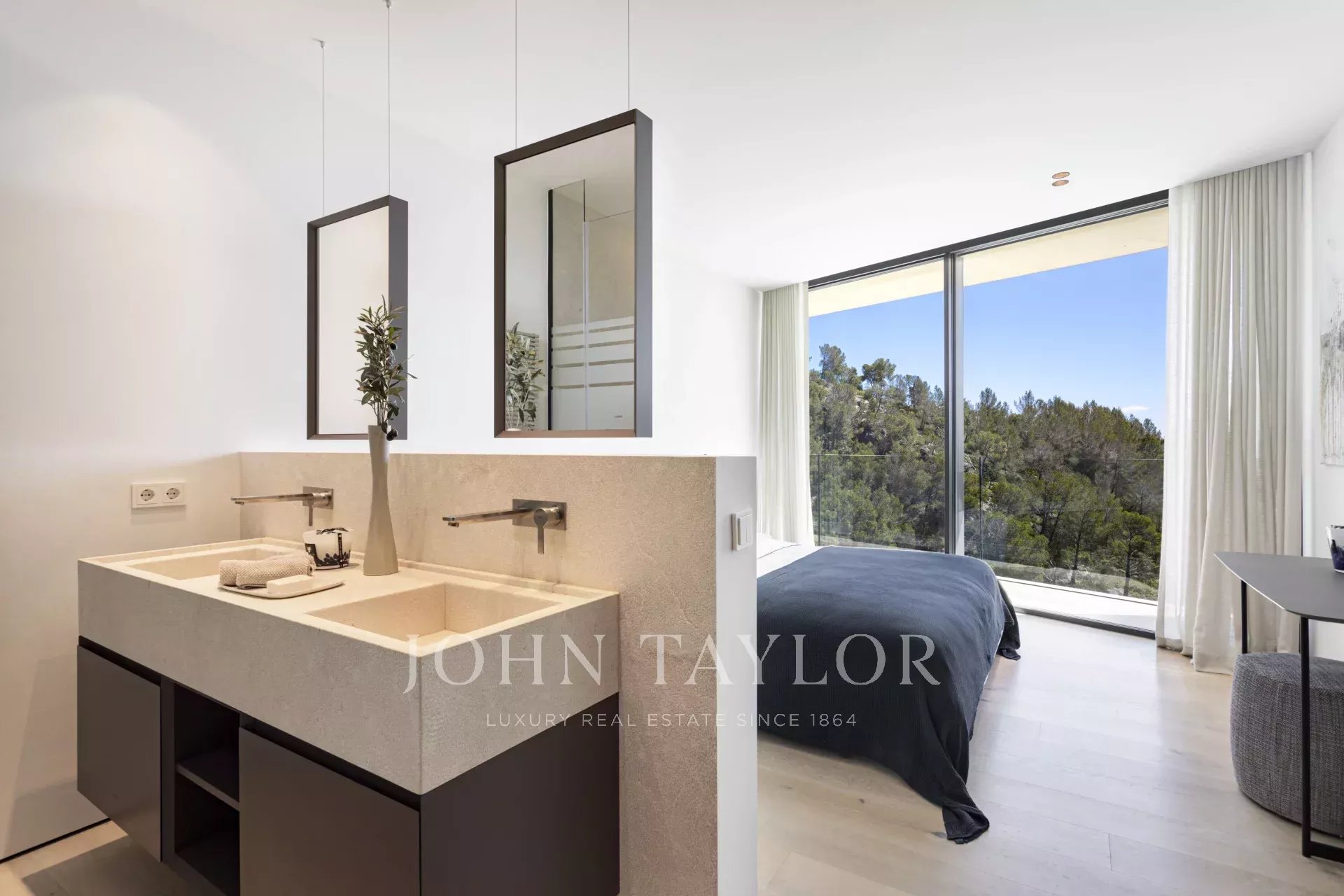 Apresentamos esta exclusiva moradia de luxo recentemente construída em Son Vida, uma das mais prestigiadas zonas residenciais de Palma de Maiorca. Concebida para o máximo conforto e estilo, esta propriedade única combina arquitetura contemporânea com materiais de alta qualidade e vistas espectaculares sobre o mar e a cidade. A partir da sua localização elevada, esta impressionante moradia oferece vistas panorâmicas que se estendem desde o azul do Mediterrâneo até ao horizonte de Palma. A sua sala de estar em plano aberto com lareira integra-se harmoniosamente com uma cozinha e sala de jantar em plano aberto, perfeita para reuniões e ocasiões especiais. Para além disso, existe uma kitchenette funcional que proporciona espaço de armazenamento e trabalho adicional. A área de bem-estar inclui uma elegante sauna e uma área polivalente ideal para um ginásio privado, fazendo desta moradia um verdadeiro refúgio de relaxamento e conforto. O jardim paisagístico bem cuidado rodeia uma grande piscina privada, perfeita para desfrutar do clima de Maiorca durante todo o ano. A moradia tem 5 quartos espaçosos e 6 casas de banho completas, todas concebidas com um estilo sofisticado e acabamentos de alta qualidade. Existe um apartamento separado para hóspedes com a sua própria sala de estar, cozinha, quarto e casa de banho: o equilíbrio perfeito entre privacidade e hospitalidade. A propriedade inclui um deslumbrante terraço no telhado com vistas panorâmicas e a possibilidade de instalar uma cozinha exterior, ideal para refeições ao ar livre ao pôr do sol. Existe também um elevador e um monta-cargas para facilitar o acesso entre pisos. É vendida totalmente mobilada com mobiliário de design da Terraza Balear, conhecida pela sua elegância e conforto. A moradia dispõe de uma garagem privada para 2 veículos, mais estacionamento exterior adicional, garantindo espaço suficiente para os residentes e convidados.