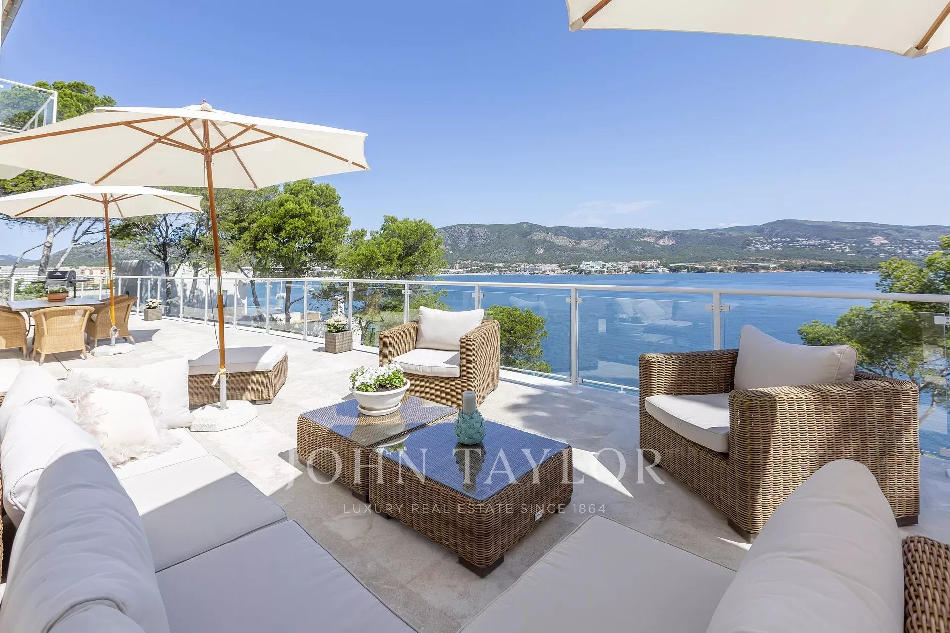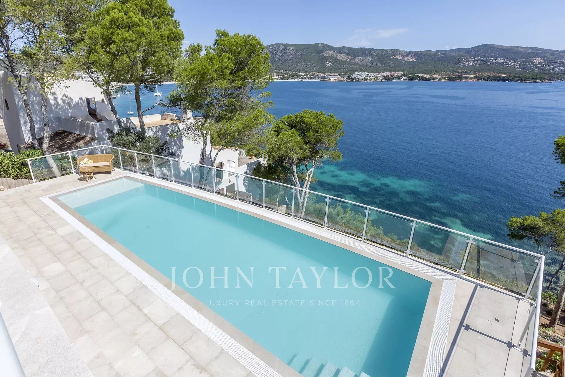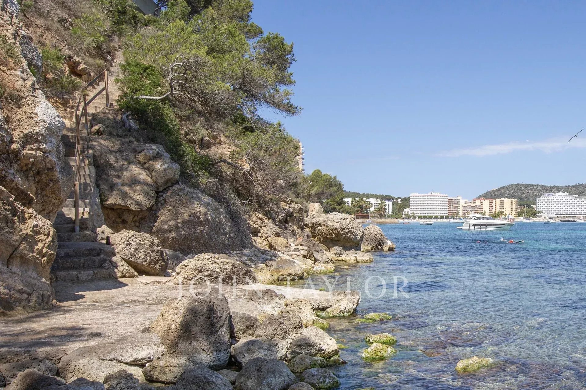 Moradia de luxo com acesso direto ao mar em Palmanova. Esta moradia completamente renovada em 2020 está localizada em frente ao mar em Palmanova e tem um confortável acesso privado ao mar, para que possa desfrutar de um mergulho a qualquer hora do dia, as vistas são espectaculares não só durante o dia, quando pode ver os navios a passar, mas também à noite, quando toda a costa em torno da Baía é iluminada. A casa está distribuída por 2 pisos e oferece um grande hall, uma sala de estar com cozinha com acesso ao terraço, 4 quartos e 4 casas de banho. Na cave há um apartamento de hóspedes completamente independente e há espaço suficiente para fazer um ginásio, uma sala de cinema, uma área de spa, etc. Uma bela piscina e uma garagem completam esta maravilhosa propriedade num local tranquilo com muita privacidade junto a uma área verde.