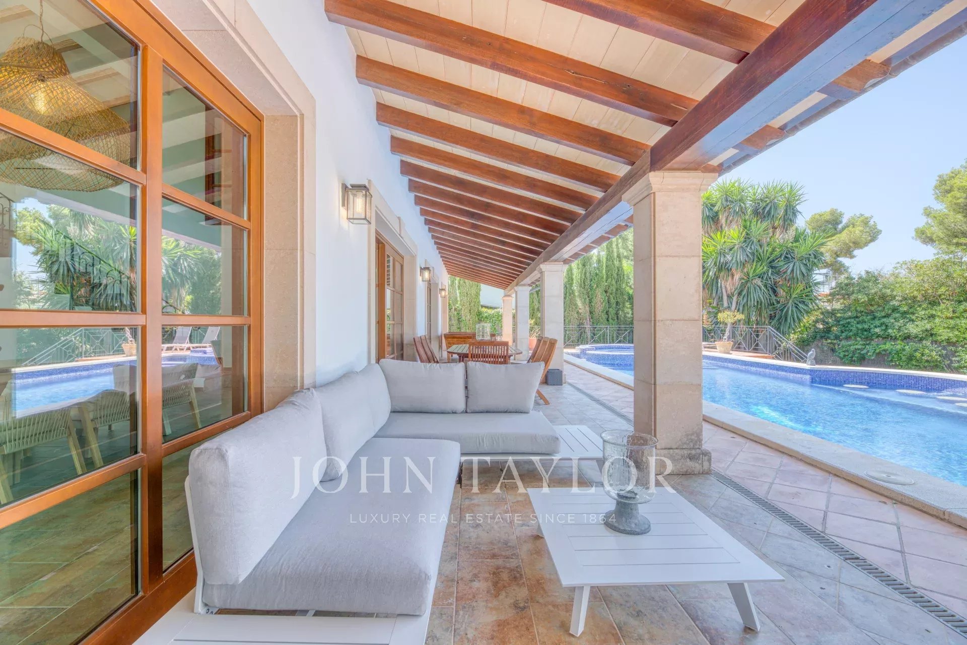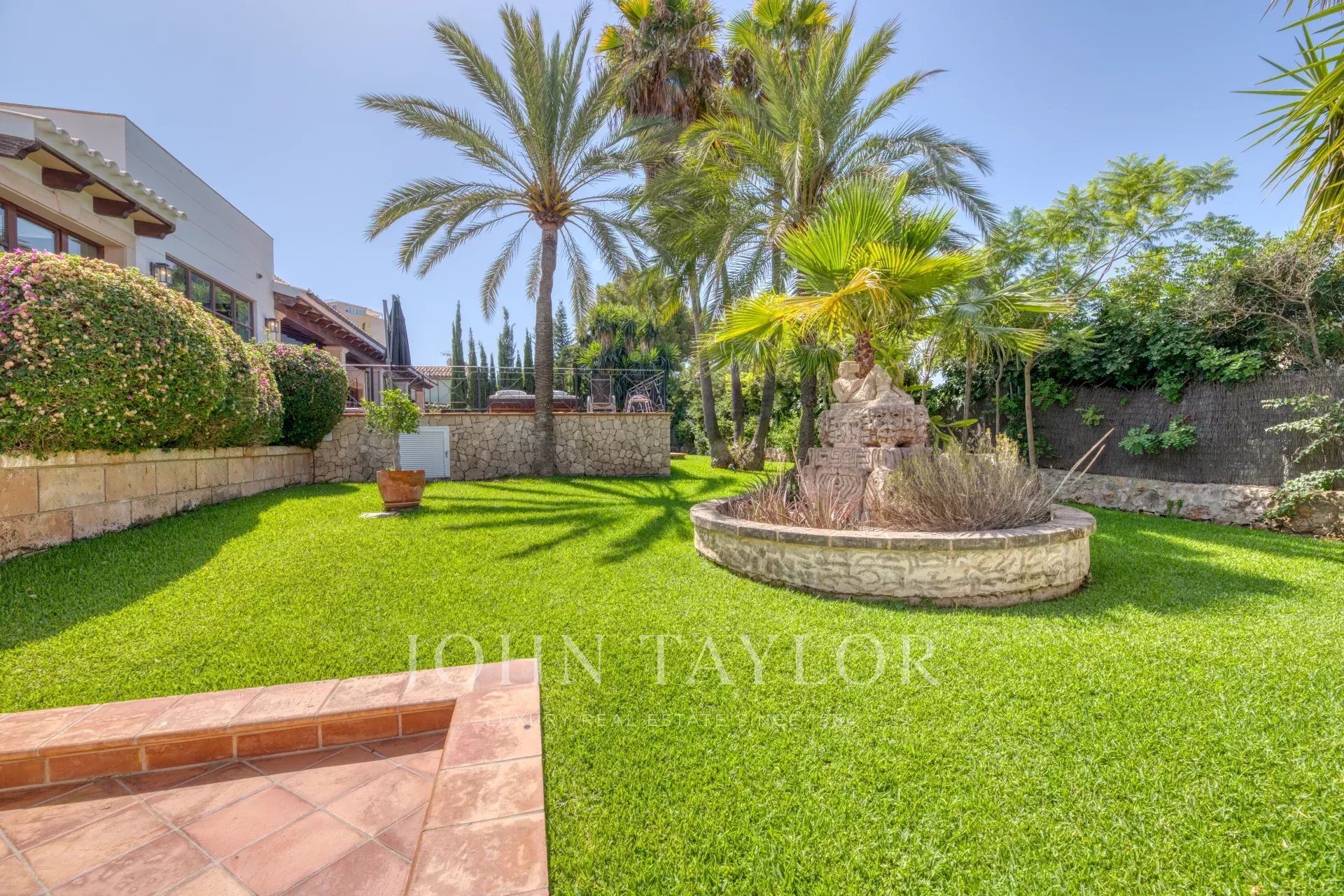 O exterior é igualmente impressionante, com um grande jardim plano com sistema de irrigação, terraços ensolarados e uma piscina que o convida a desfrutar do clima mediterrânico.