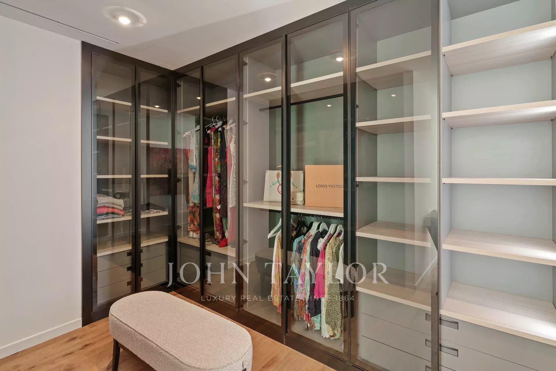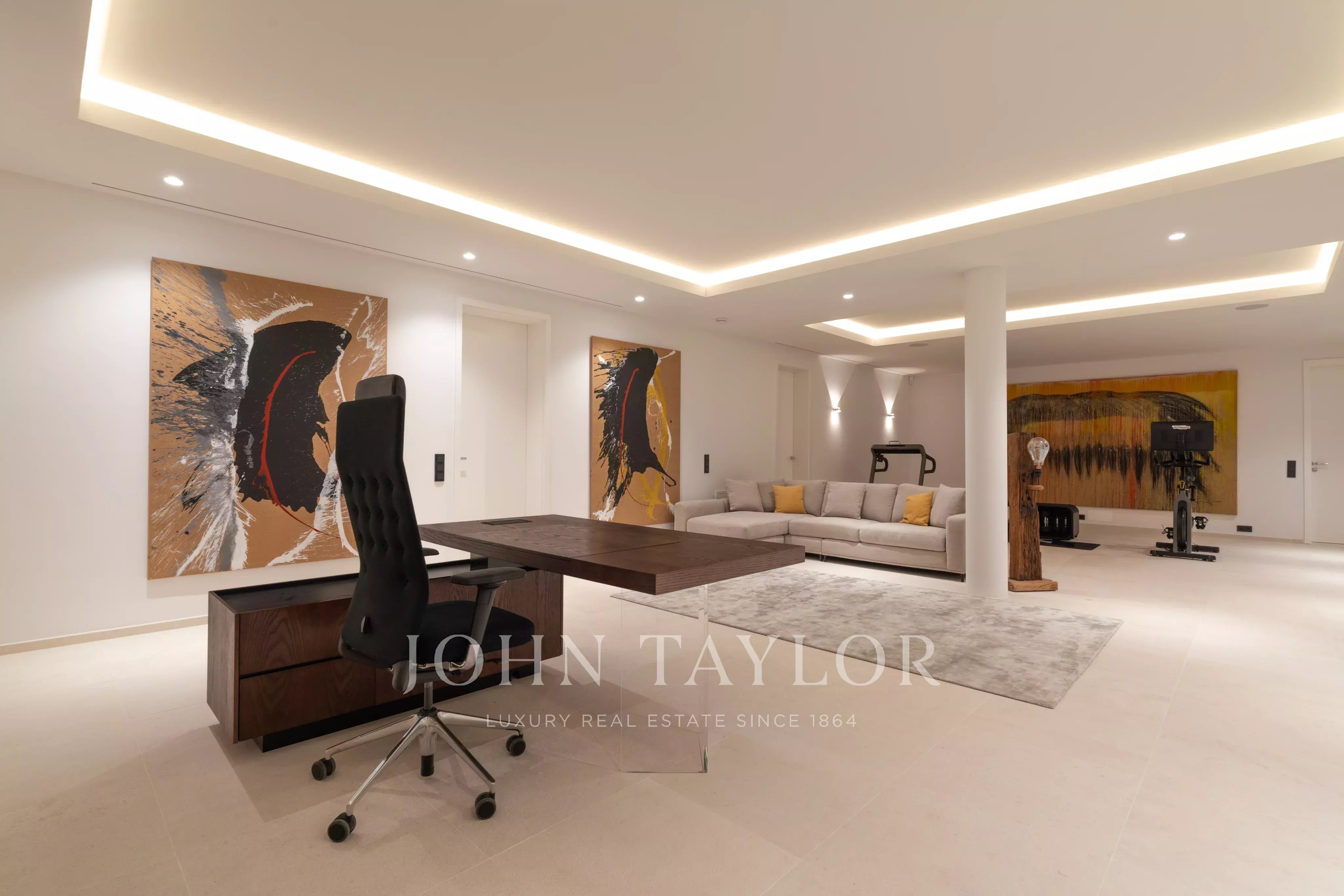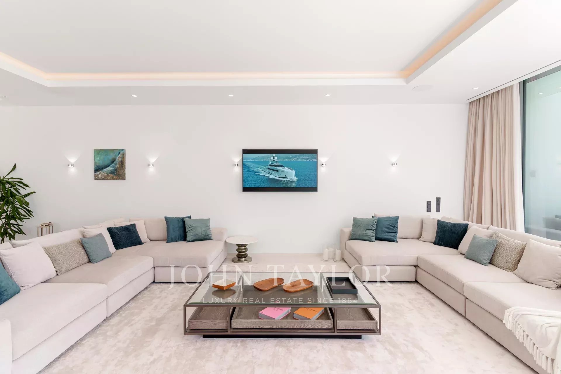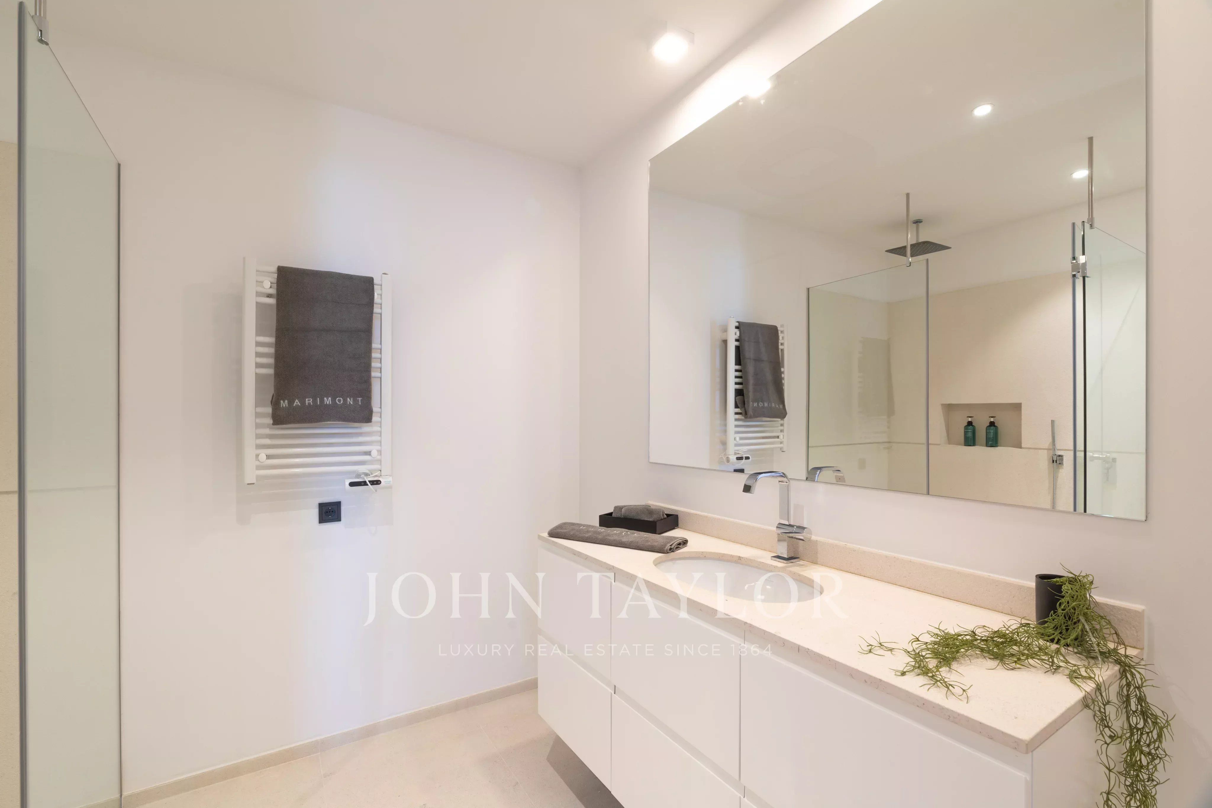 Com uma localização excecional no topo de Cala Llamp, esta impressionante e moderna villa funde-se harmoniosamente na encosta da montanha e oferece vistas únicas e deslumbrantes sobre o mar. A vista estende-se desde a espetacular baía com as suas maravilhosas águas azuis até à península de La Mola e ao mar aberto ao fundo. A moradia oferece um luxo generoso, com 6 lugares de estacionamento subterrâneos e 6 quartos numa área habitacional de 691 metros quadrados, implantada num terreno de 1.038 metros quadrados. A arquitetura impressionante combina estruturas em consola com frescos rebocados a branco e uma fachada de vidro minimalista perfeitamente trabalhada. O edifício integra-se perfeitamente na envolvente natural graças à combinação clássica de pedra calcária e paredes de pedra natural maiorquina, muito bem trabalhadas. No fascinante design interior, foram utilizados os melhores materiais naturais para criar um equilíbrio perfeito entre luz e sombra, garantindo uma atmosfera confortável e agradável. A moradia foi concebida com grande atenção aos pormenores para maximizar as deslumbrantes vistas panorâmicas das principais divisões e terraços. Devido à sua orientação a sudoeste, a moradia goza de sol durante todo o dia e oferece os mais incríveis pores-do-sol, onde se pode ver a silhueta da ilha vizinha de Ibiza. A orientação cuidadosa do edifício, a elevação, a distribuição estudada e a integração na paisagem criam um ambiente perfeito para desfrutar do Mediterrâneo e da privacidade absoluta ao mesmo tempo. A propriedade tem uma excelente localização com vista para a baía de Cala Llamp, oferecendo paz, tranquilidade, segurança e privacidade neste cenário exclusivo. O popular Gran Folies Beach Club fica apenas a alguns minutos a pé e, nas imediações, existem inúmeros cafés e restaurantes interessantes e de alta qualidade no porto e na marina. Descubra o extraordinário estilo de vida desta requintada moradia. Por favor, contacte-nos para mais informações e para marcar uma visita.