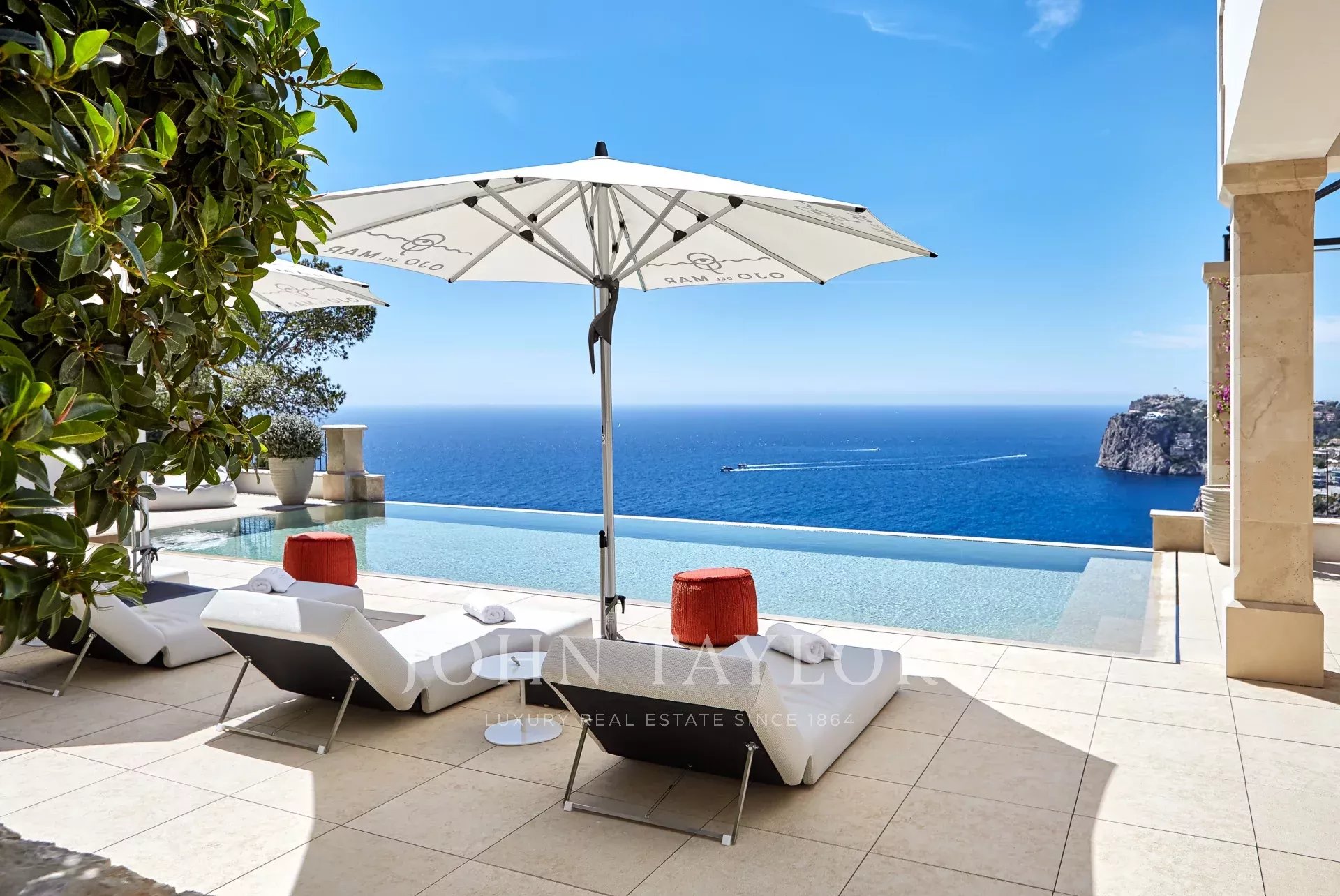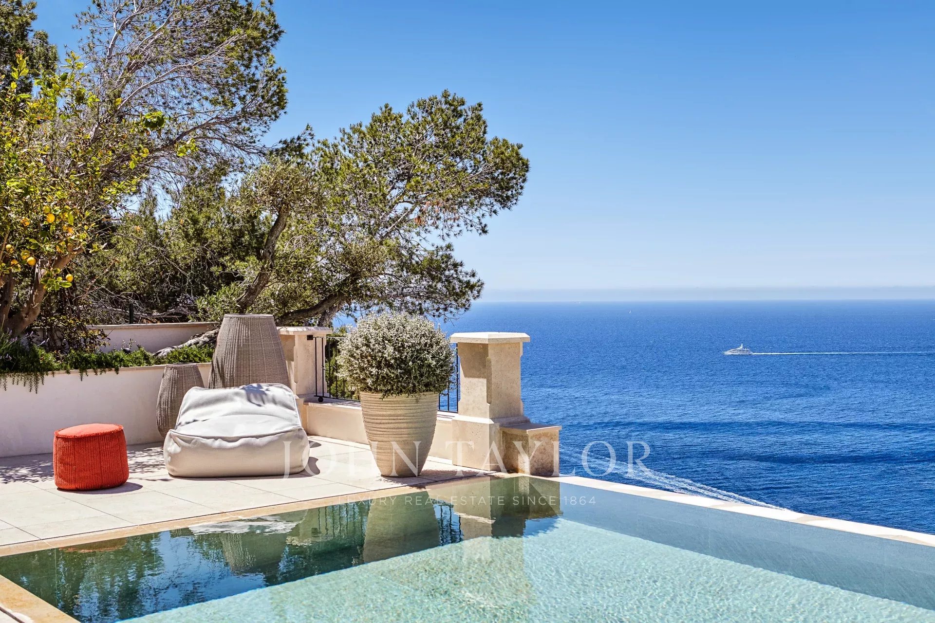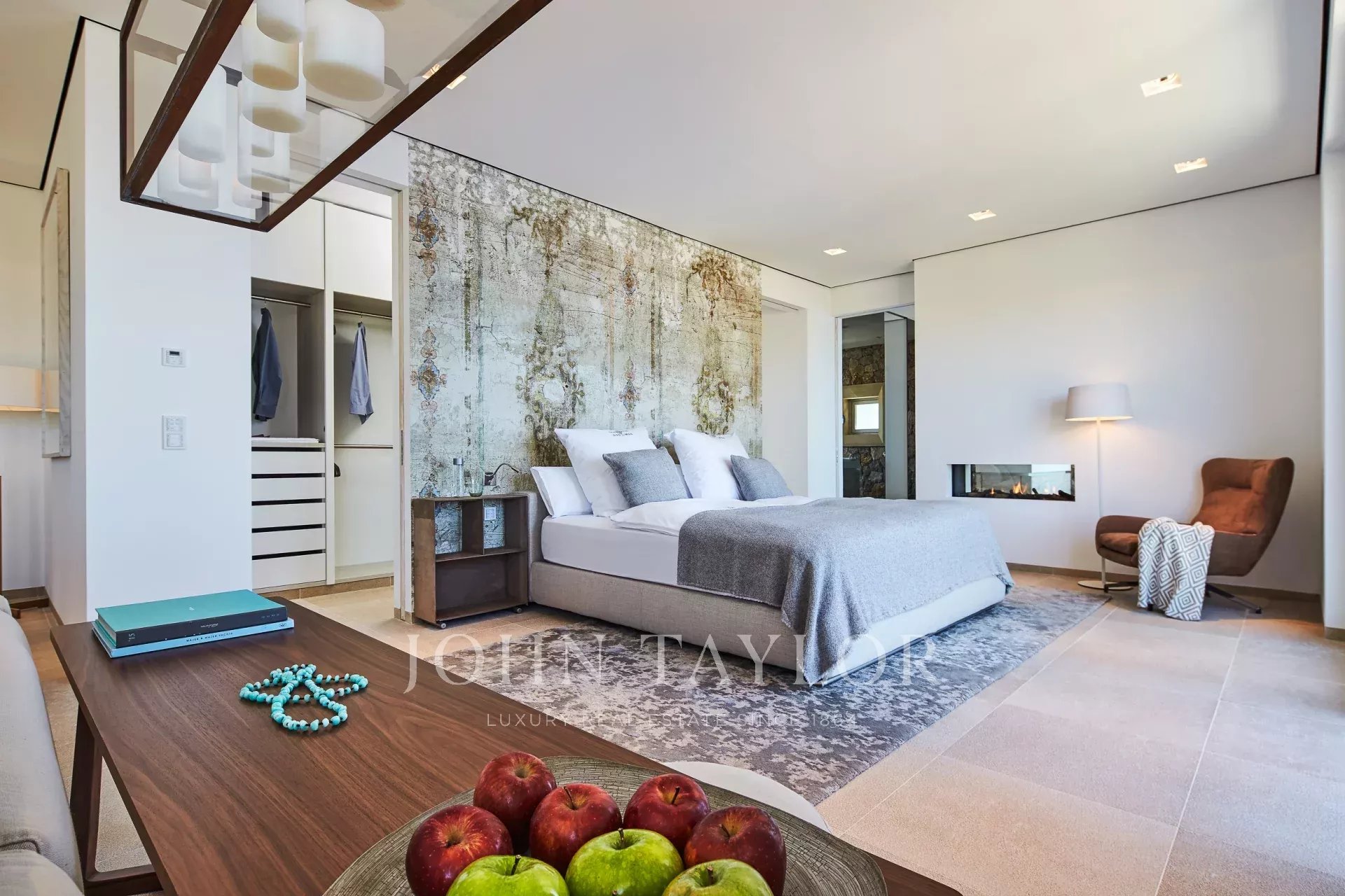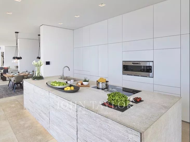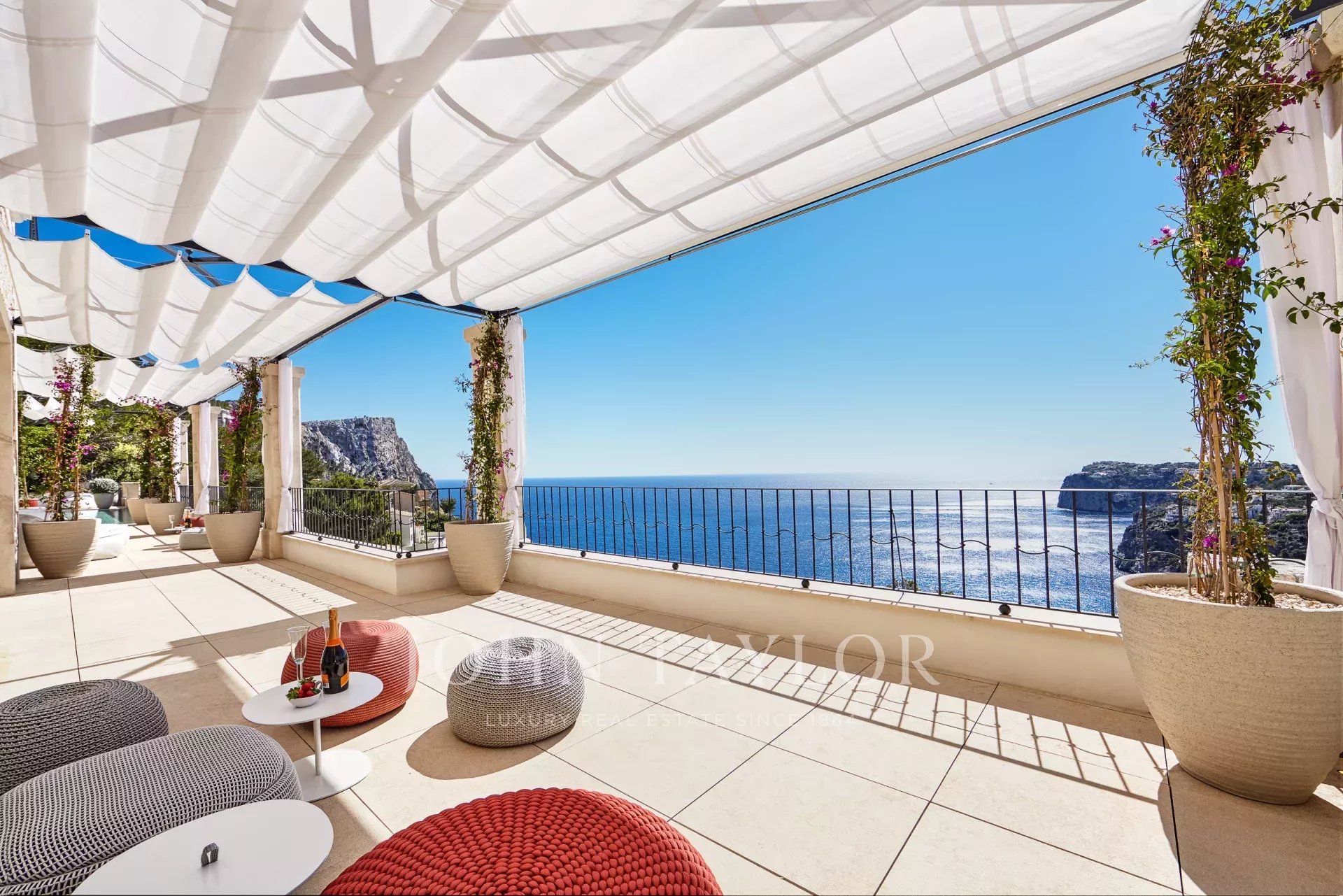 Esta luxuosa propriedade está situada num local muito procurado acima da baía de Cala Llamp e oferece vistas panorâmicas deslumbrantes sobre o mar. A moradia tem uma área de construção de 700m2 em três níveis. No rés do chão, existe um elegante hall de entrada que conduz à sala de televisão, à sala de estar, à sala de jantar e à cozinha. A espaçosa área de estar estende-se através das pérgulas para os terraços, onde existem duas cozinhas exteriores com grelhadores de churrasco e uma grande mesa de jantar, bem como uma casa de banho. Outro destaque é a piscina infinita de 60m2. A área exterior foi concebida para permitir desfrutar perfeitamente do clima mediterrânico. O piso superior pode ser alcançado através do elevador ou da escadaria elegantemente iluminada, onde se encontra a área de dormir. Esta é composta por dois quartos com casas de banho privativas e uma confortável suite principal. Esta é composta por uma antecâmara, uma área de dormir espaçosa e uma luxuosa casa de banho com uma banheira na janela saliente. Na cave, para além da garagem de 100m2, que oferece espaço para pelo menos 5 carros, há uma bodega, uma área de fitness com sauna, um cinema em casa, um quarto de serviço com casa de banho privativa, mais uma casa de banho, uma lavandaria, uma despensa e uma arrecadação. A propriedade será vendida incluindo a mobília.