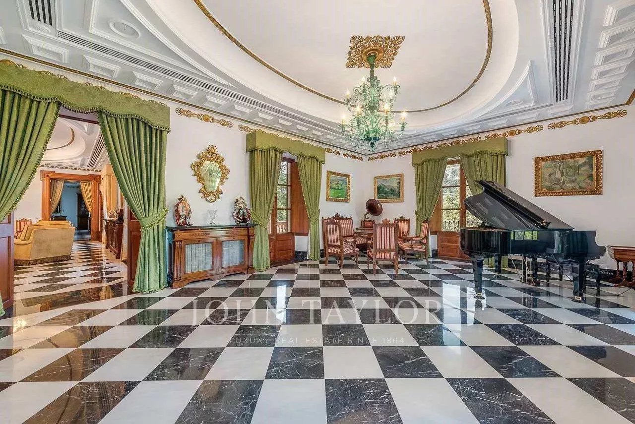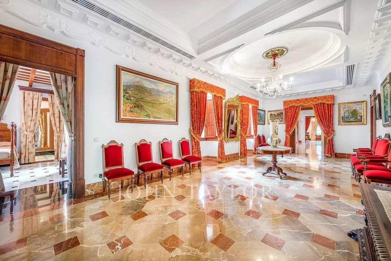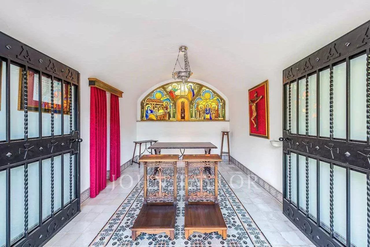 A mansão, com uma área de construção de cerca de 2.640 m², inclui uma residência principal e um anexo que pode ser utilizado para alojamento de hóspedes ou de pessoal. A residência principal combina três estilos de vida distintos numa só casa: uma área palaciana, ideal para grandes celebrações; uma área rústica para desfrutar da vida no campo; e uma área particularmente confortável e acolhedora para a vida quotidiana. A mansão está totalmente restaurada e equipada com ar condicionado, aquecimento, elevador, garagem interior para 7 carros (mais estacionamento exterior adicional), piscina, campo de ténis, acesso à Internet de alta velocidade (fibra ótica), etc. Junto à mansão encontra-se a capela privada da propriedade.