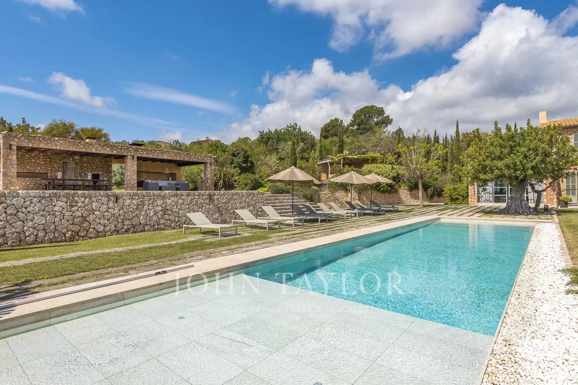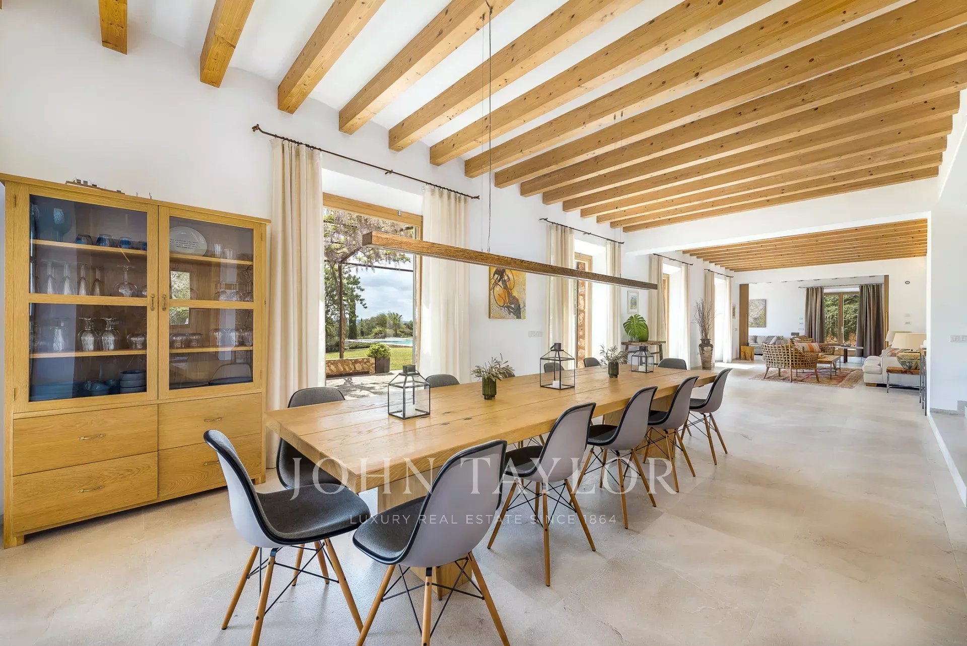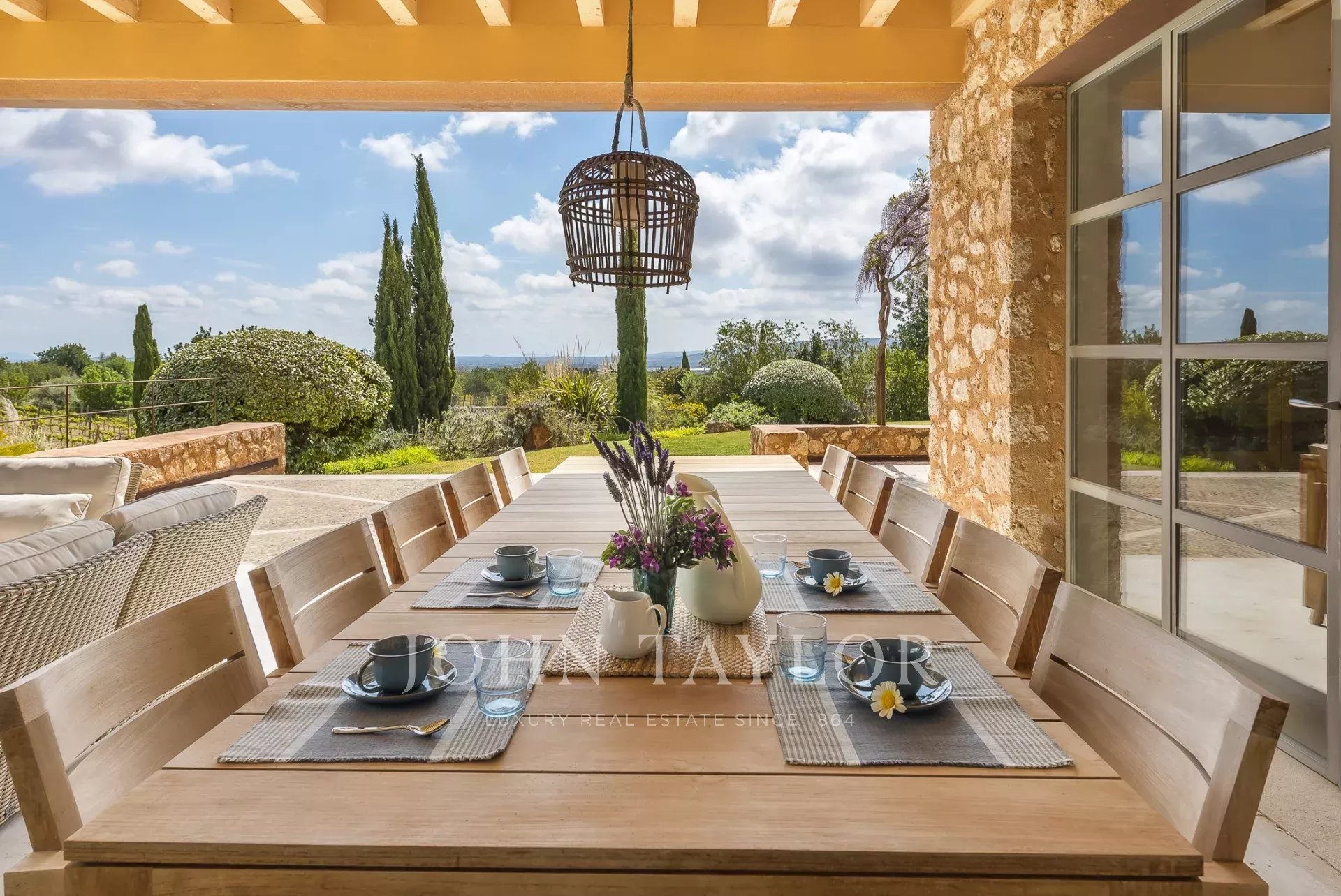 No exterior, a piscina de 15 x 5 m é complementada por um terraço espaçoso com uma cozinha de verão, uma área de churrasco e uma casa de banho exterior - perfeita para entretenimento. Esta área, conhecida como "Es Mirador" (O Miradouro), oferece vistas panorâmicas de cortar a respiração de toda a ilha.