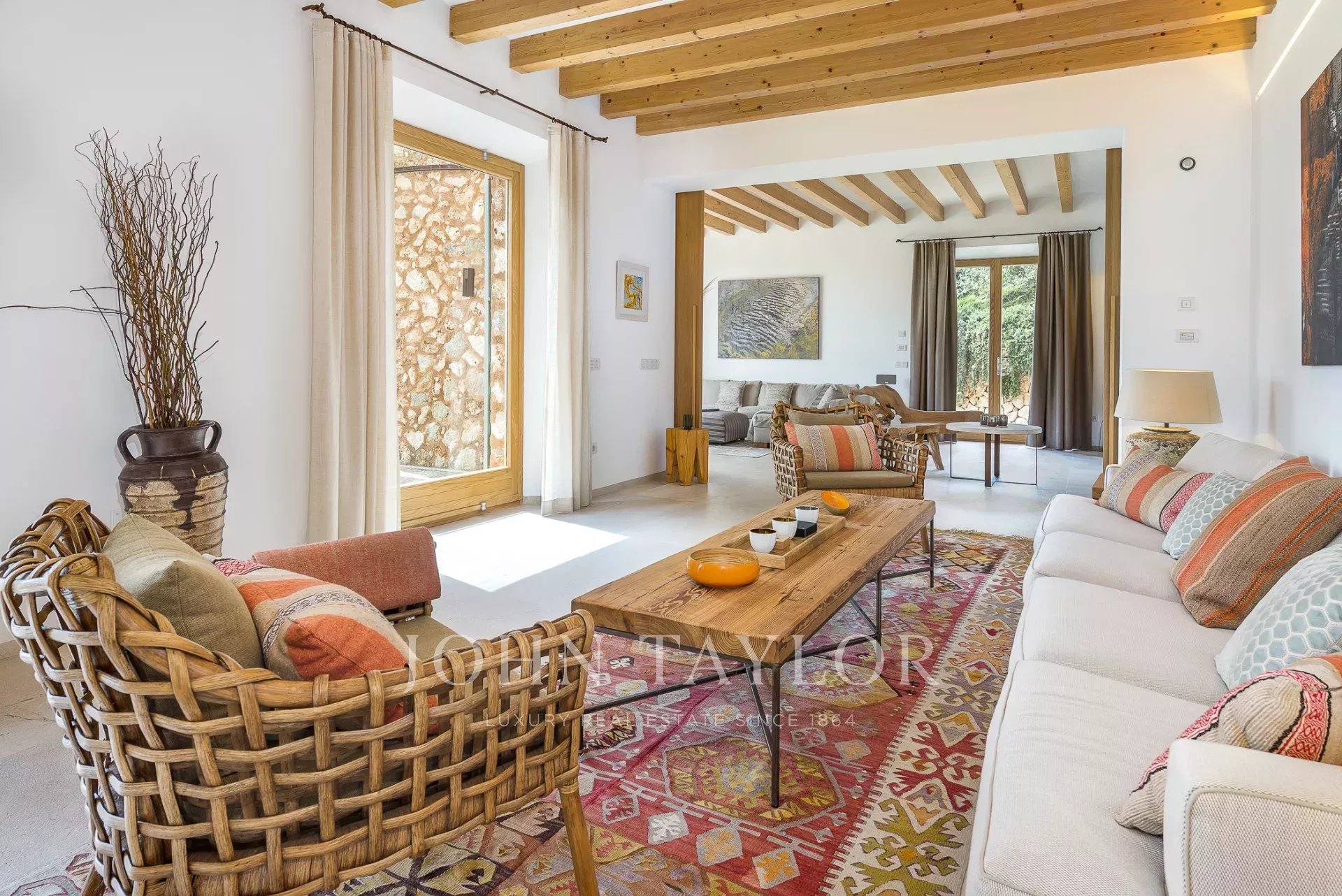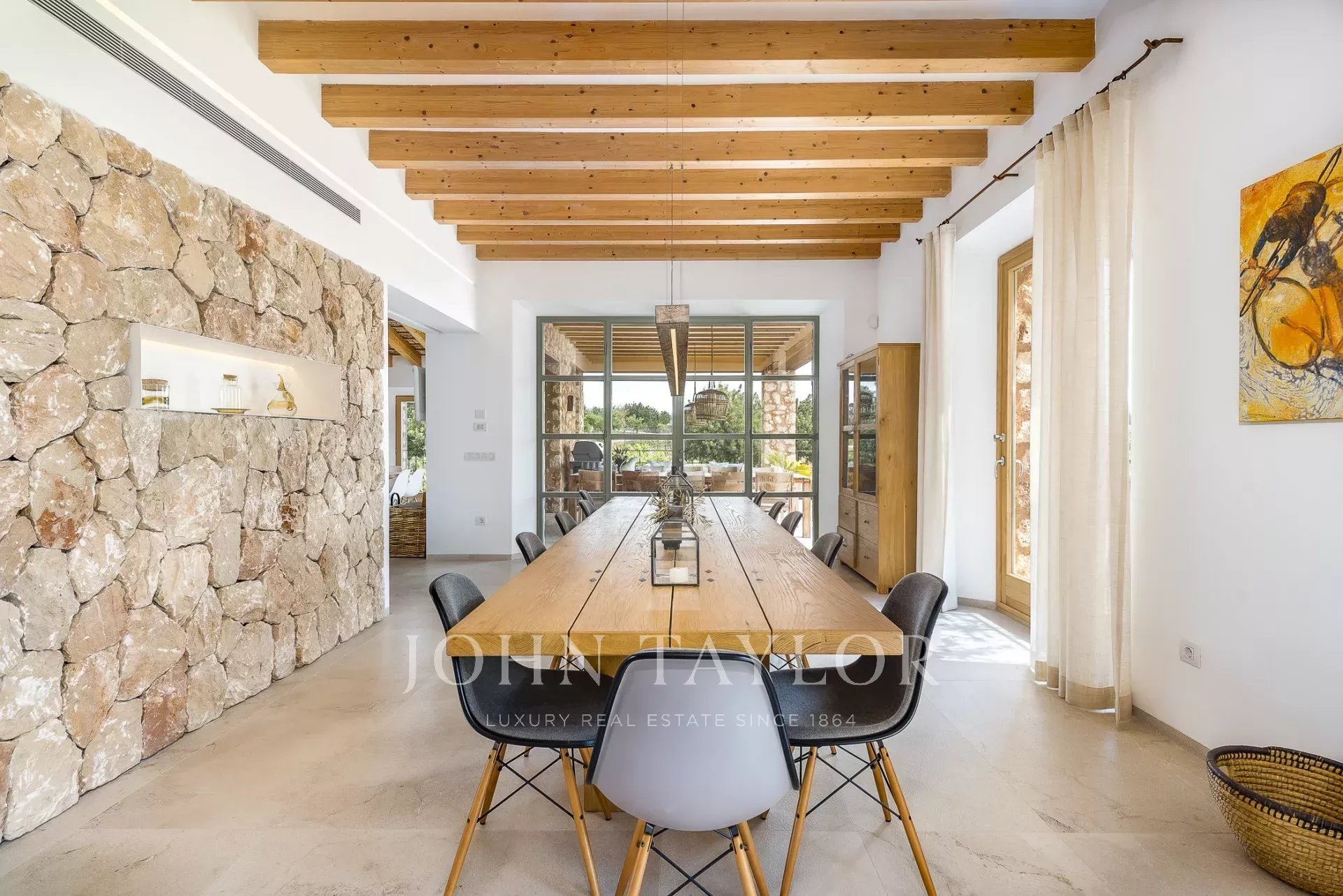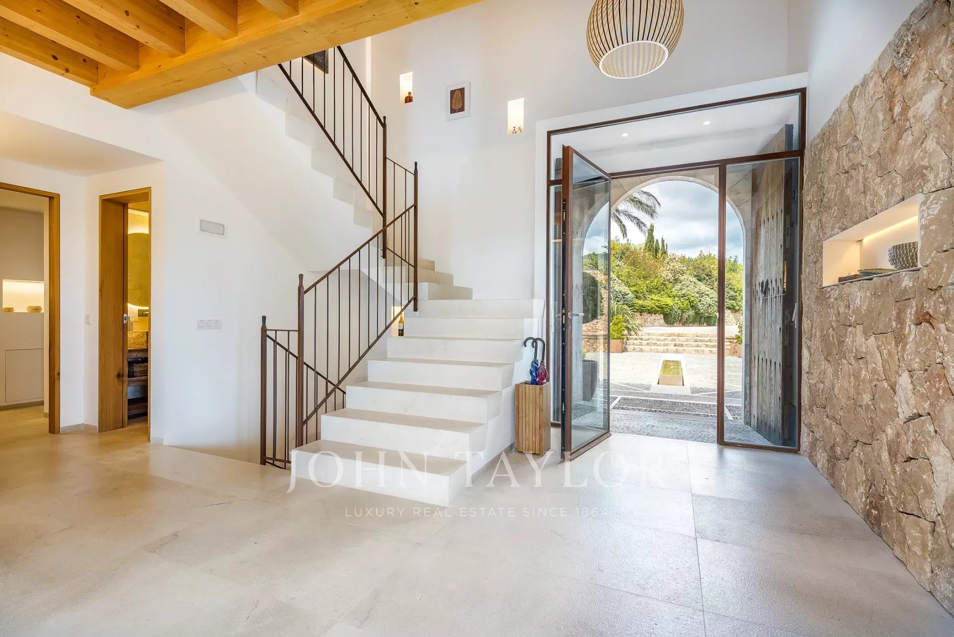 Esta deslumbrante moradia moderna em Maiorca combina a elegância contemporânea com o charme tradicional mediterrânico. Concebida com interiores espaçosos, pavimentos em pedra natural, acabamentos em madeira de alta qualidade e janelas do chão ao teto, a casa oferece uma experiência de vida sem paralelo.