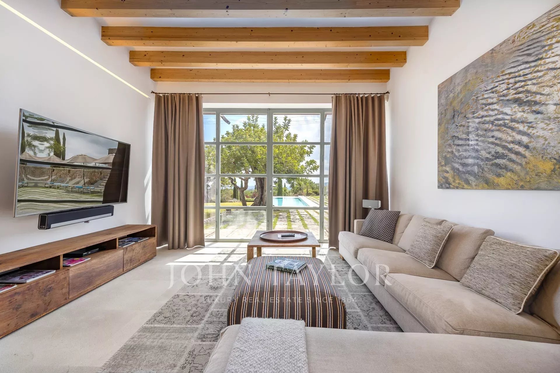 No piso superior, encontrará três suites elegantes, cada uma com um terraço privado, incluindo a suite principal com uma lareira e uma área de estar. O nível da cave oferece um spa privado com sauna, uma adega de vinhos, um ginásio e uma suite de hóspedes adicional com casa de banho privativa.