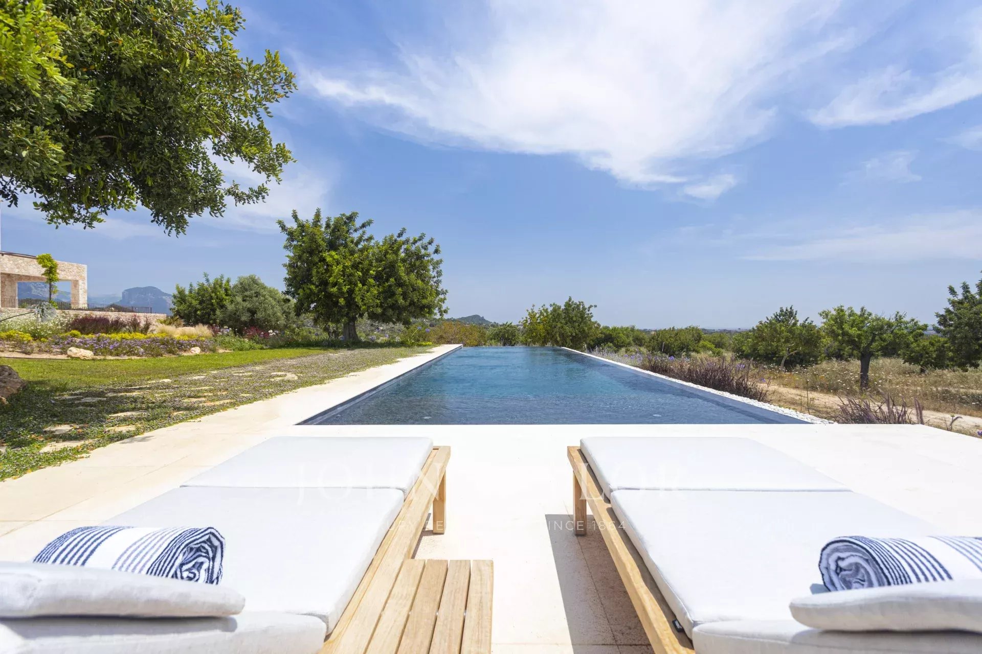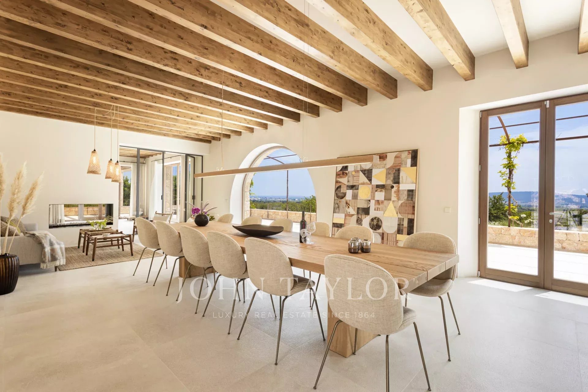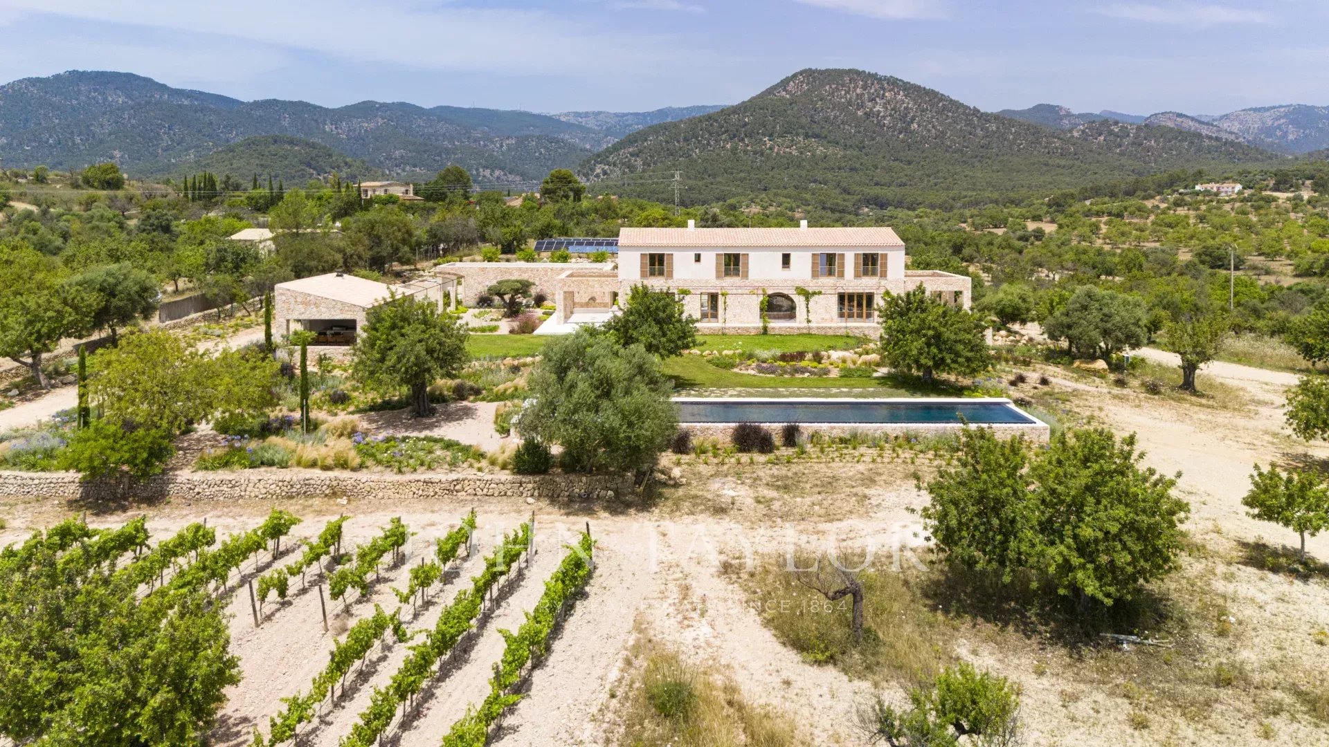 Situada num terreno espaçoso com vistas panorâmicas deslumbrantes sobre a sua vinha privada, o campo aberto e as majestosas montanhas Tramuntana, "Son Blai" é ideal para quem procura privacidade, natureza e sofisticação refinada - apenas a uma curta distância de carro de Palma de Maiorca.