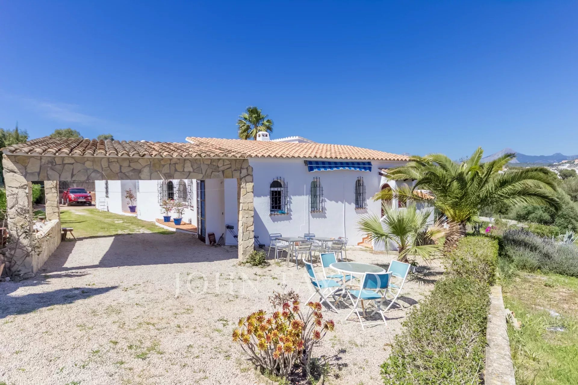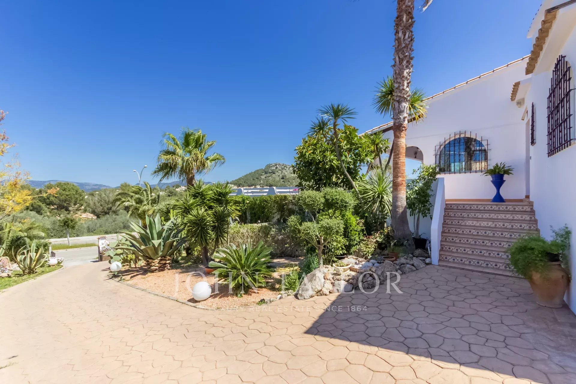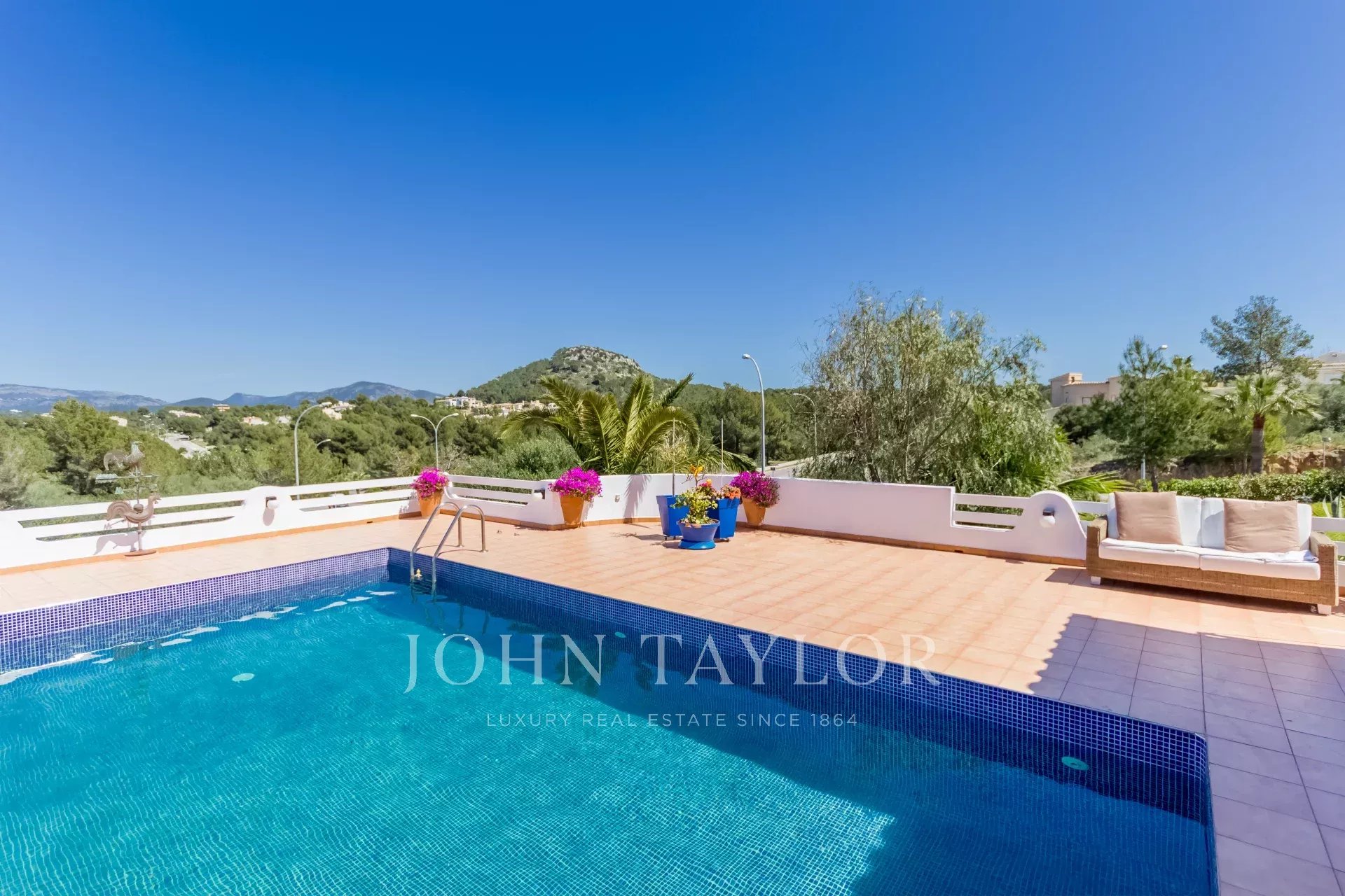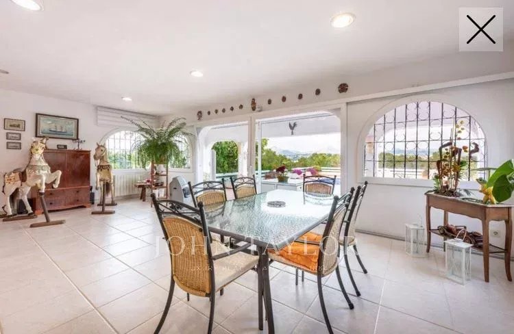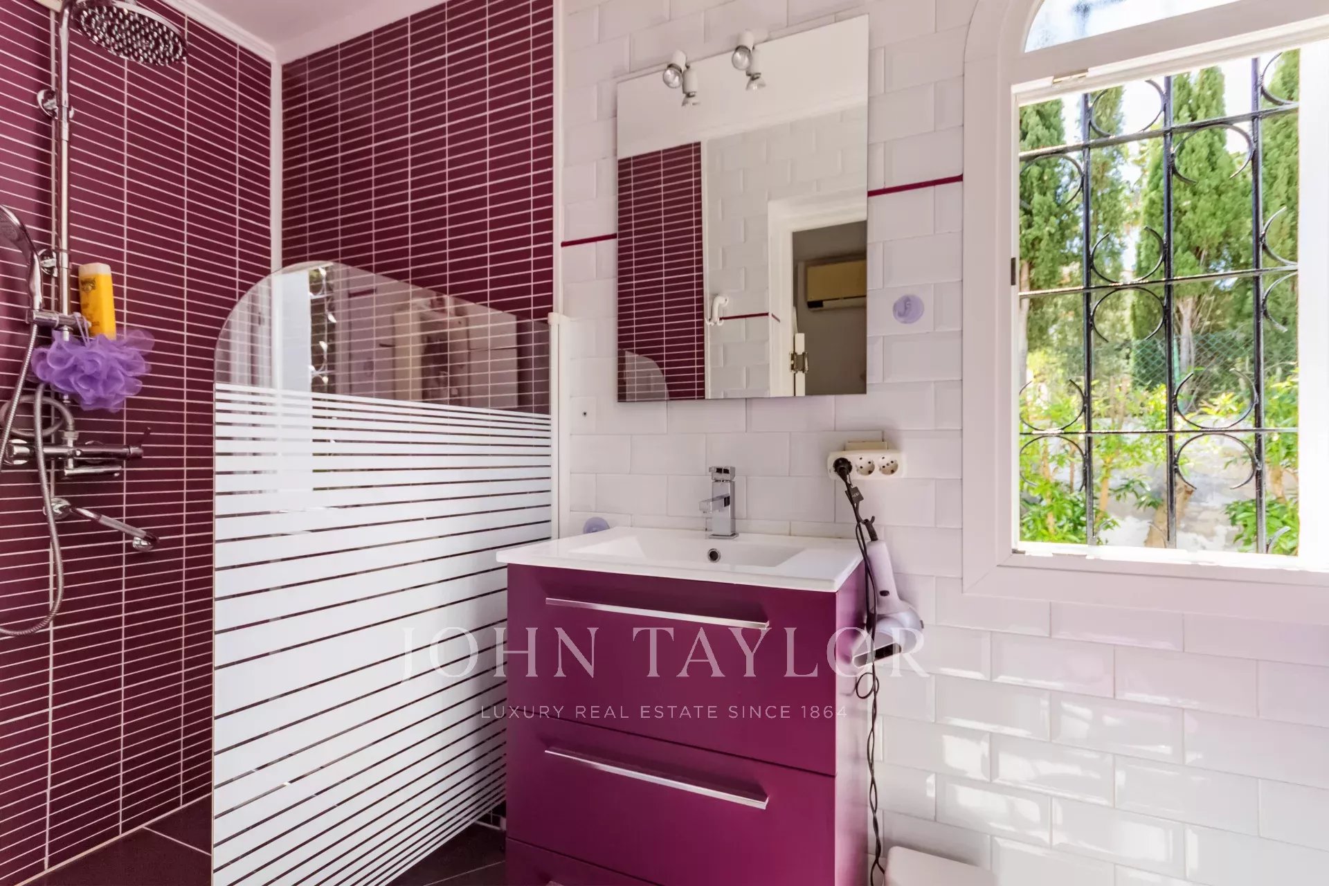 Esta propriedade familiar única, sem falta de espaço interior e exterior, foi construída em 1985 e está situada na zona central e procurada de Nova Santa Ponsa. Com um pequeno restauro, esta propriedade representa uma excelente oportunidade para viver num só nível. A moradia é composta por 3 a 4 quartos com roupeiros embutidos e 4 casas de banho, das quais 3 são em suite. A propriedade situa-se num terreno de aproximadamente 1370 m2 com uma área de habitação de quase 310 m2, o que oferece espaço suficiente para toda a família. A espaçosa e bonita sala de estar e jantar foi construída em forma circular, atingindo uma grande área de aprox. 135 m2 que dá acesso aos quartos, à cozinha, ao terraço e à área do terraço com a piscina, de onde se pode desfrutar de vistas espectaculares para o mar e para as montanhas. Na parte inferior da moradia há um quarto a ser reformado que poderia ser usado como um apartamento de hóspedes, se desejado. Existe também a possibilidade de ampliar a casa - piso superior - com um projeto aceite pelas autoridades.