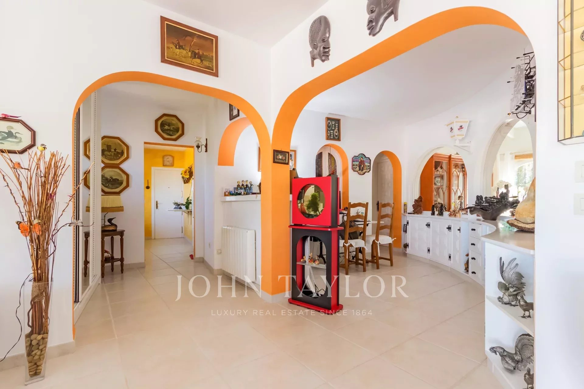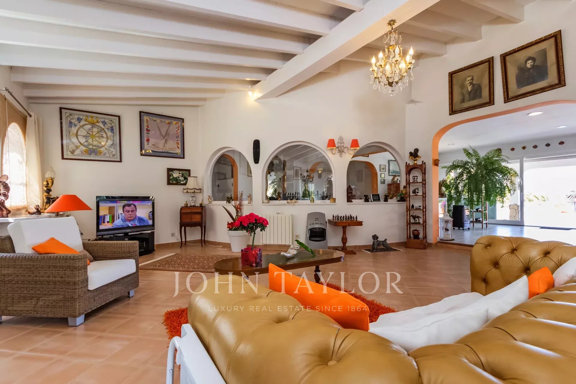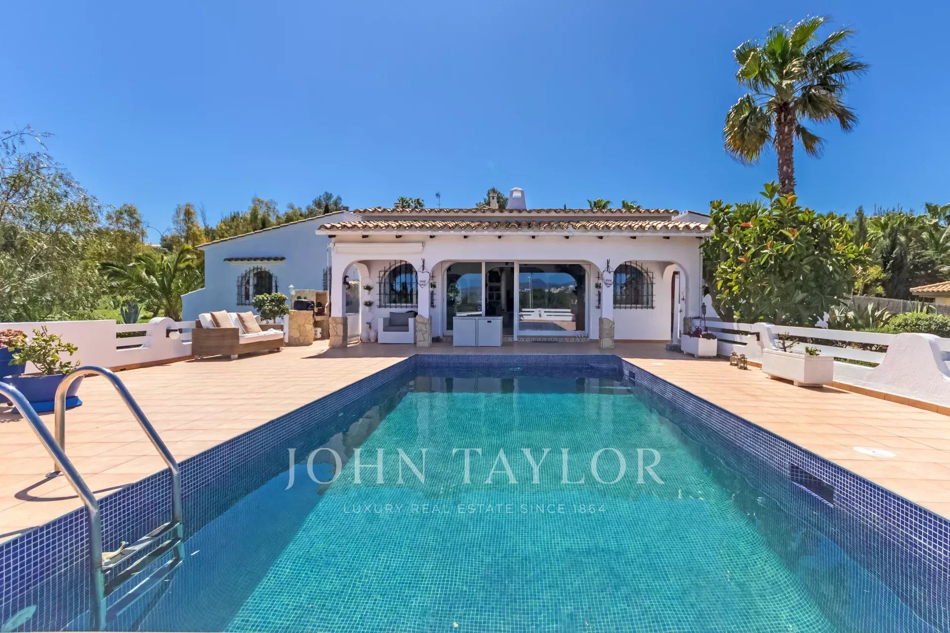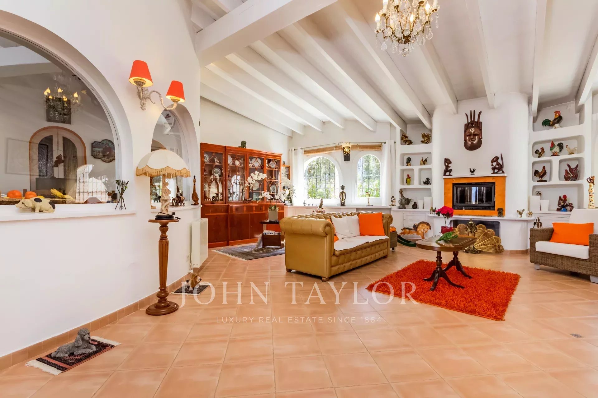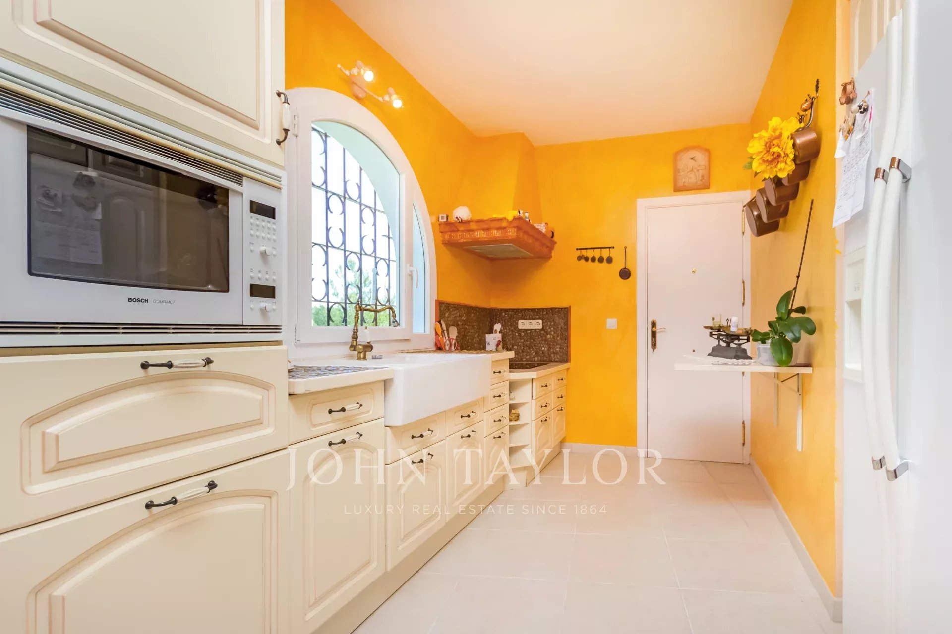 Esta propriedade familiar única, sem falta de espaço interior e exterior, foi construída em 1985 e está situada na zona central e procurada de Nova Santa Ponsa. Com um pequeno restauro, esta propriedade representa uma excelente oportunidade para viver num só nível. A moradia é composta por 3 a 4 quartos com roupeiros embutidos e 4 casas de banho, das quais 3 são em suite. A propriedade situa-se num terreno de aproximadamente 1370 m2 com uma área de habitação de quase 310 m2, o que oferece espaço suficiente para toda a família. A espaçosa e bonita sala de estar e jantar foi construída em forma circular, atingindo uma grande área de aprox. 135 m2 que dá acesso aos quartos, à cozinha, ao terraço e à área do terraço com a piscina, de onde se pode desfrutar de vistas espectaculares para o mar e para as montanhas. Na parte inferior da moradia há um quarto a ser reformado que poderia ser usado como um apartamento de hóspedes, se desejado. Existe também a possibilidade de ampliar a casa - piso superior - com um projeto aceite pelas autoridades.