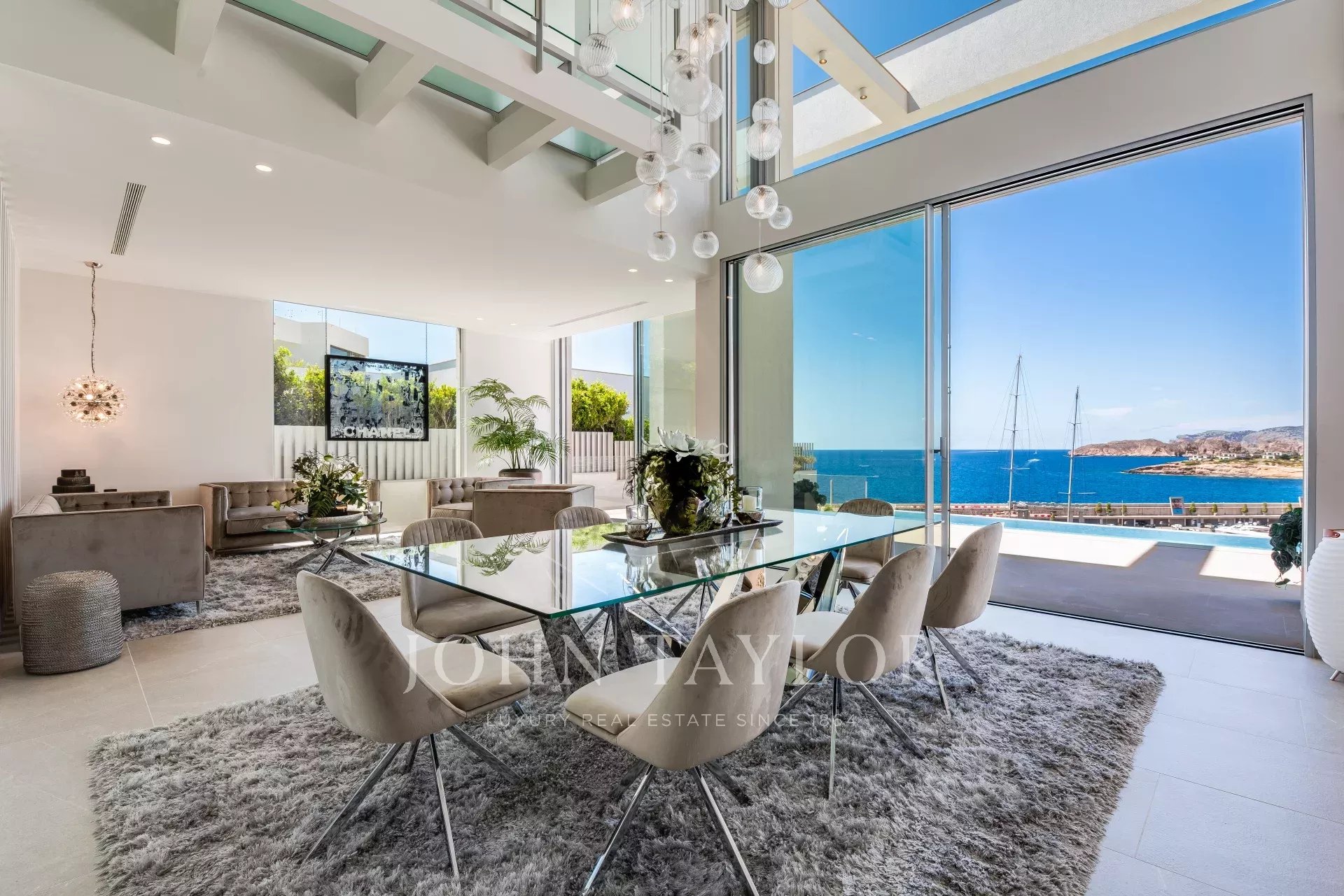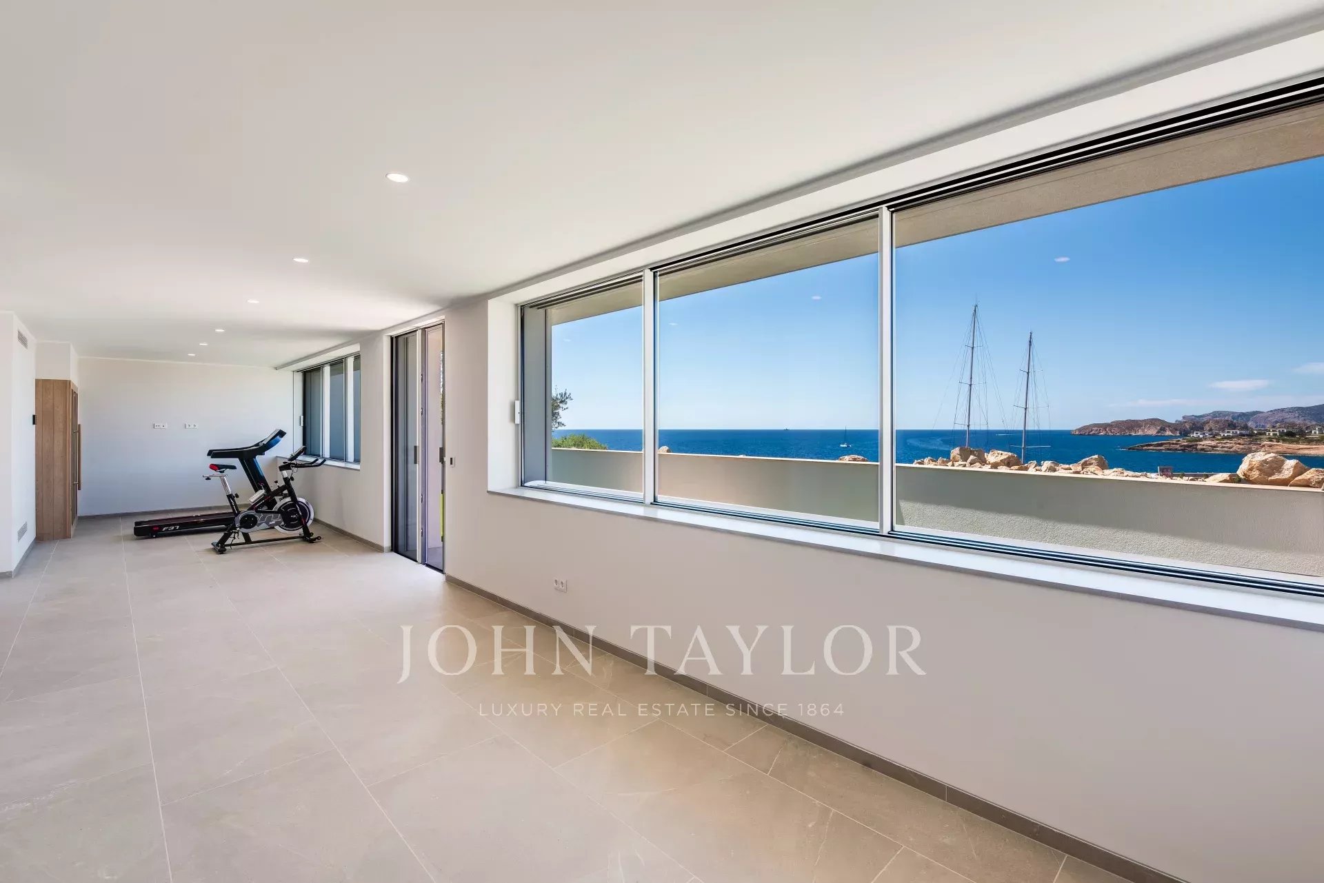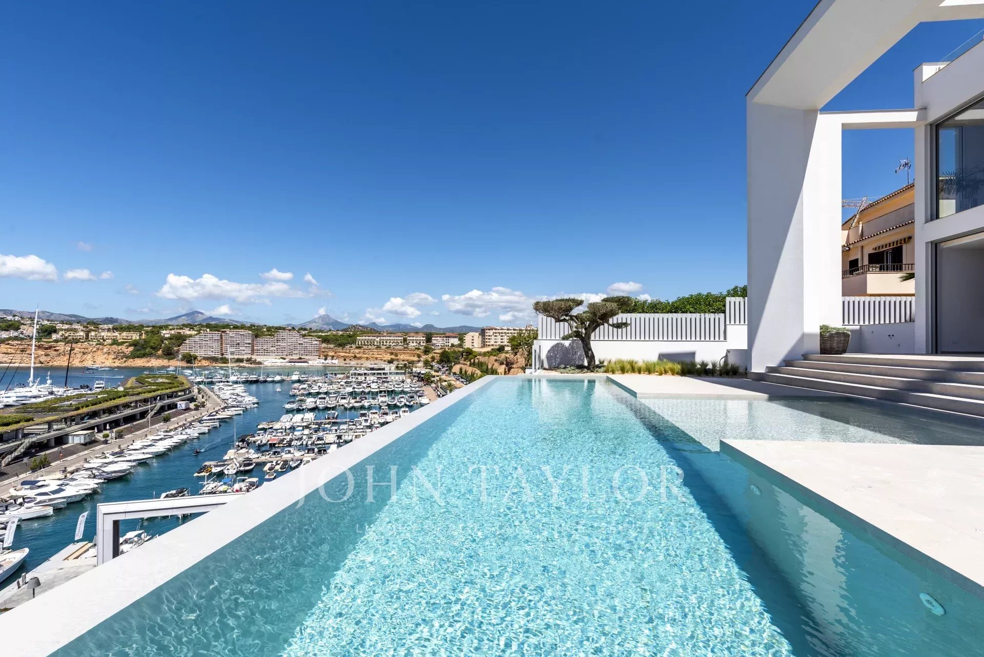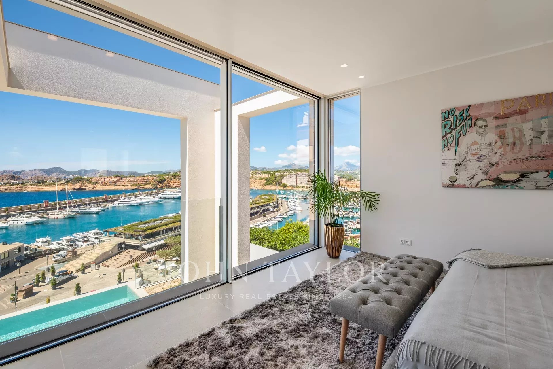 Esta moradia ultra-moderna está situada no porto de Port Adriano em Santa Ponsa. O estilo arquitetónico único com enormes frentes de janelas dá-lhe liberdade. Esta obra de arte arquitetónica está distribuída por 3 níveis ligados por um elevador de vidro, bem como corredores de vidro, etc. Com esta arquitetura única, pretende-se trazer toda a luz mediterrânica para esta moradia. Esta moradia tem 4 quartos duplos, cada um com uma casa de banho privativa, uma sala de estar inundada de luz, cozinha aberta com equipamento de última geração, uma sala de fitness, um cinema em casa, uma sala de vinhos, garagem e lugares de estacionamento para 2 carros são apenas algumas das características desta moradia única.