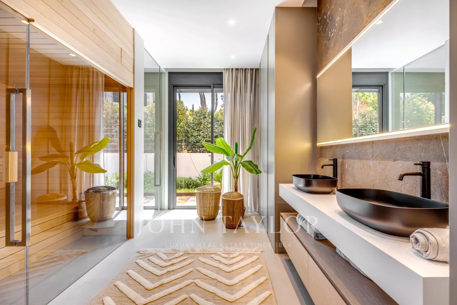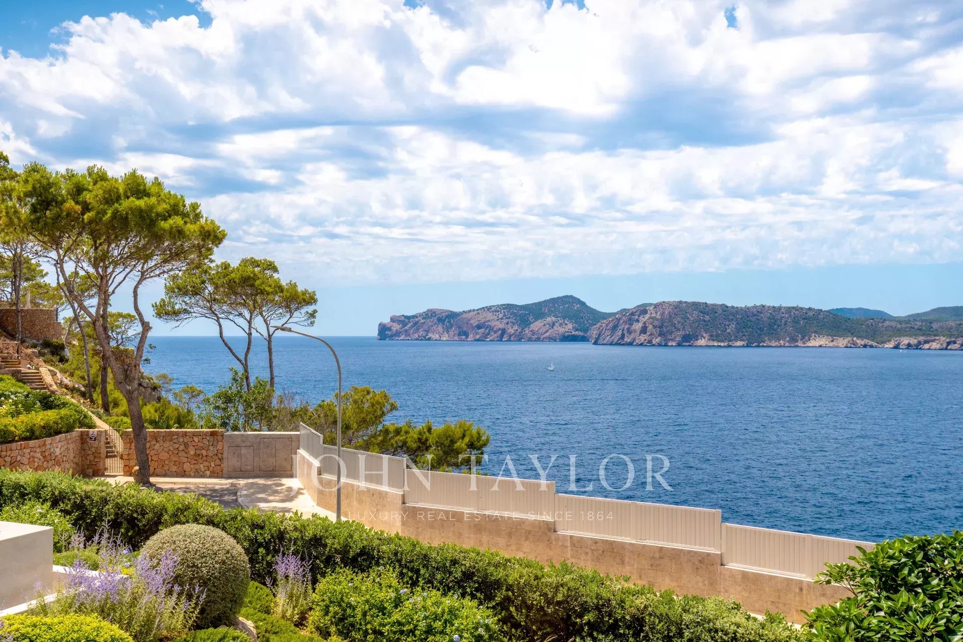 Moradia moderna recentemente construída com vistas espectaculares sobre o mar em Santa Ponsa. A construção desta casa de luxo foi concluída em junho de 2023. Está localizada na segunda linha a poucos metros do mar. Nas proximidades, há acesso a uma enseada romântica para nadar e mergulhar entre as rochas. A moradia está distribuída por 3 pisos ligados por um elevador. No piso superior encontramos uma espaçosa sala de estar, uma cozinha moderna, uma cozinha auxiliar, um WC, o quarto principal com closet e casa de banho privativa e acesso a um pátio interior ideal para refeições ao ar livre e ao terraço, que liga à piscina. O piso inferior alberga 3 quartos com casa de banho privativa e um segundo quarto, que também pode ser convertido no quinto quarto. Uma garagem para 4 carros completa esta maravilhosa moradia. Os materiais e acabamentos desta moradia são de muito alta qualidade.