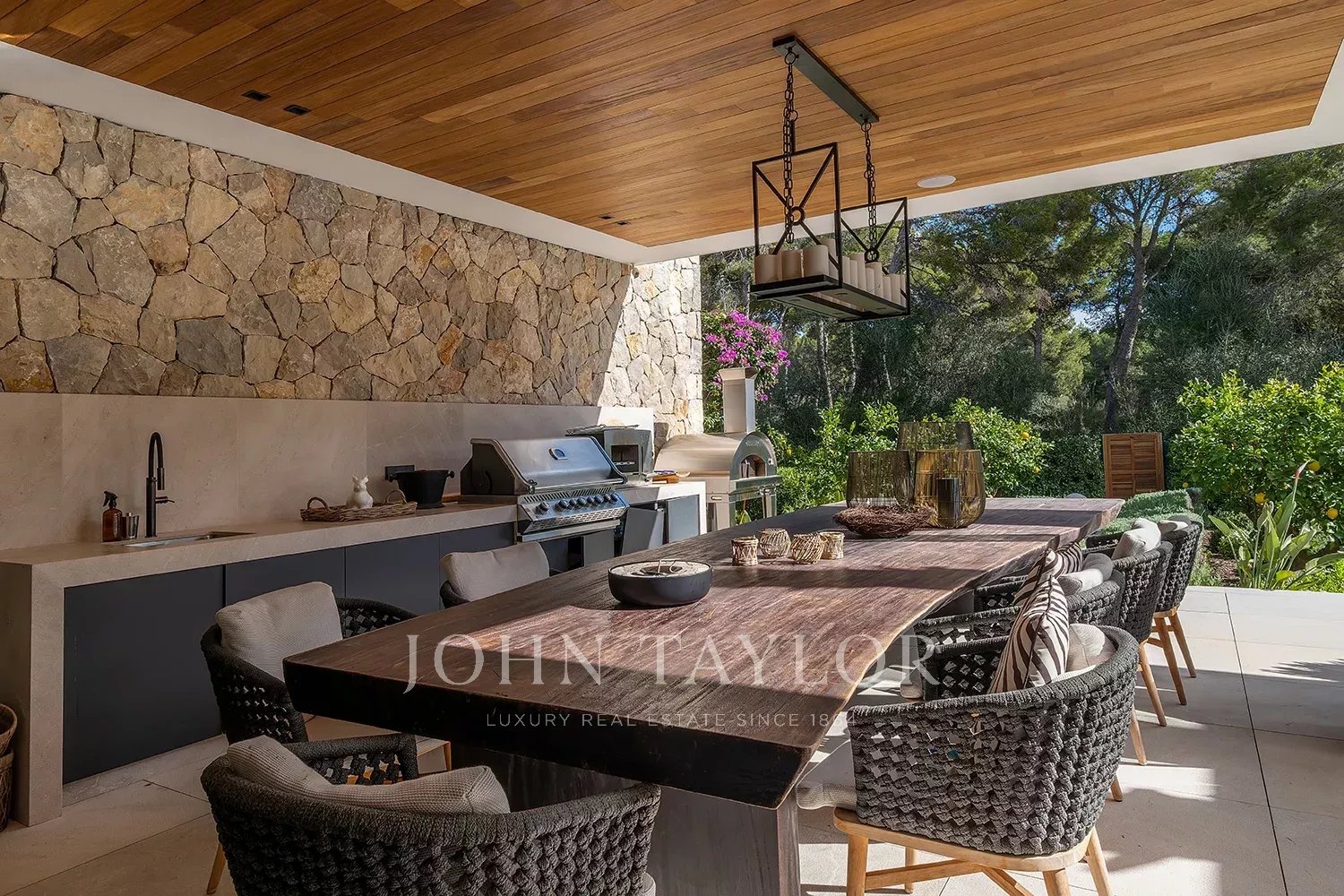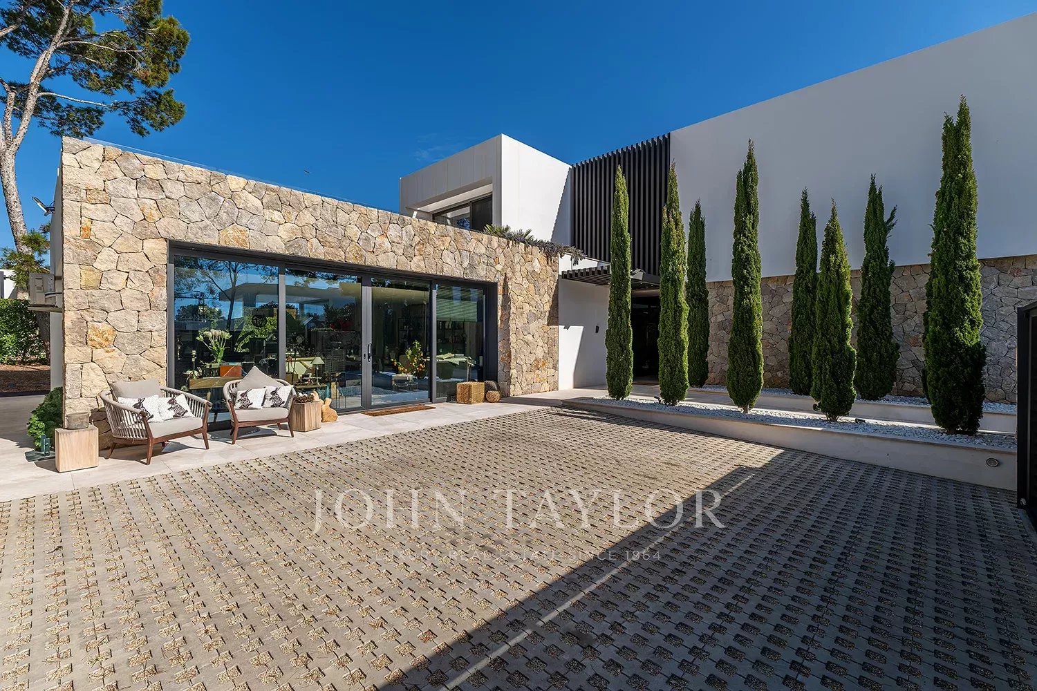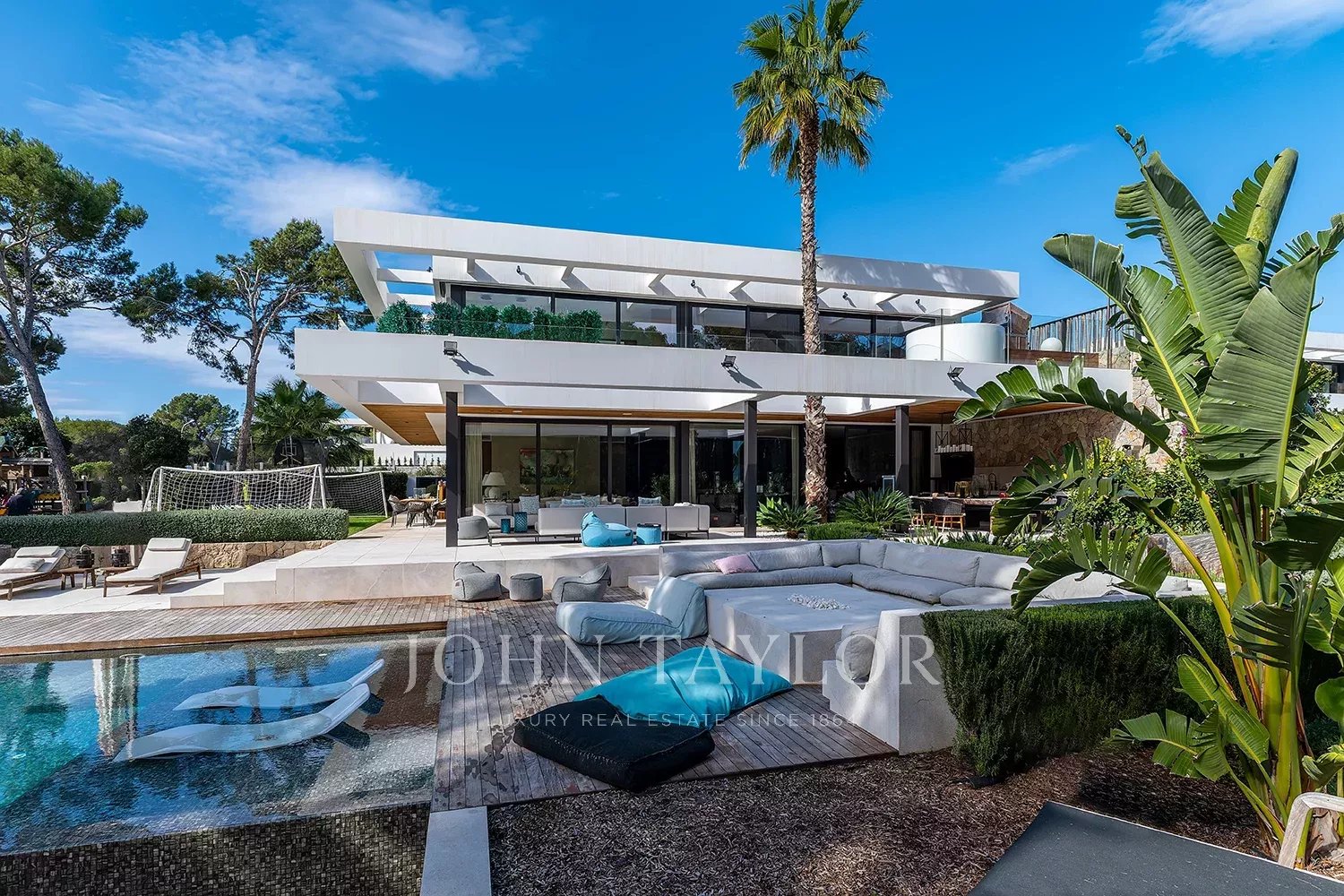 Descubra a majestosa moradia de luxo, localizada na linha da frente do campo de golfe Nova Santa Ponsa. Esta propriedade deslumbrante tem tudo: desde amplos espaços de vida e de entretenimento até à privacidade e vistas serenas sobre os campos de golfe impecavelmente cuidados. Com uma construção de alta qualidade, incluindo tectos altos, casas de banho em mármore e pavimentos em pedra natural, esta moradia oferece um estilo de vida luxuoso e relaxante. Com seis quartos generosos, vários salões e áreas de entretenimento, piscinas interior e exterior, centro de bem-estar completo, sala de cinema, adega e muito mais, esta propriedade redefine o conceito de exclusividade. Situada numa área residencial exclusiva e a poucos minutos das marinas de Port Adriano e Puerto Portals, "Mila" é um oásis de paz perfeitamente ligado.