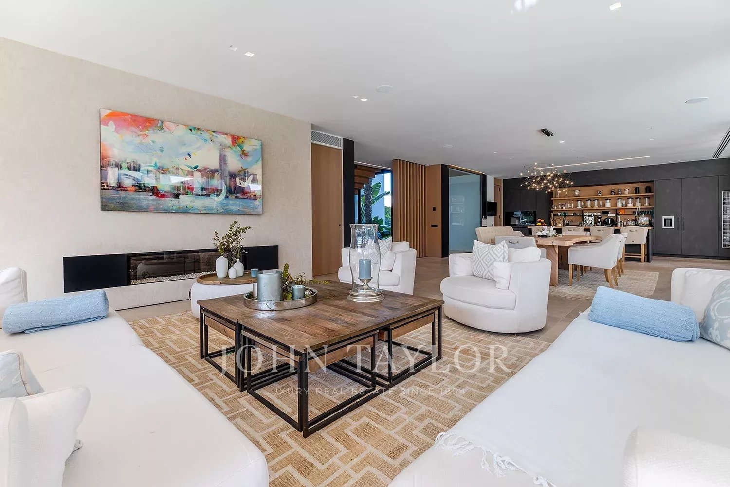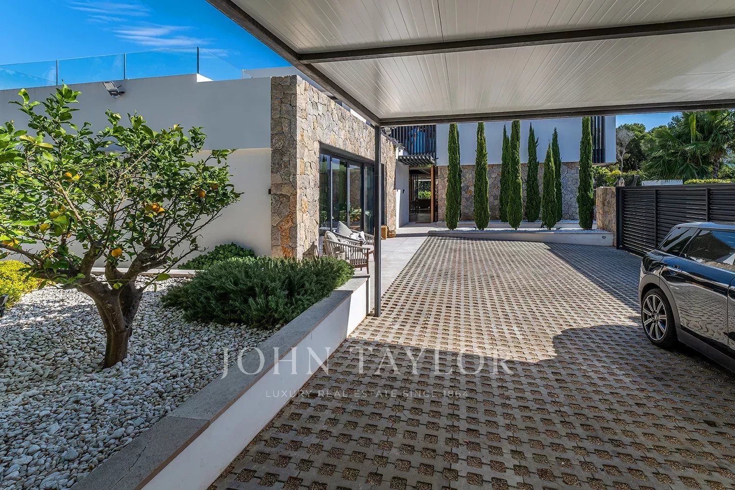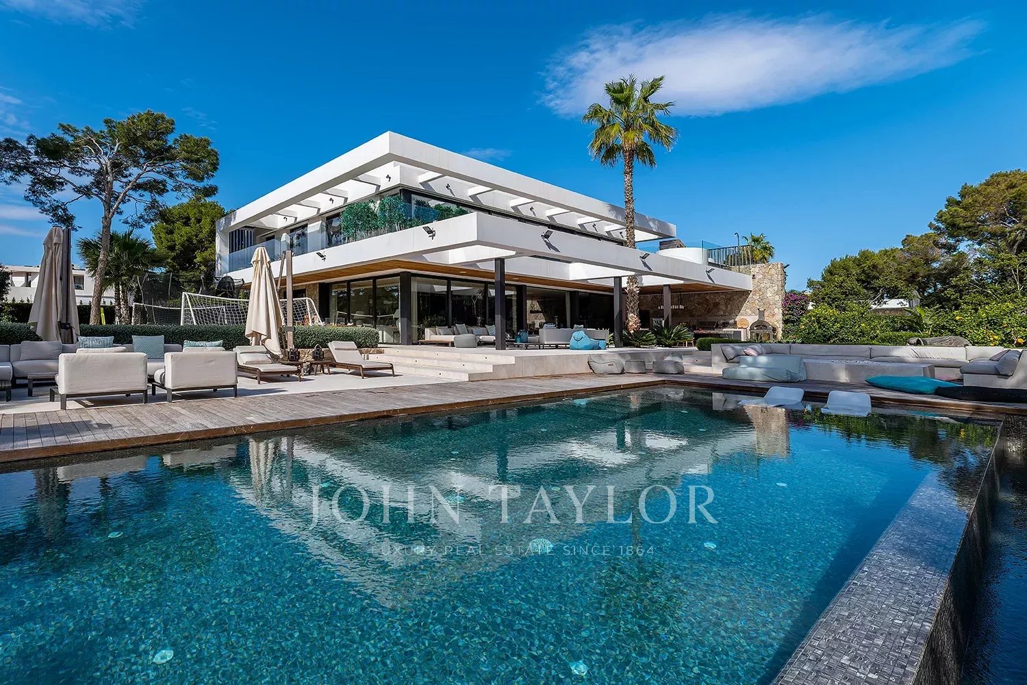 Descubra a majestosa moradia de luxo, localizada na linha da frente do campo de golfe Nova Santa Ponsa. Esta propriedade deslumbrante tem tudo: desde amplos espaços de vida e de entretenimento até à privacidade e vistas serenas sobre os campos de golfe impecavelmente cuidados. Com uma construção de alta qualidade, incluindo tectos altos, casas de banho em mármore e pavimentos em pedra natural, esta moradia oferece um estilo de vida luxuoso e relaxante. Com seis quartos generosos, vários salões e áreas de entretenimento, piscinas interior e exterior, centro de bem-estar completo, sala de cinema, adega e muito mais, esta propriedade redefine o conceito de exclusividade. Situada numa área residencial exclusiva e a poucos minutos das marinas de Port Adriano e Puerto Portals, "Mila" é um oásis de paz perfeitamente ligado.