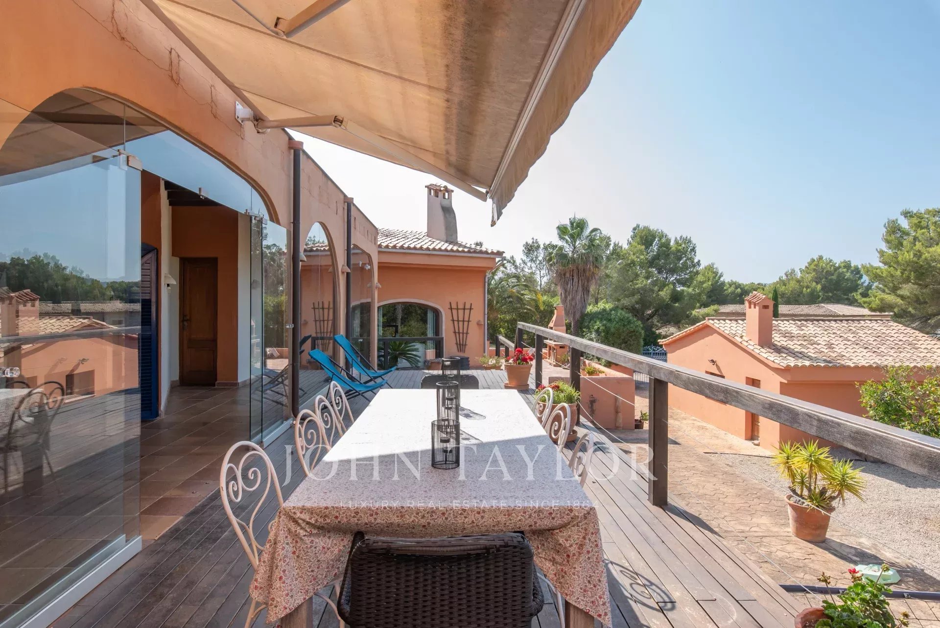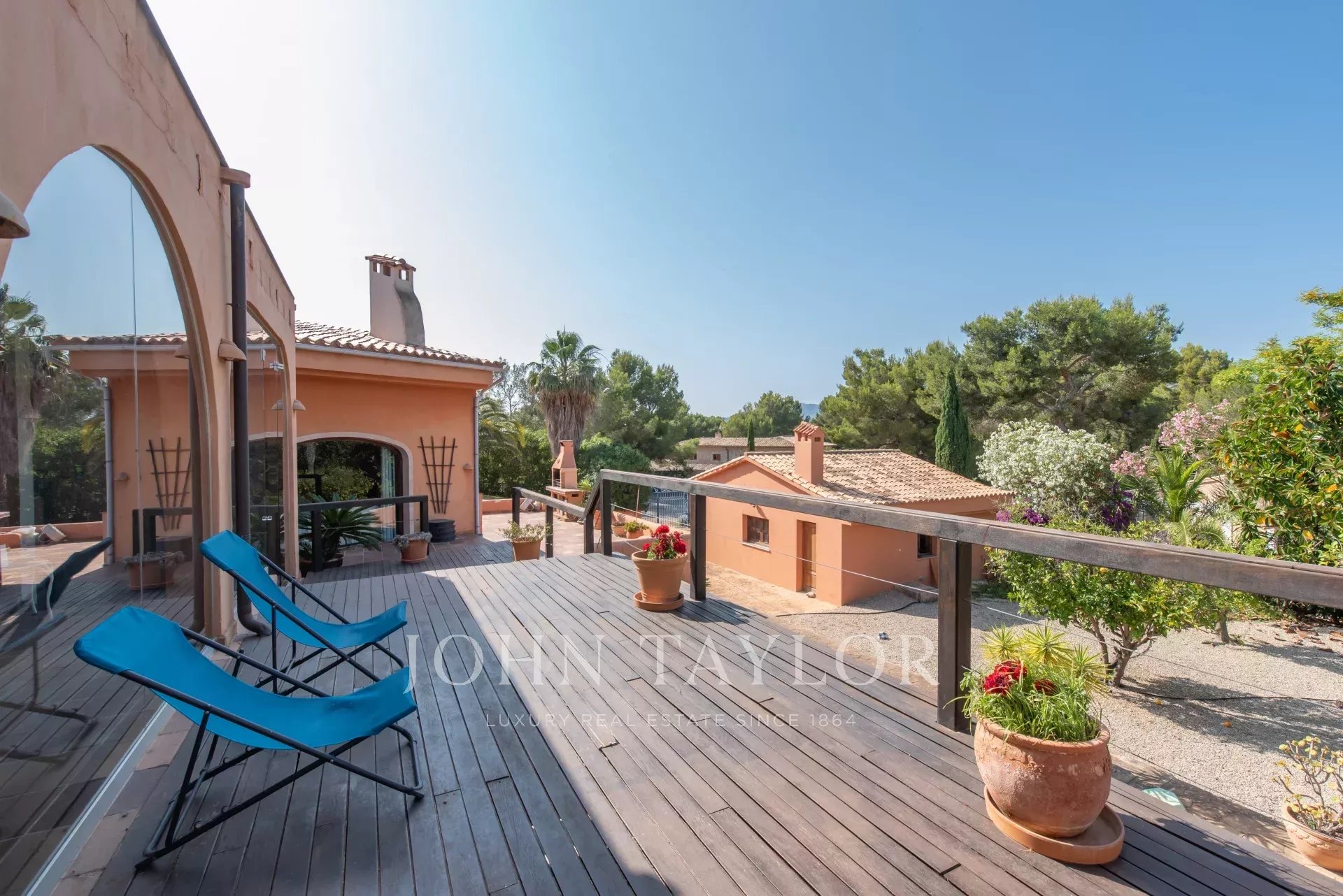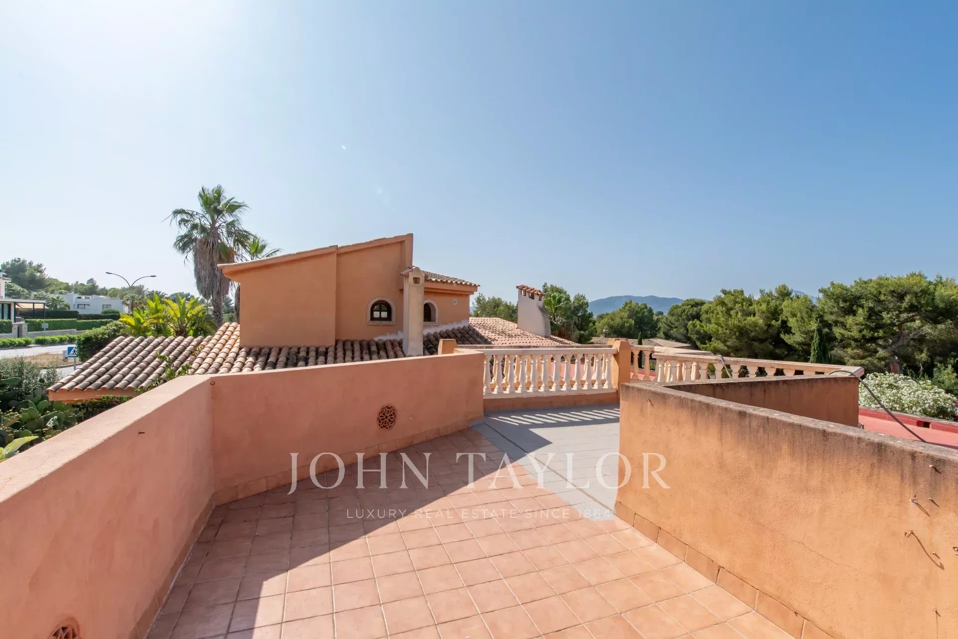 Descubra esta impressionante moradia de 416 m² situada na bela aldeia de Santa Ponsa com vista para a montanha. Está situada num grande terreno plano, perfeito para desfrutar do jardim e um lugar seguro para os seus filhos brincarem.