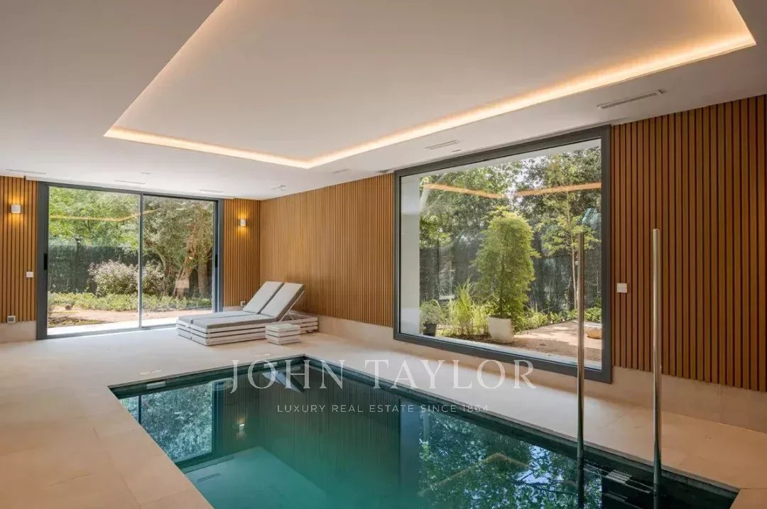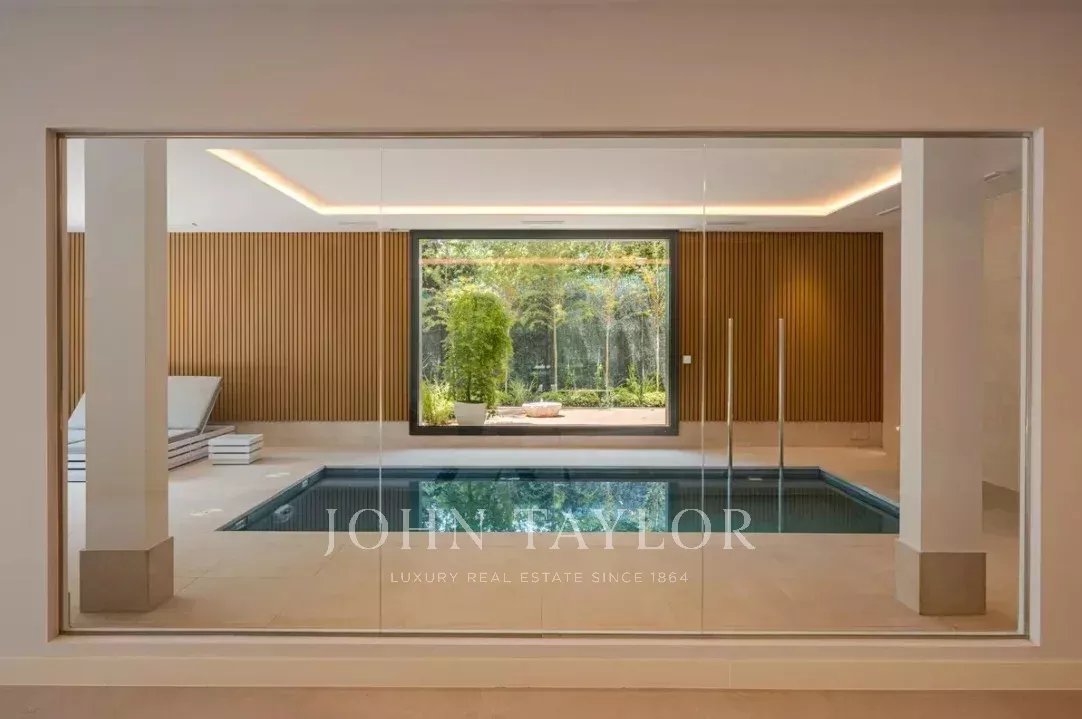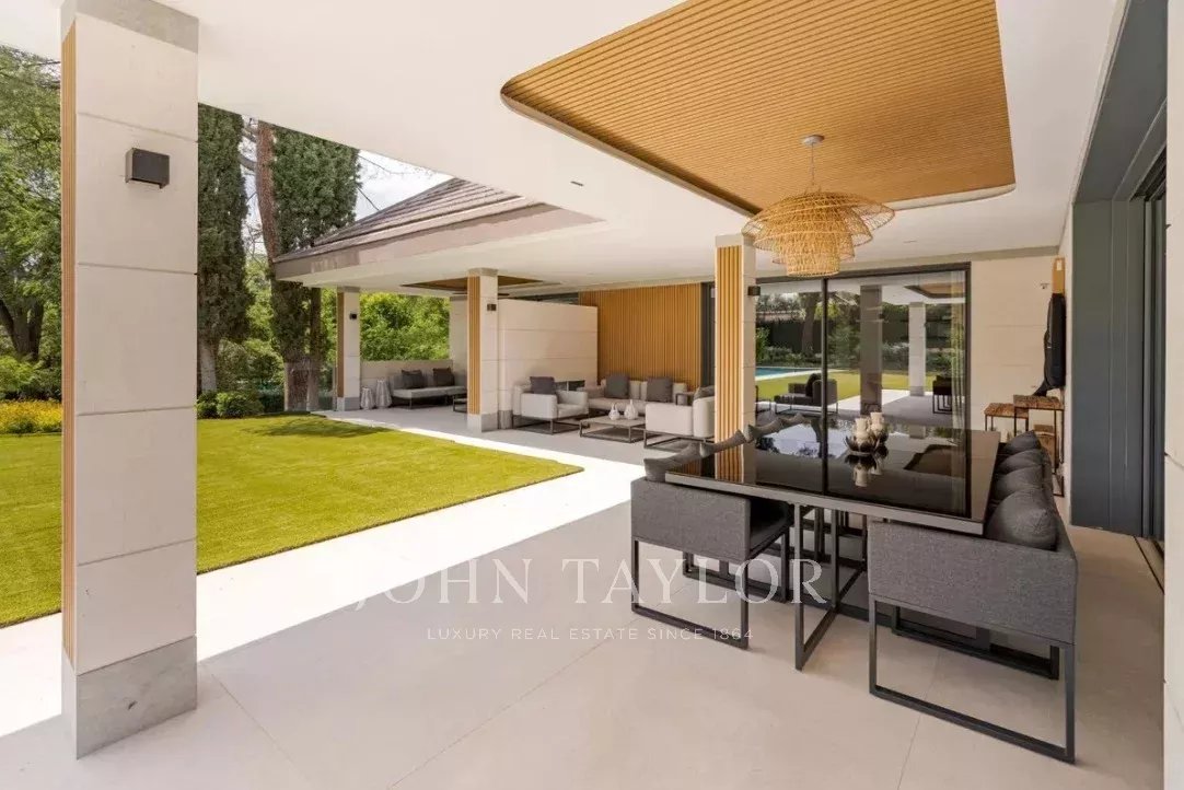 O jardim, com árvores consolidadas, piscina exterior e área chill-out, completa esta propriedade que combina elegância, privacidade e conforto em um dos bairros residenciais mais exclusivos de Madrid.