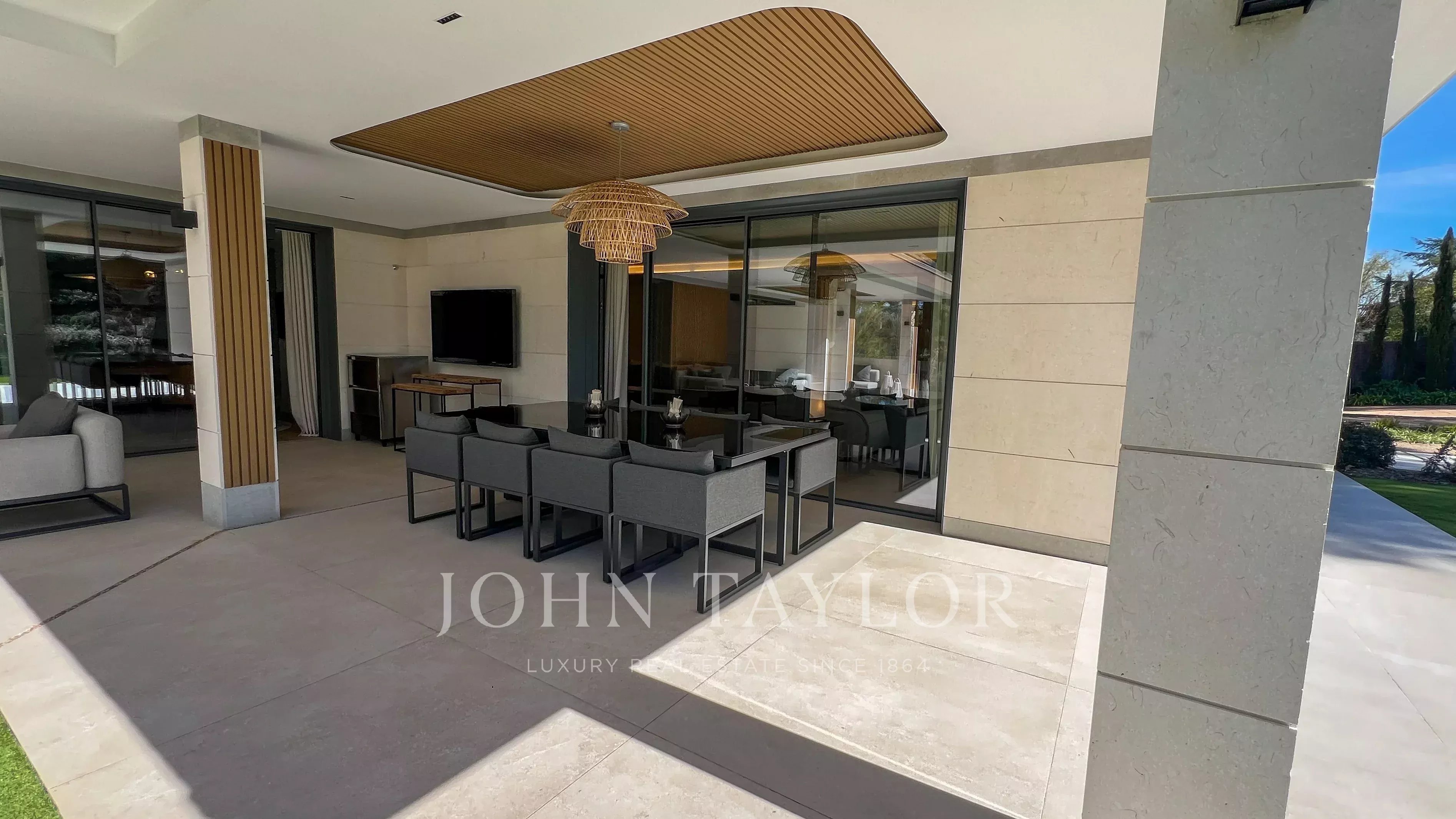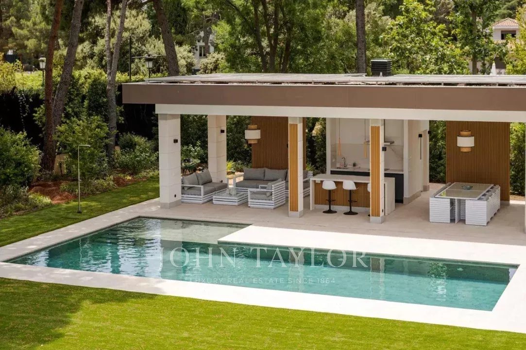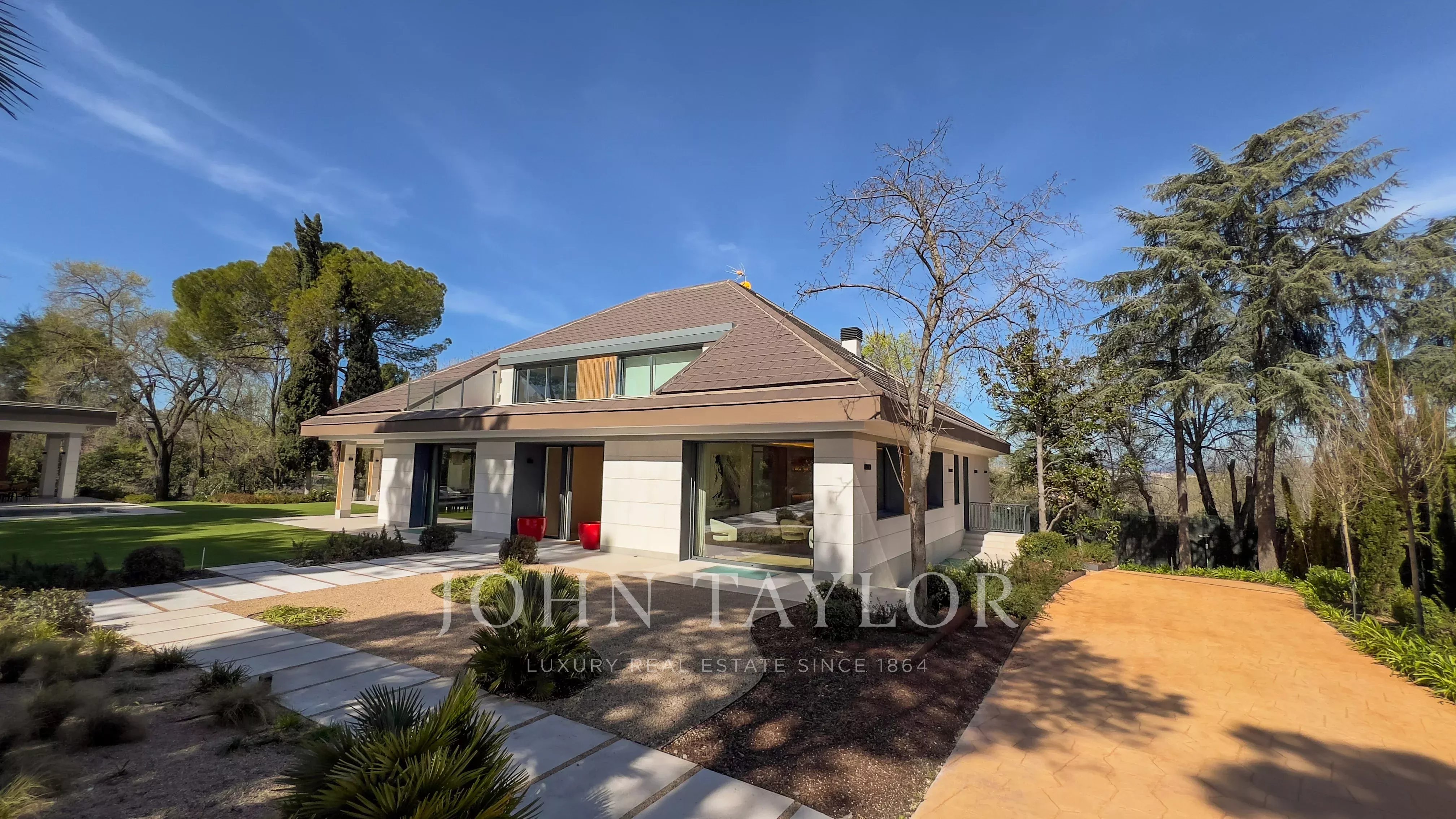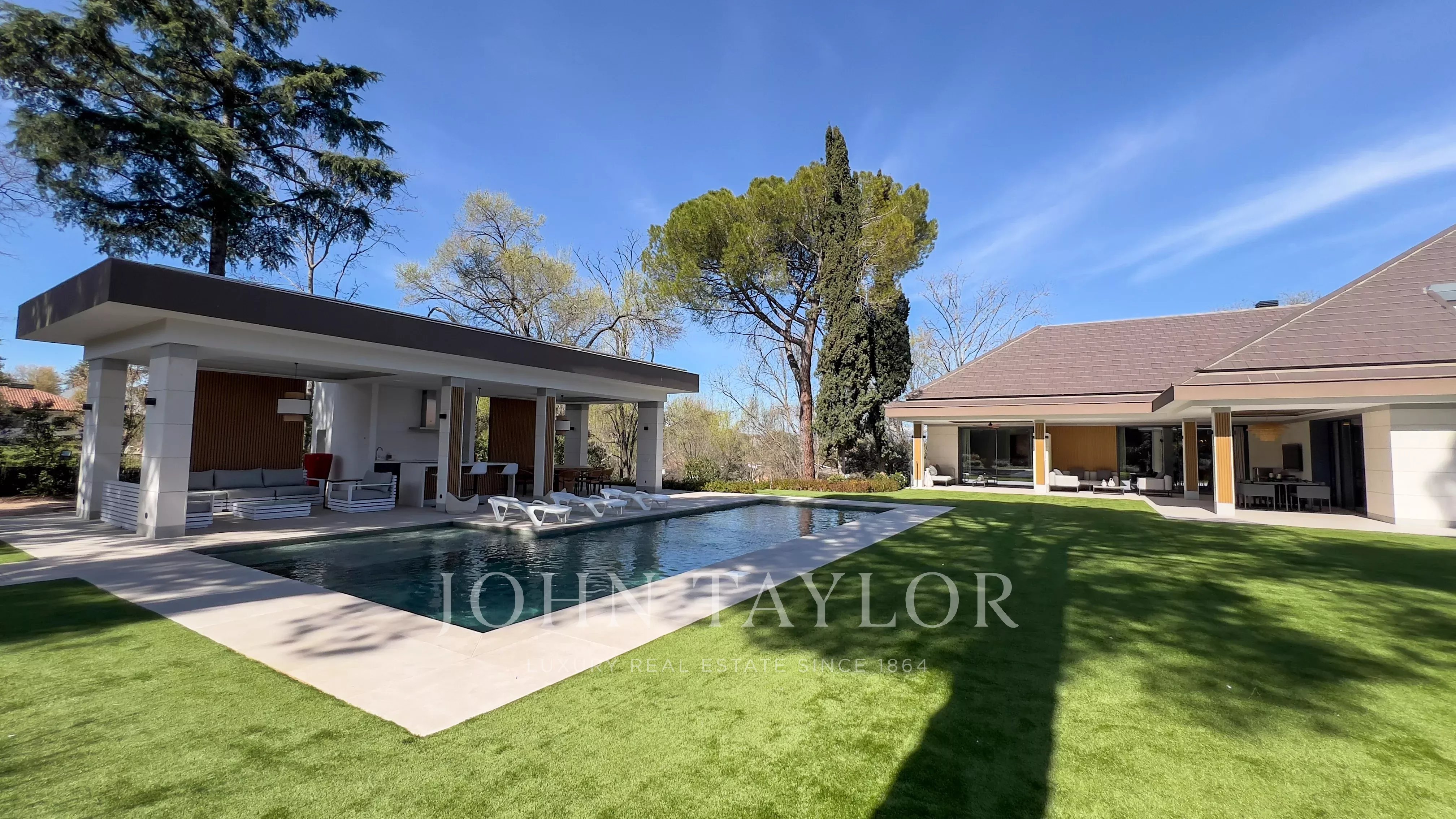 Localizada em uma das vias mais representativas de La Moraleja, esta espetacular villa de reforma recente está situada em um magnífico terreno de aproximadamente 2.800 m², oferecendo cerca de 1.000 m² de área interior e mais de 100 m² de varandas cobertas.