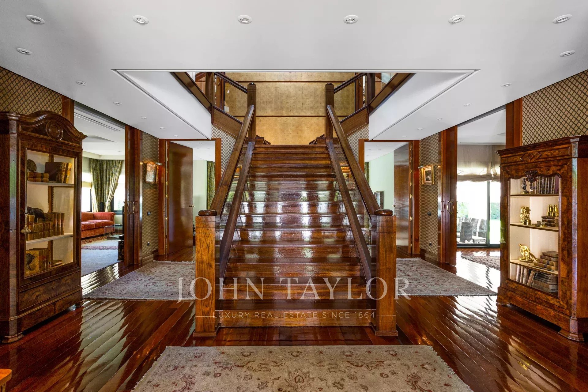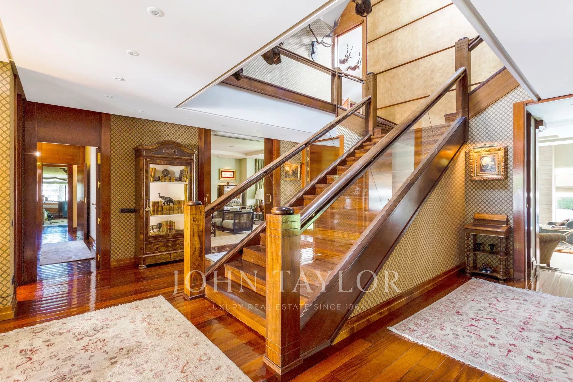 O piso térreo tem uma sala de estar em duas grandes salas distribuídas em três quartos, dois salões e uma sala de jantar. Salas de estar com lareira e dois grandes terraços, um para o verão e outro para o inverno. Além disso, a partir do acesso, casa de banho social, sala de estar e sala de jantar familiar privada. Cozinha muito espaçosa com equipamentos de marca de topo e inclui um escritório. Zona de despensa, um pequeno pátio de serviço anexo, e lavandaria. No outro extremo do piso, quatro quartos com casa de banho privativa e roupeiros, e guarda roupa. Todos os quartos com vista para a floresta.