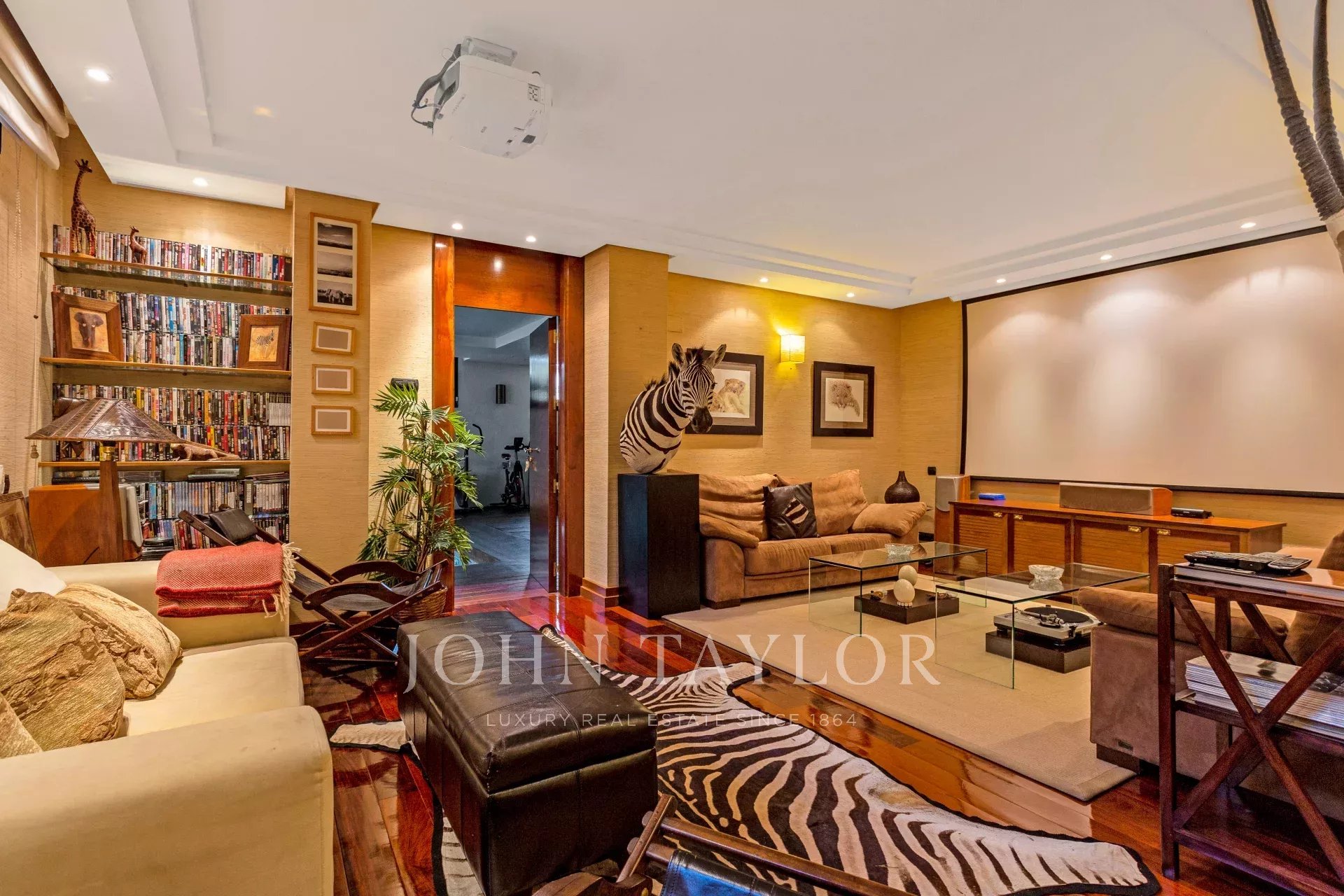 Na cave, existem dois quartos de serviço com casa de banho completa, roupeiro, e uma pequena cozinha de serviço. Garagem interna para cinco/quatro carros, despensa e arrecadação. No outro extremo da cave existe uma sala de projeção e WC de serviço que se prolonga para a zona da piscina interior, e ginásio, casa de banho completa e sauna anexa.