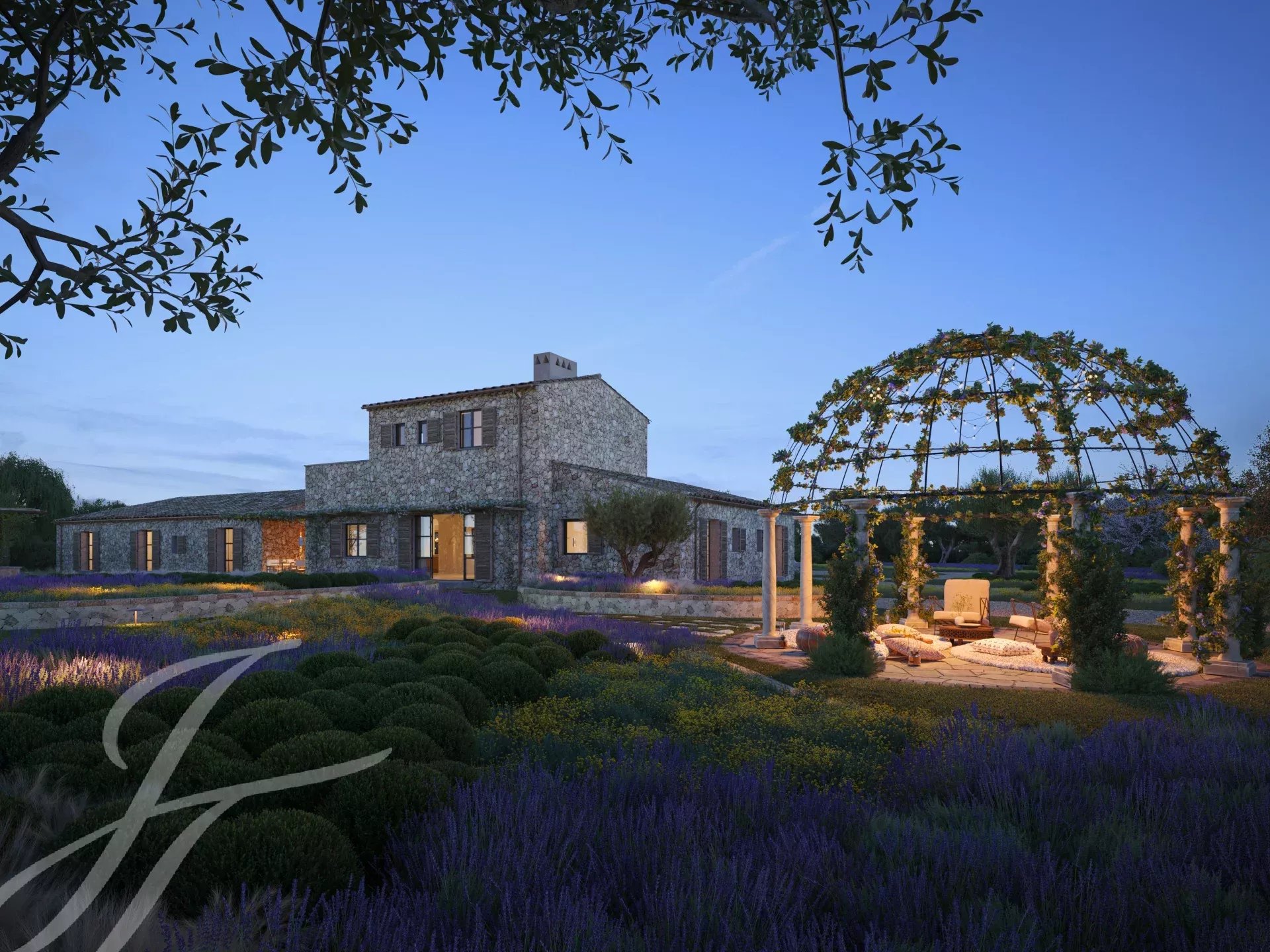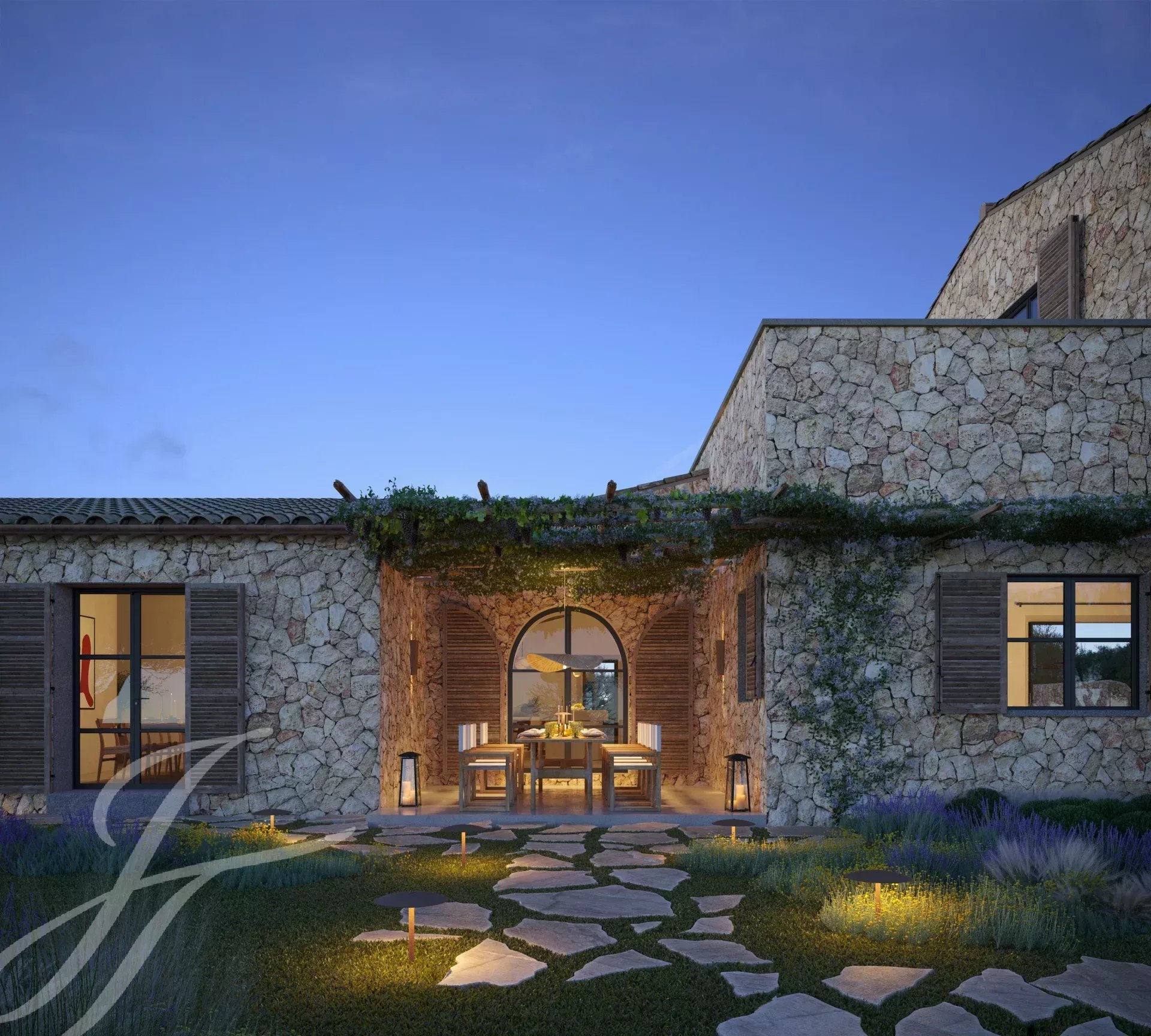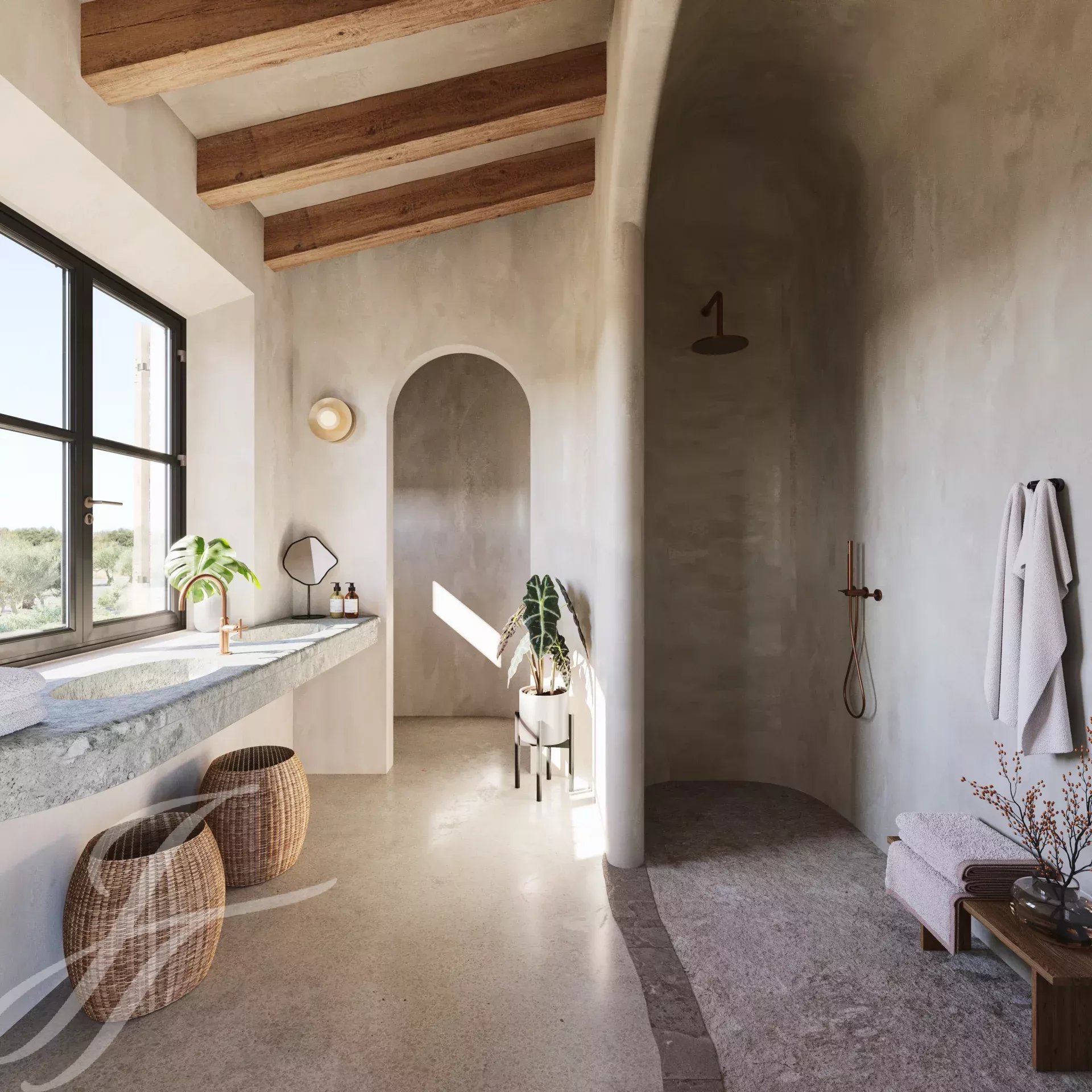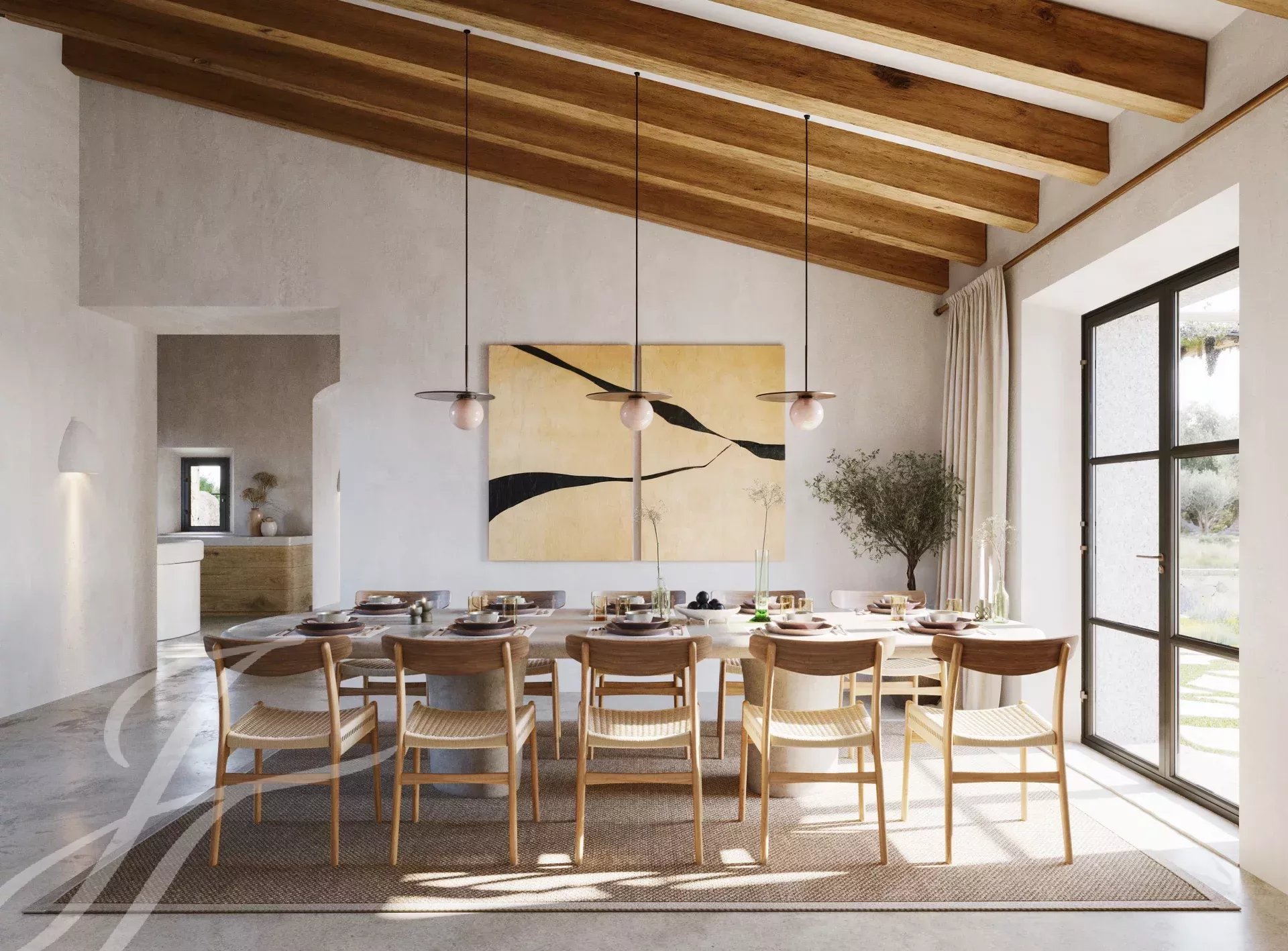 Casa Valle de los Almendros - Esta bela casa de campo boho-chic está atualmente em construção, com conclusão prevista para o 4º trimestre de 2027. Localizada num dos locais mais desejados do país, perto da cidade e do aeroporto, garante um acesso fácil e confortável à propriedade. O pátio de entrada da propriedade, a fachada em pedra, as portadas de madeira, os tectos altos com vigas de madeira e também os tectos abobadados, juntamente com o pavimento em pedra, as janelas do chão ao teto e a paisagem mediterrânica criam uma energia fantástica e um fluxo natural em toda a casa.